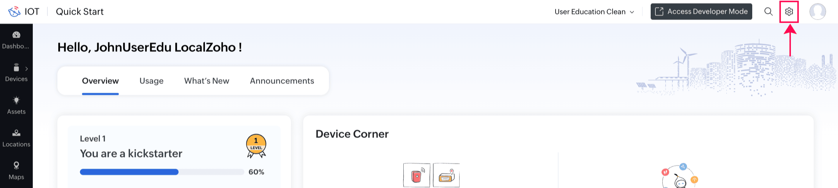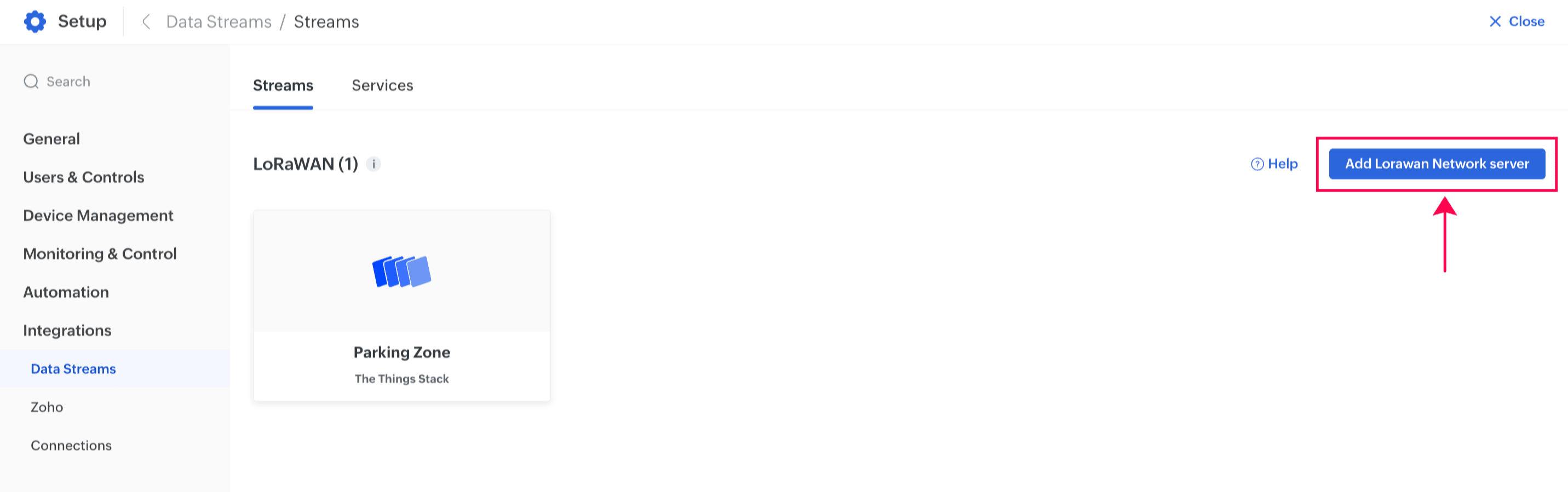 The process of integrating a Milesight Gatew way with built-in Network Server with a Zoho IoT application involves two steps: