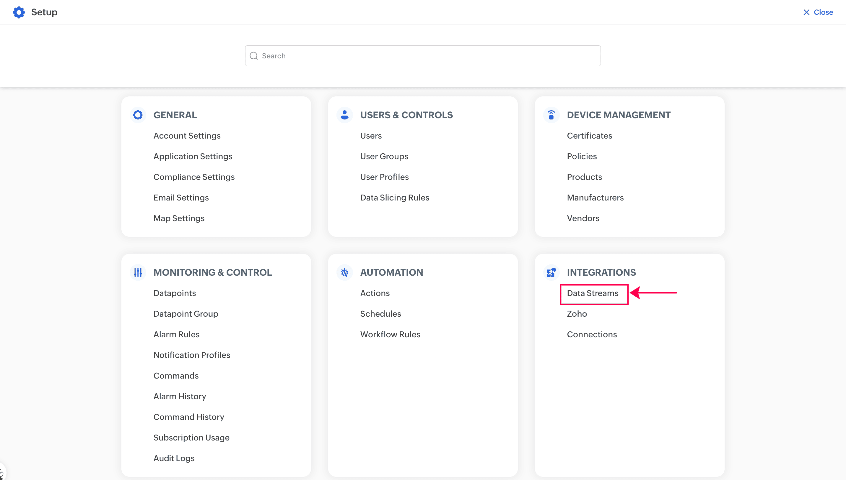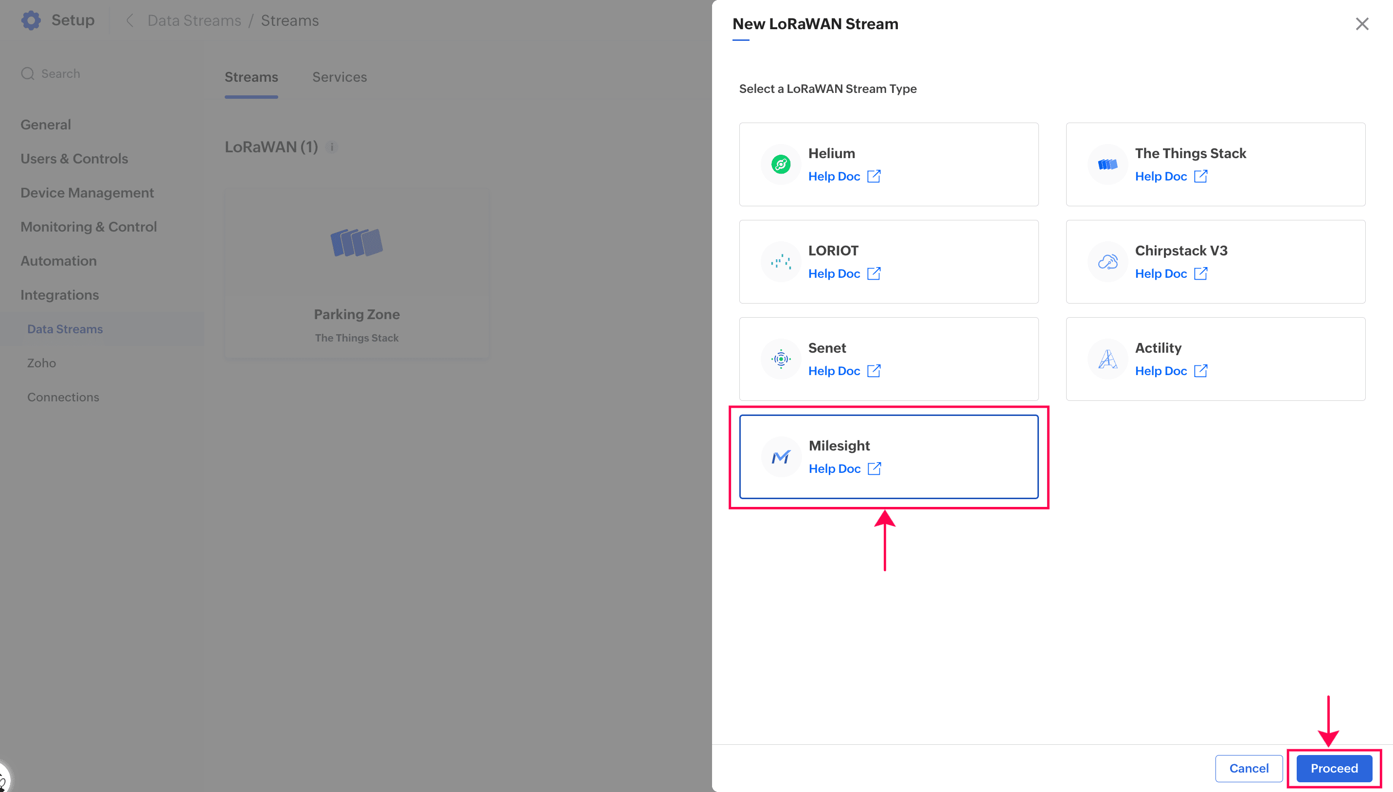 Follow these steps to create a Milesight Data Stream in the Zoho IoT application,