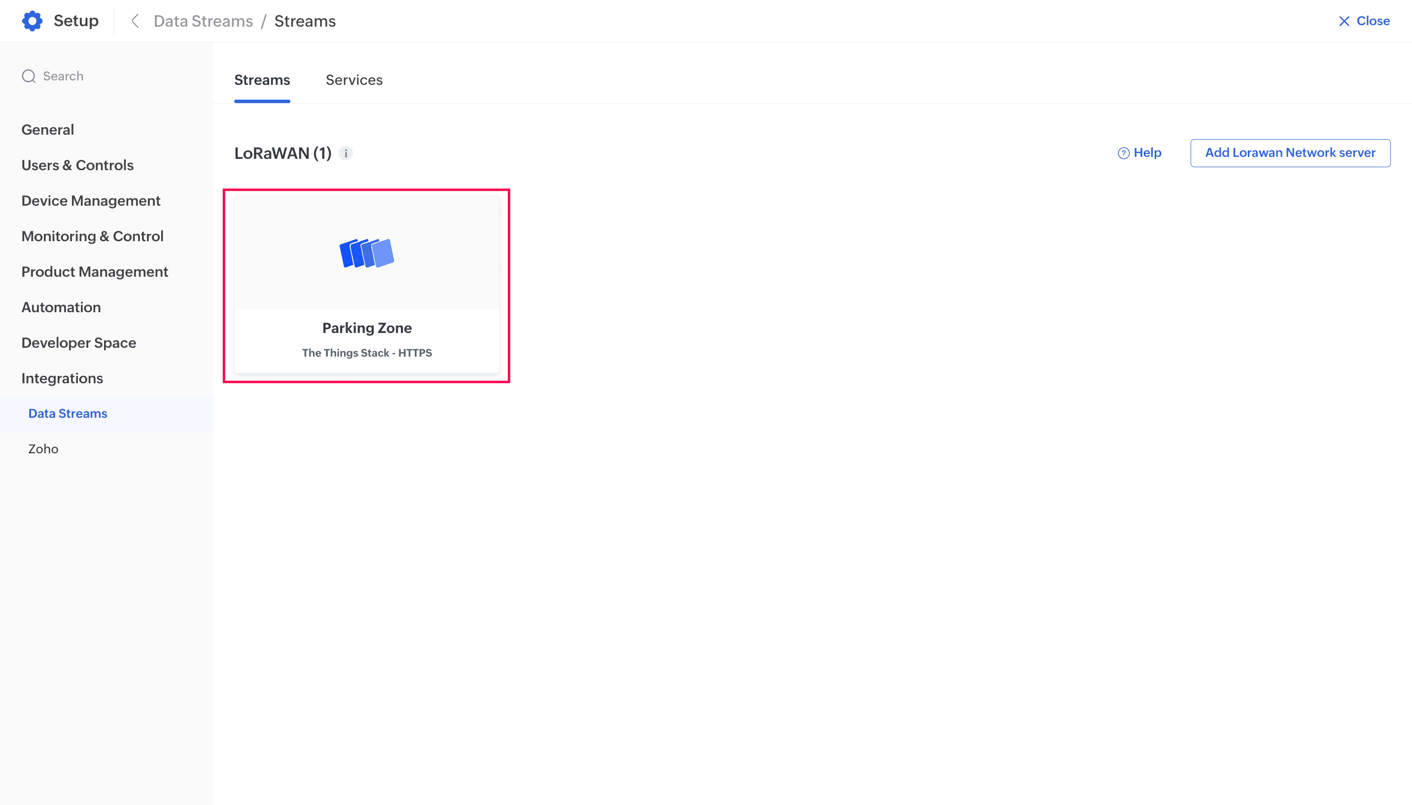 When a datastream is added in the Zoho IoT application, credentials will be generated that can be used to integrate and connect to the corresponding server or system. Datastreams are currently supported only for the LoRa network servers listed here. ...