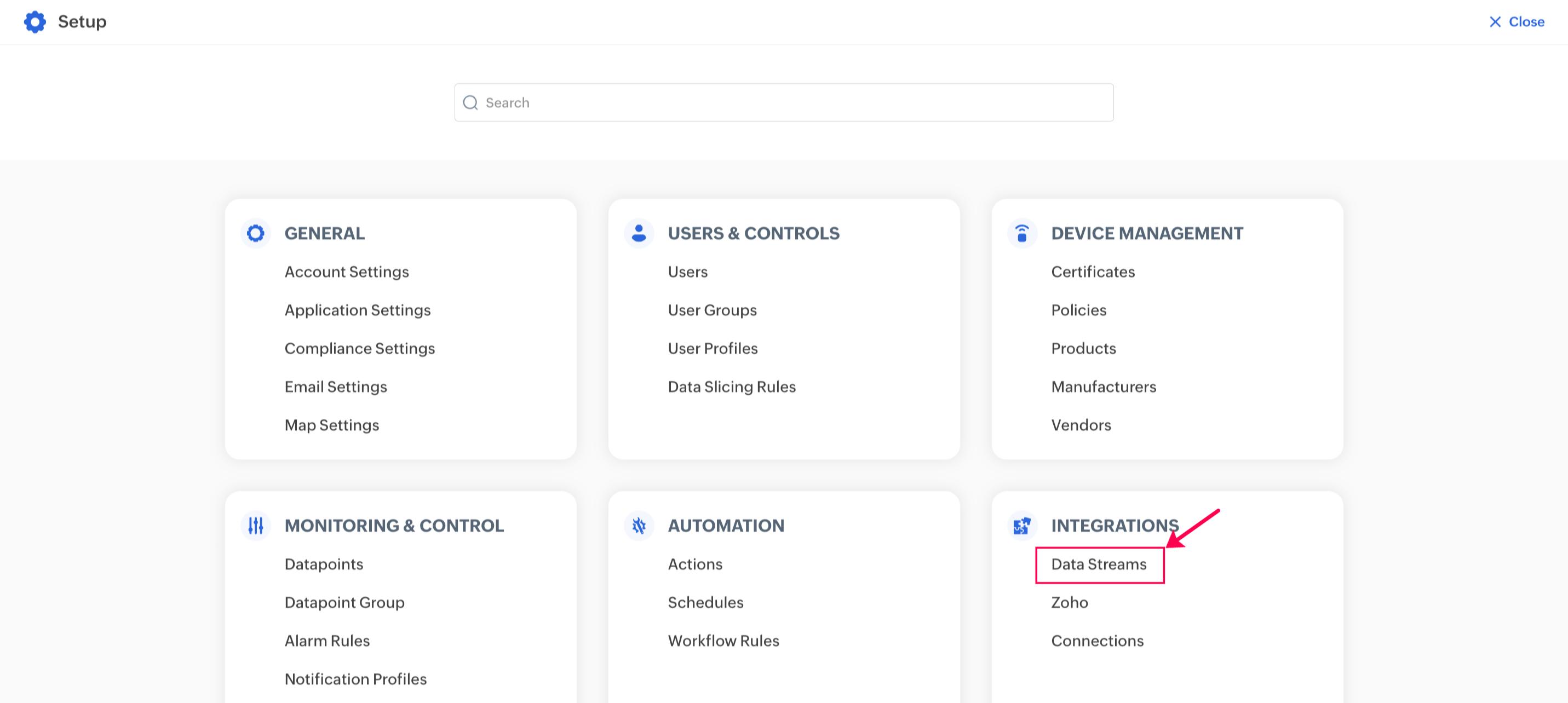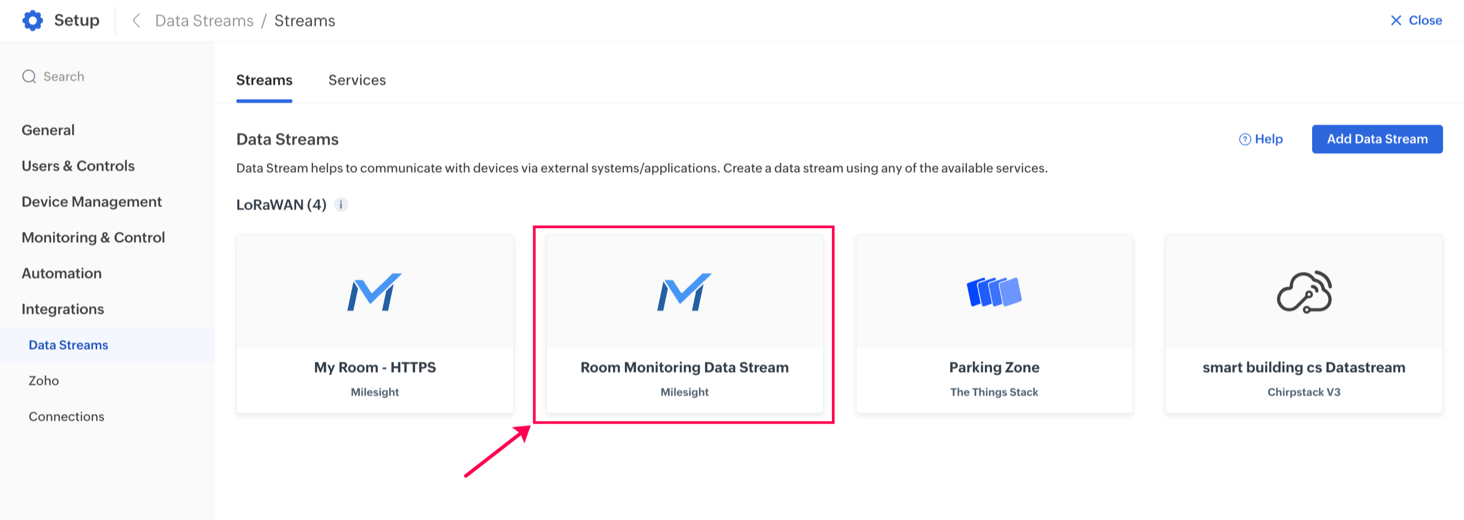 When a datastream is added in the Zoho IoT application, credentials will be generated that can be used to integrate and connect to the corresponding server or system. Datastreams are currently supported only for the LoRa network servers listed here. ...