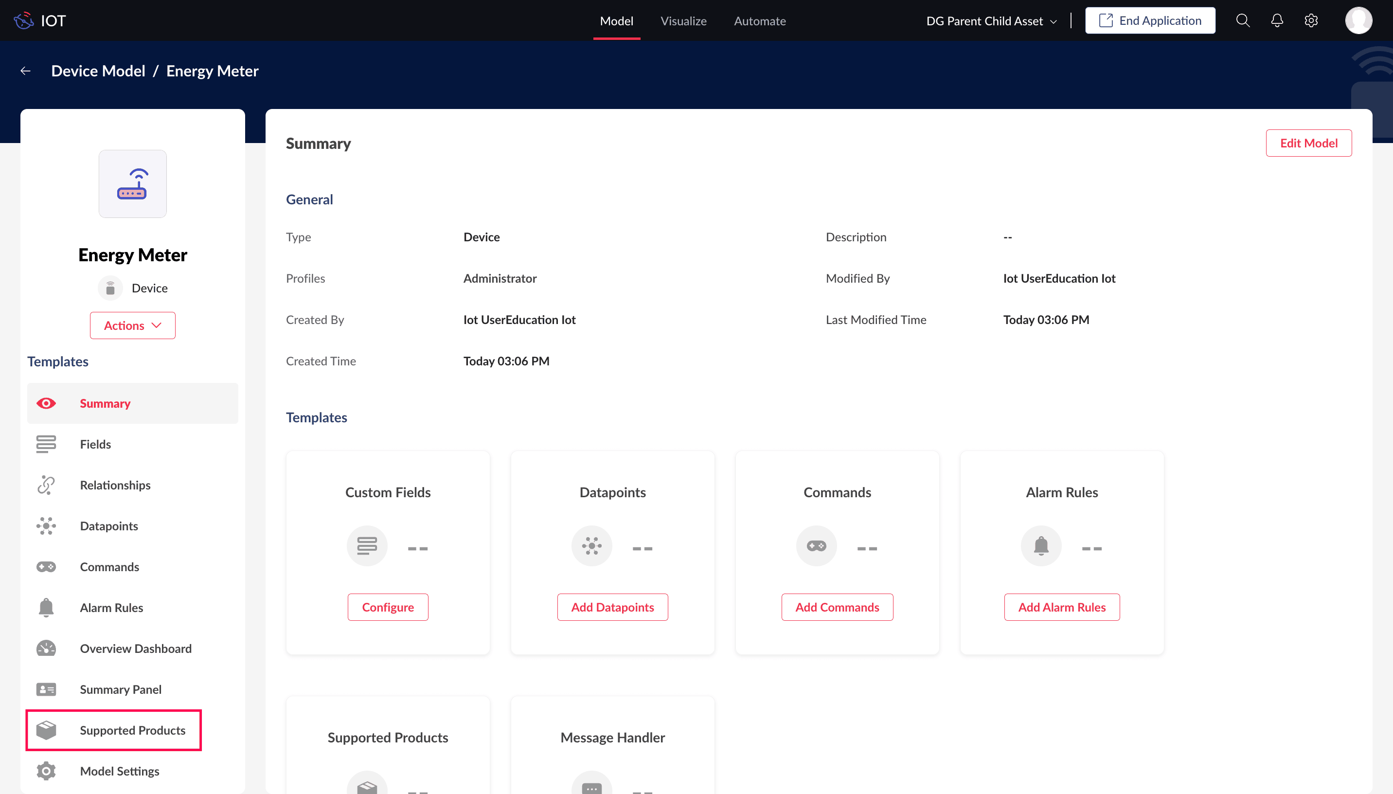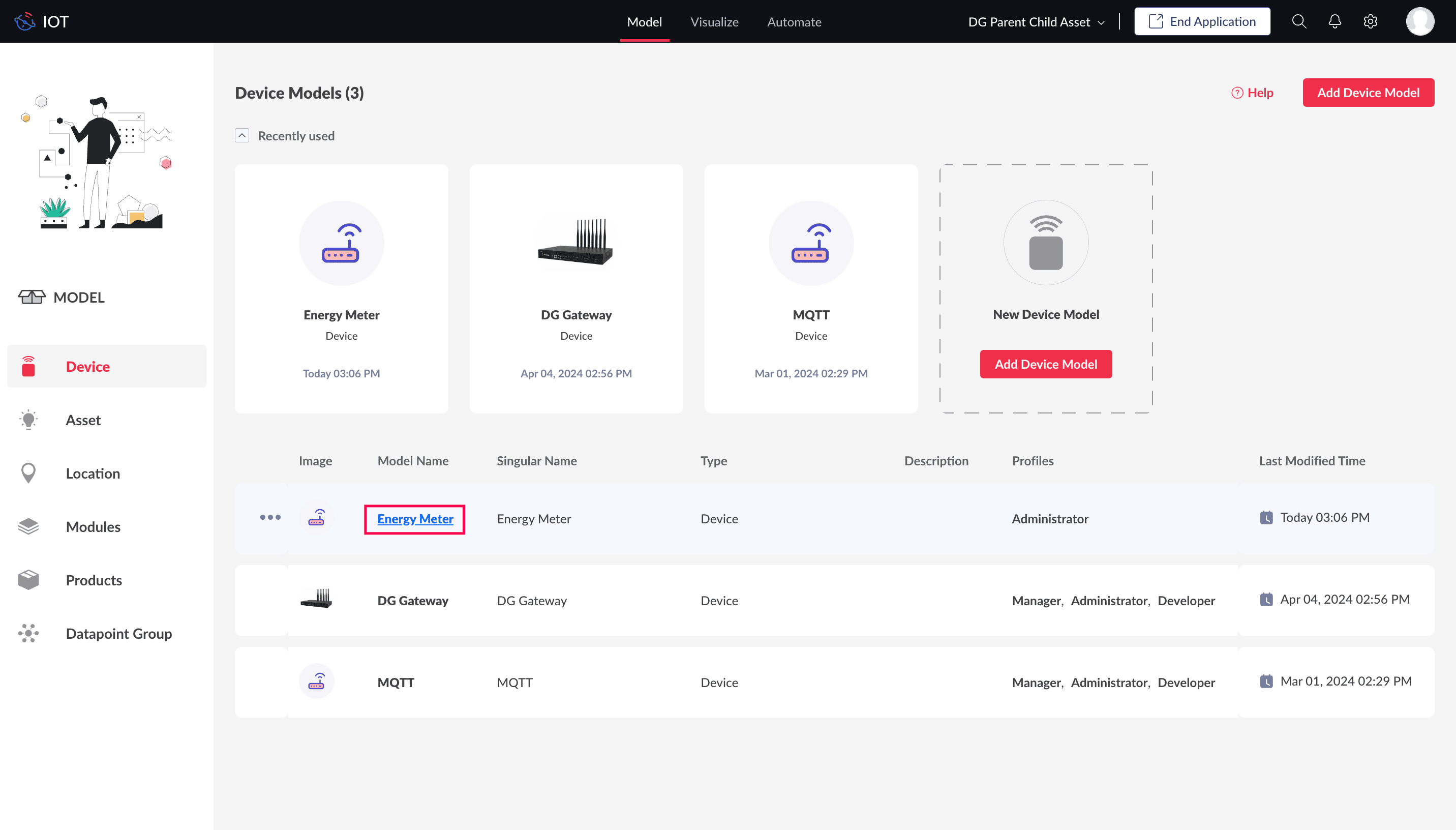 3. Access the device model's information page by clicking on the name of the device model. For this illustration, the device model: Energy Meter is considered.
