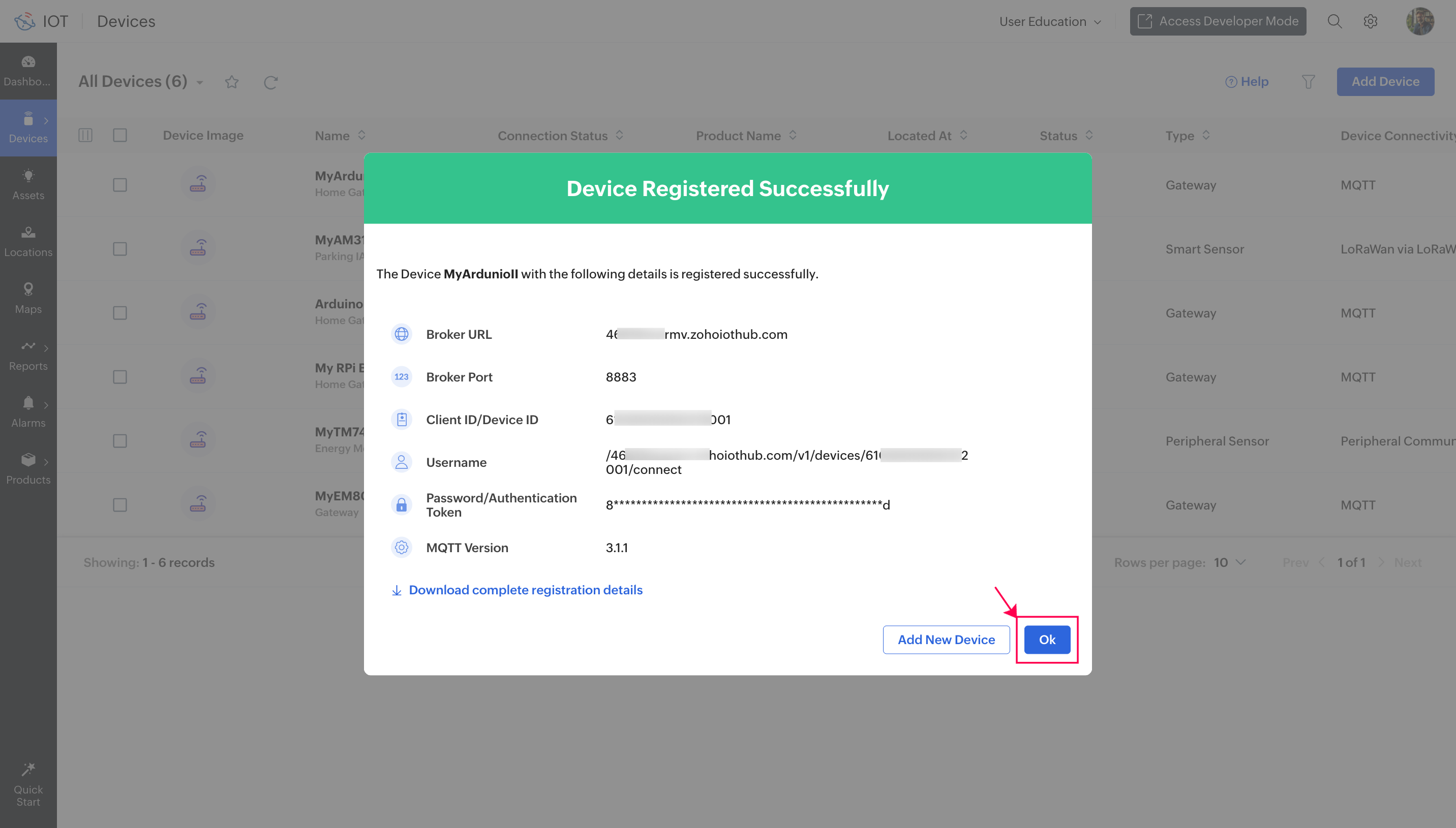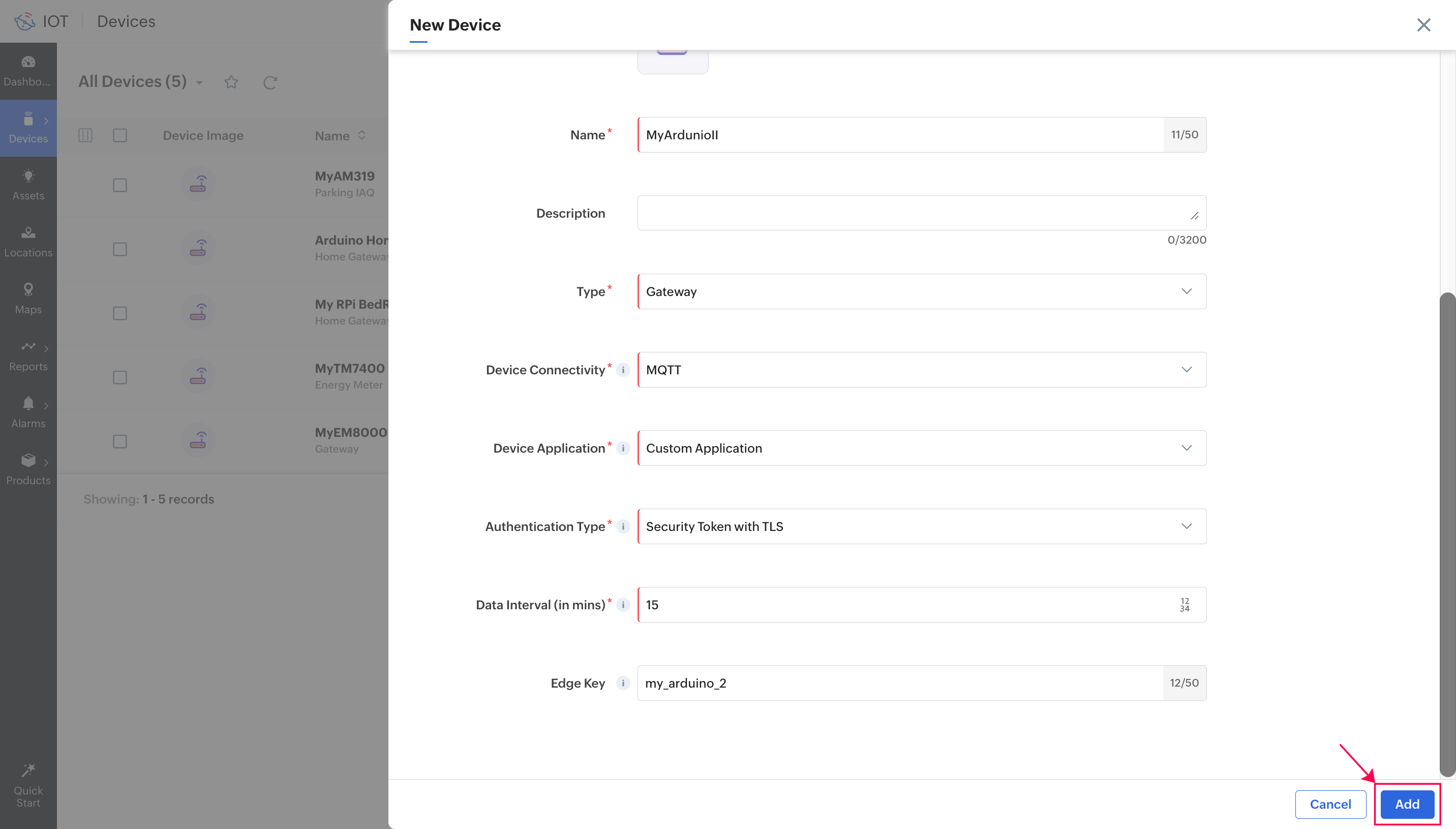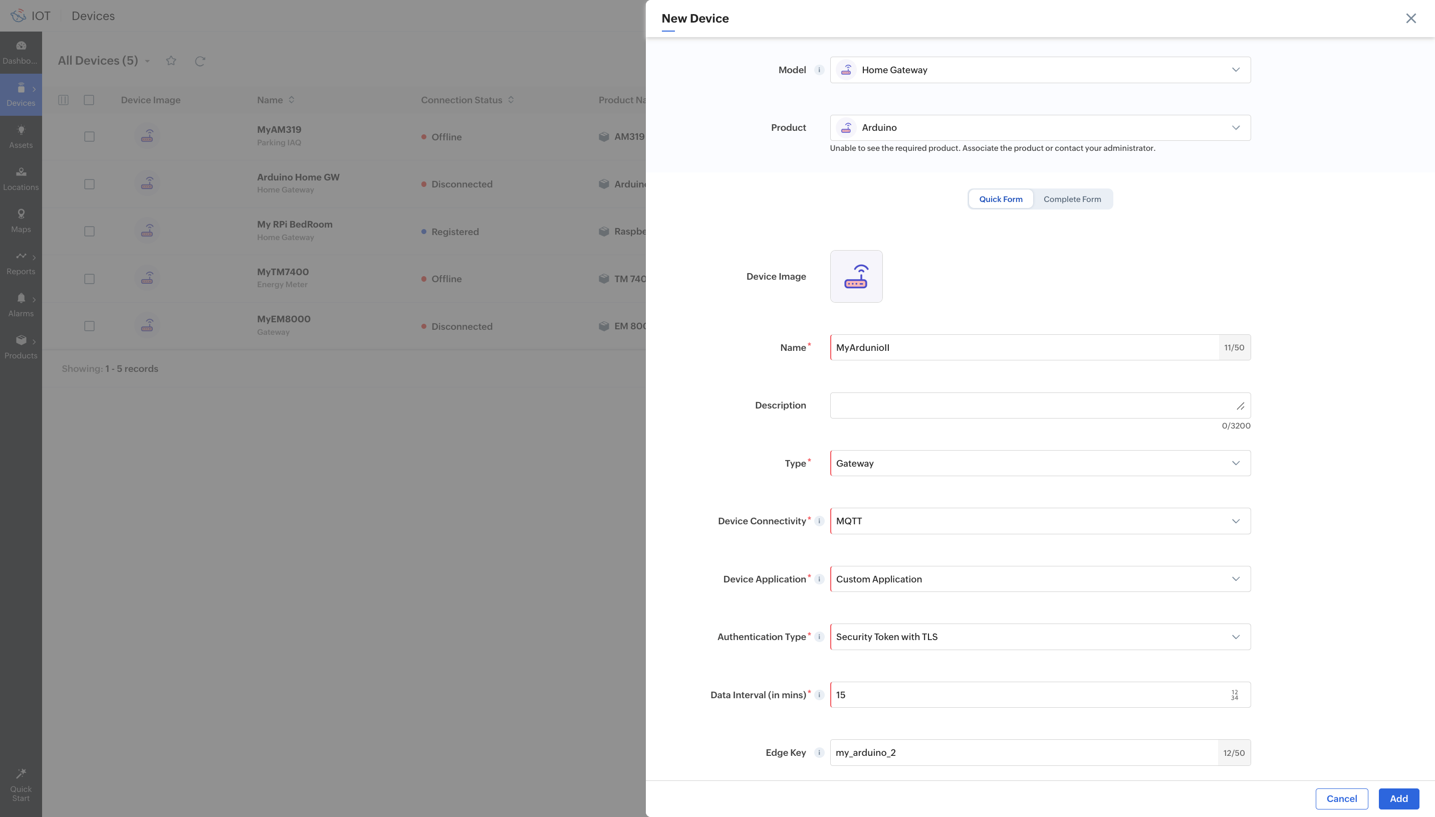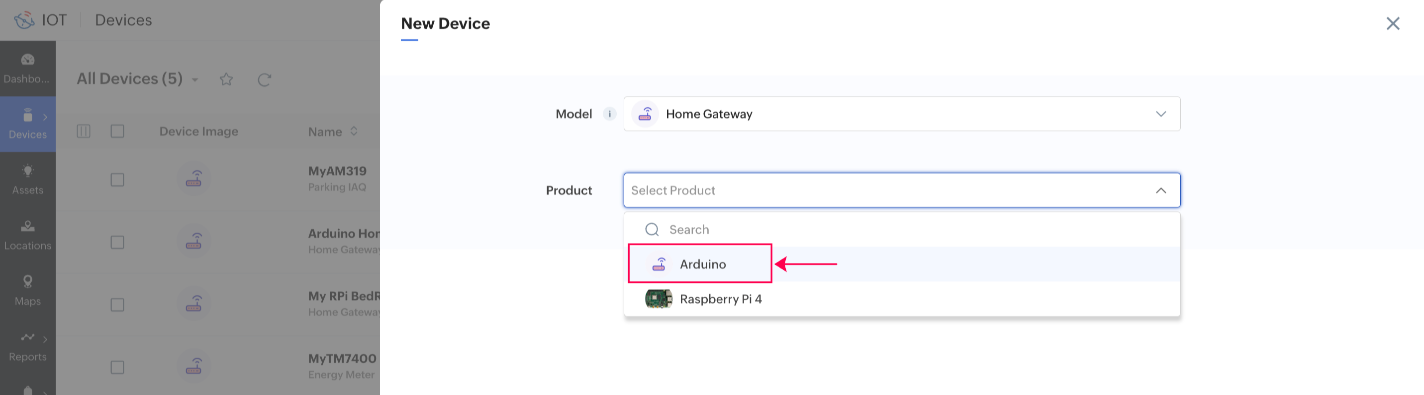 6. Select the required device product. For this illustration, Arduino device product is selected.