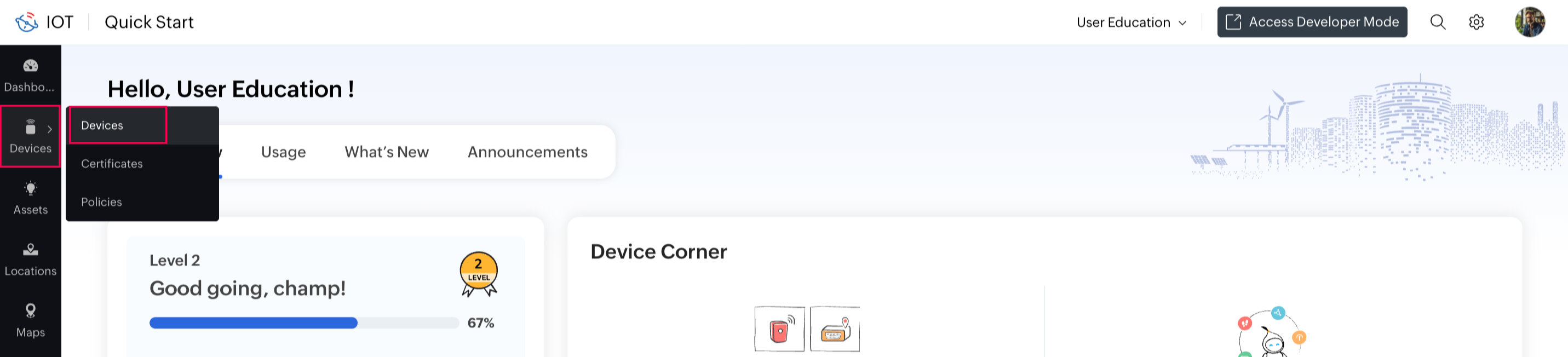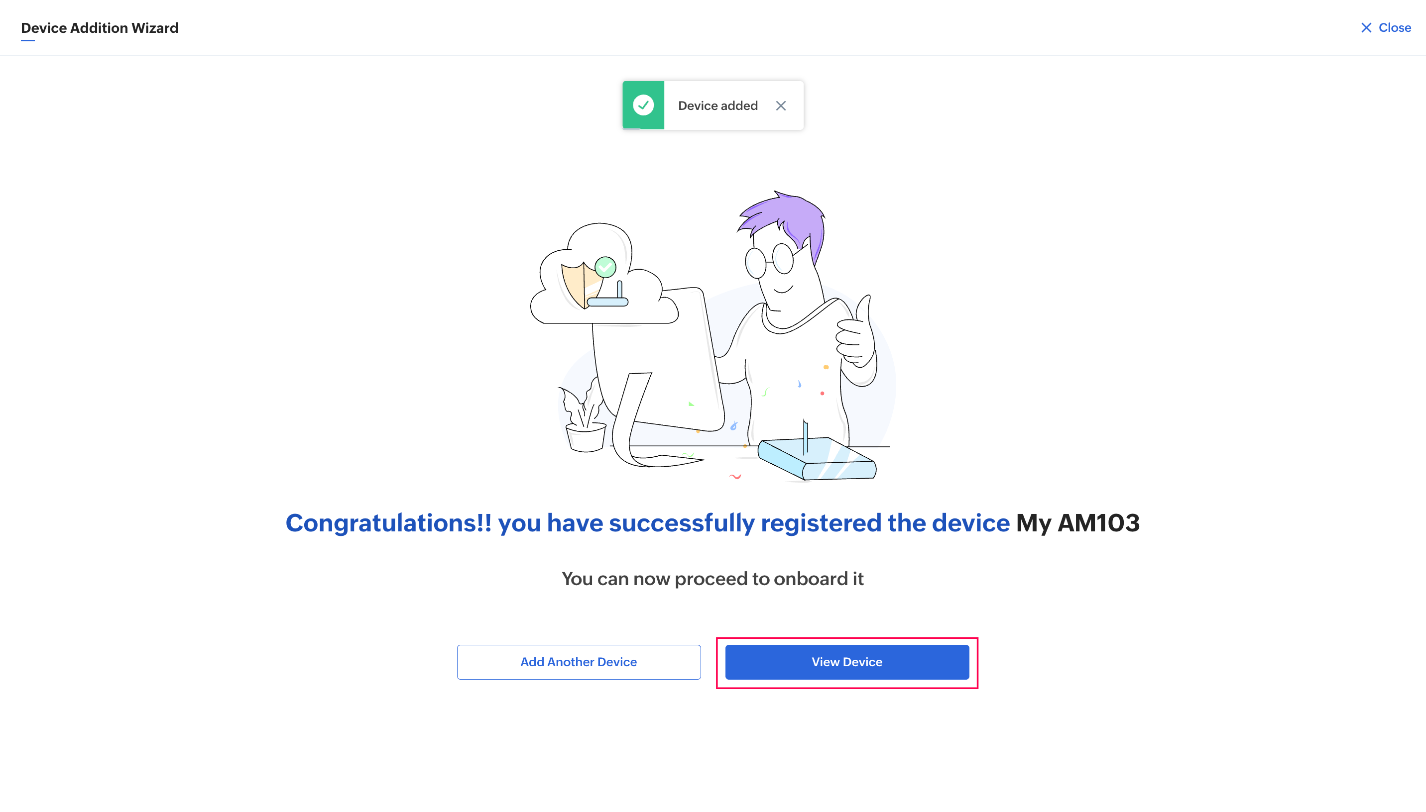 13. Select Got an IoT Device and click Continue. The onboarding assistant will guide you through onboarding your device and viewing incoming messages.