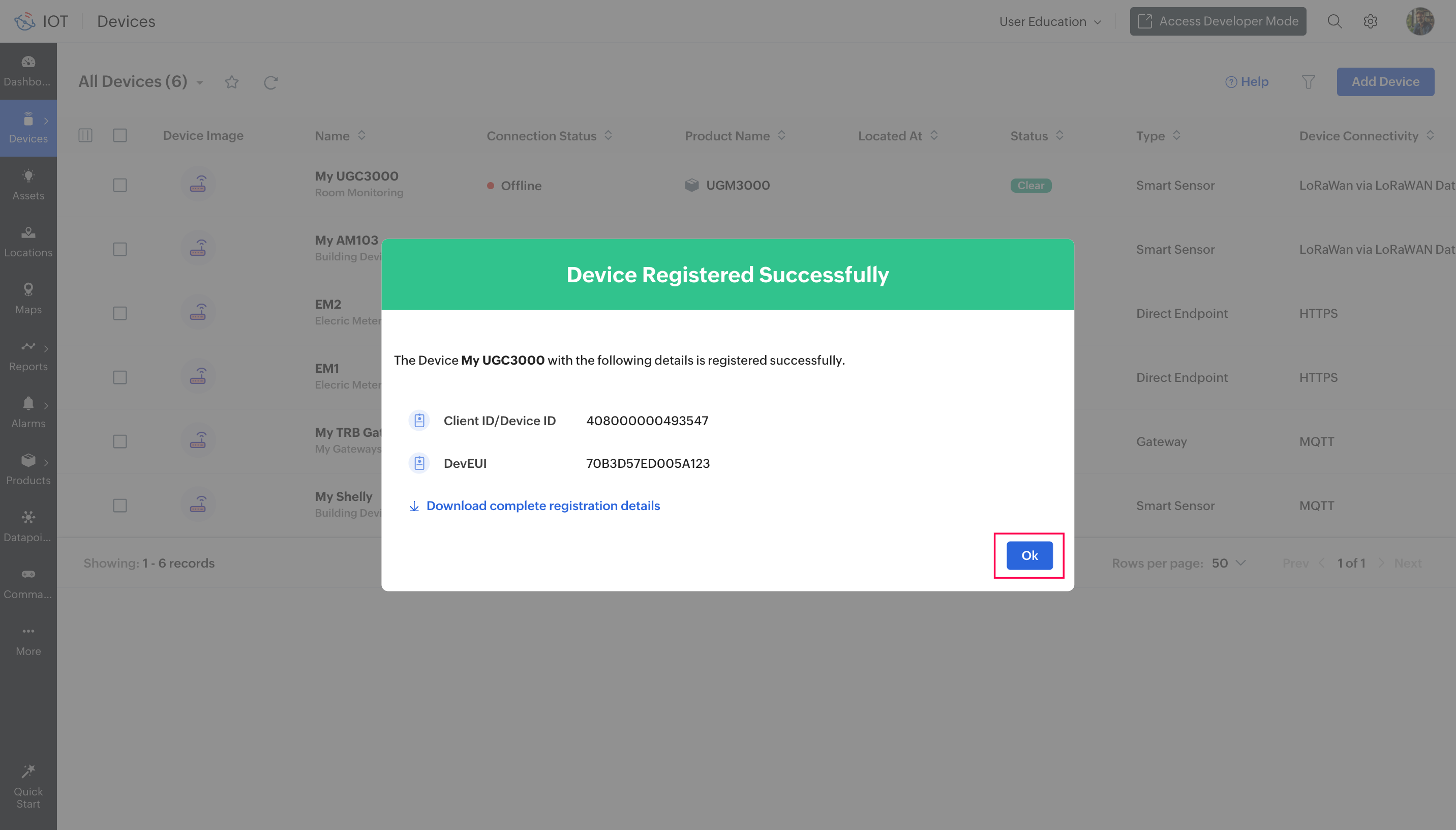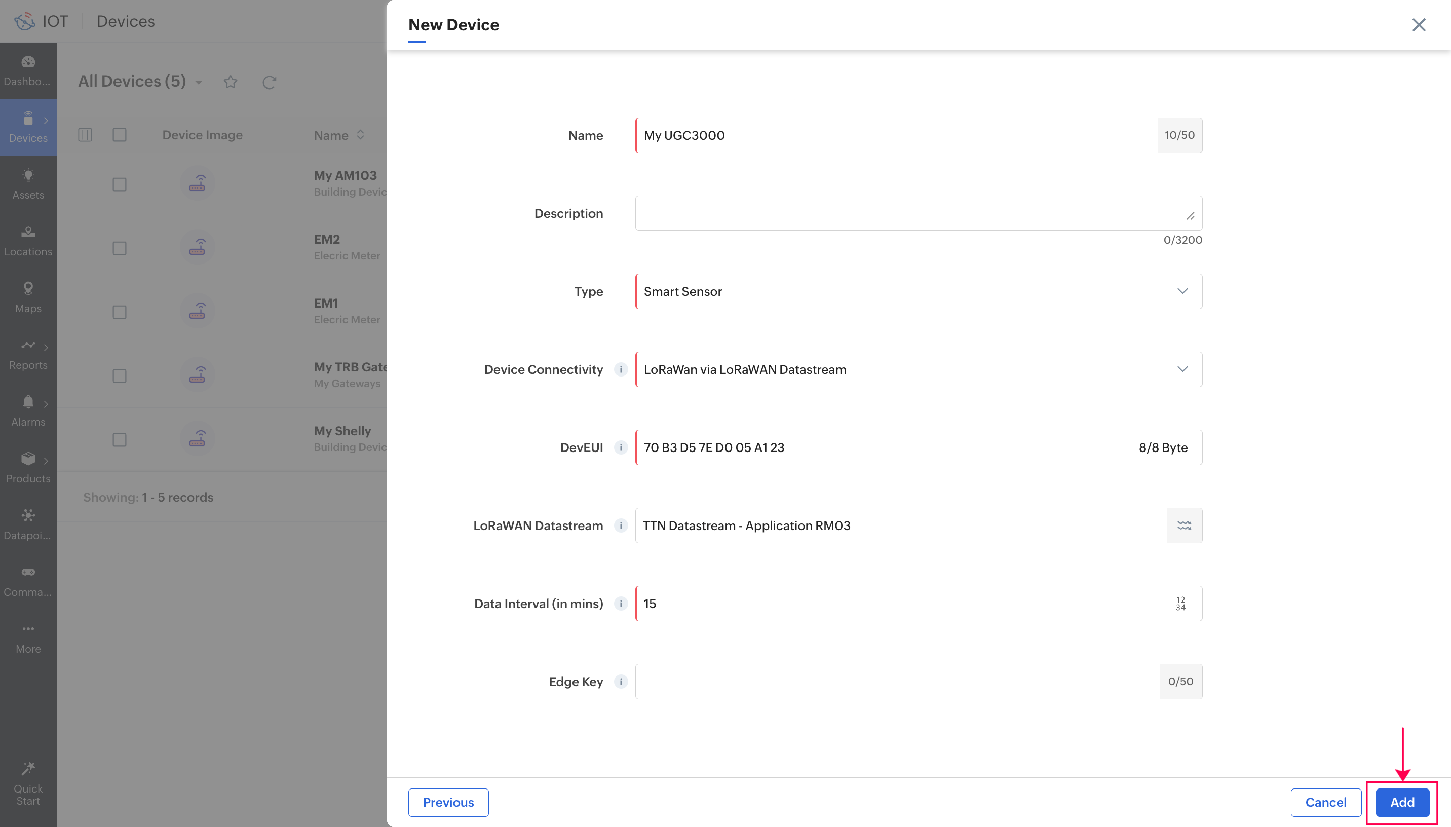 Adding a device for your LoRa node in the Zoho IoT application allows you to represent and manage it in the application.