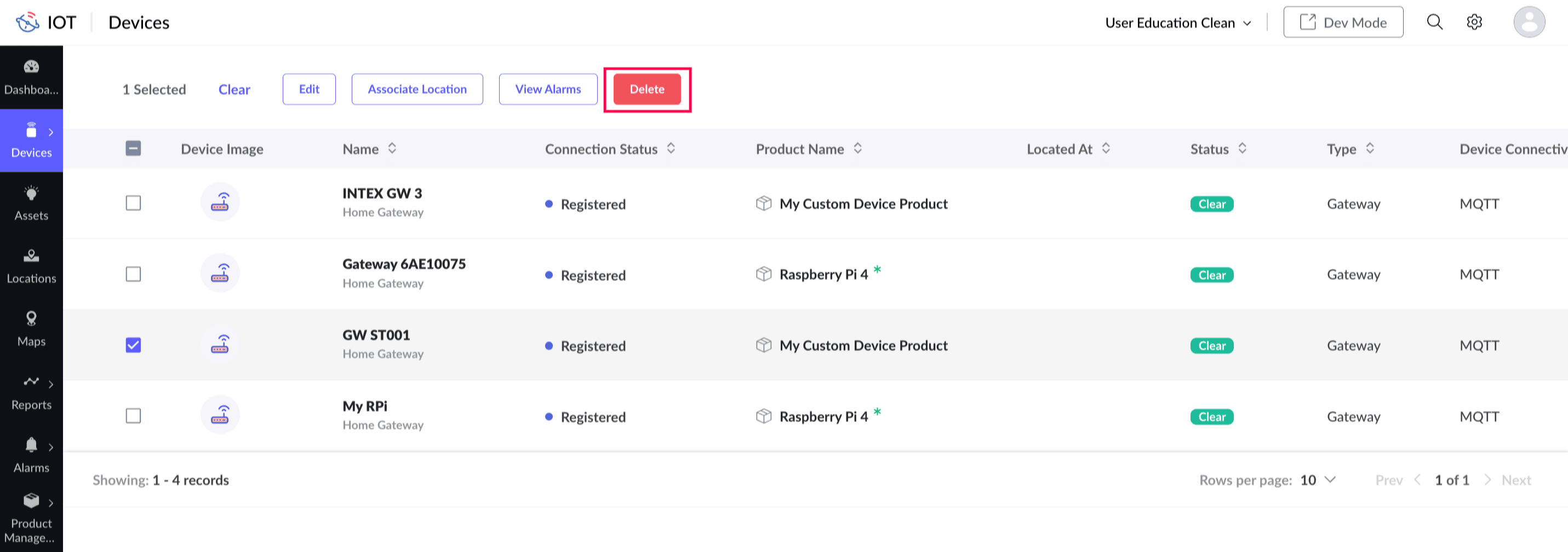 3. Select the box near the device name you want to edit. For this illustration, we will delete the device: GW ST001