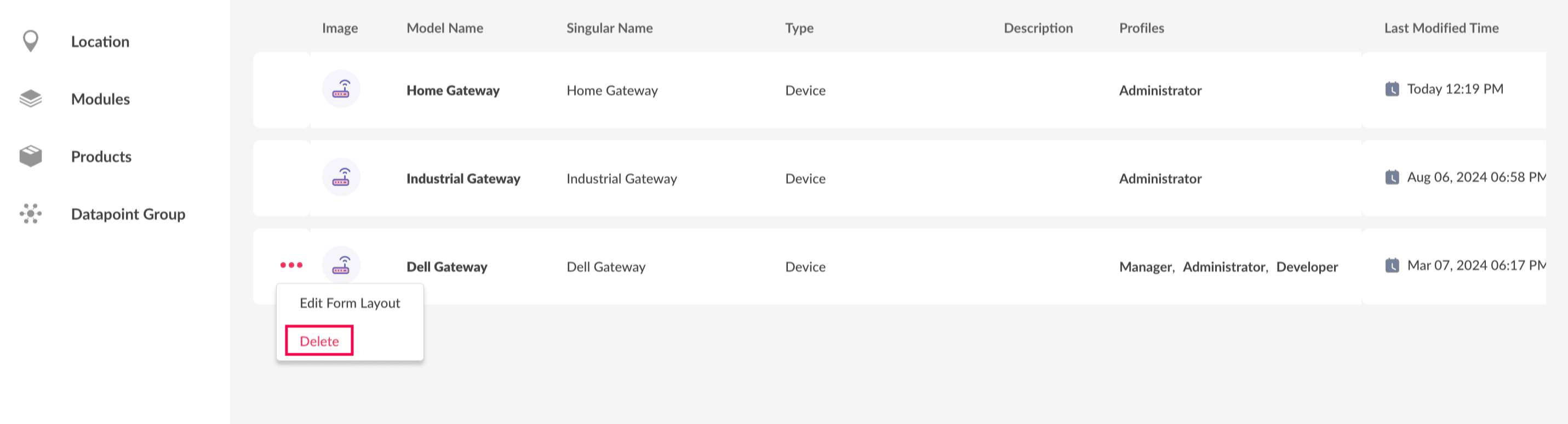 A user-defined device product added to the application can be deleted. Device Product Dependency: When a device is created based on a specific device product within the application, and that device product is linked to a device model, the device ...