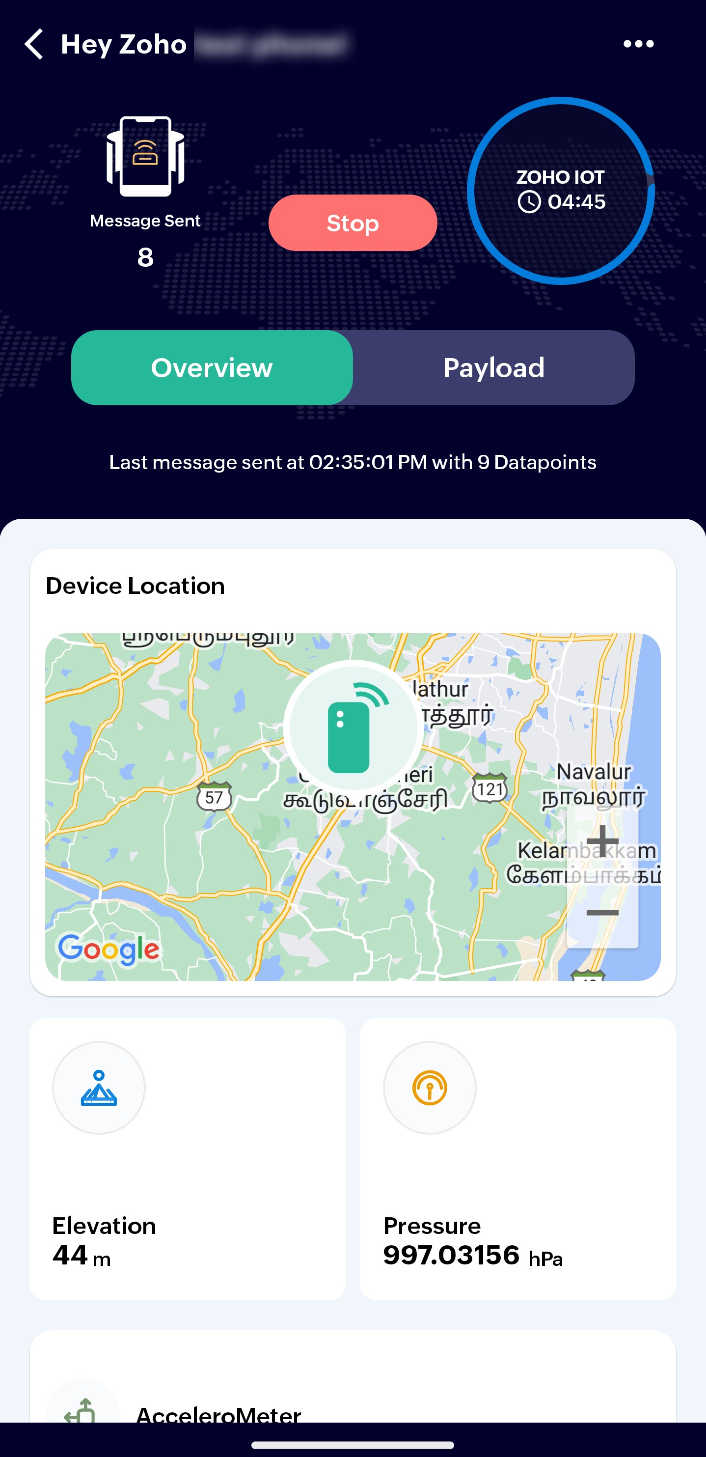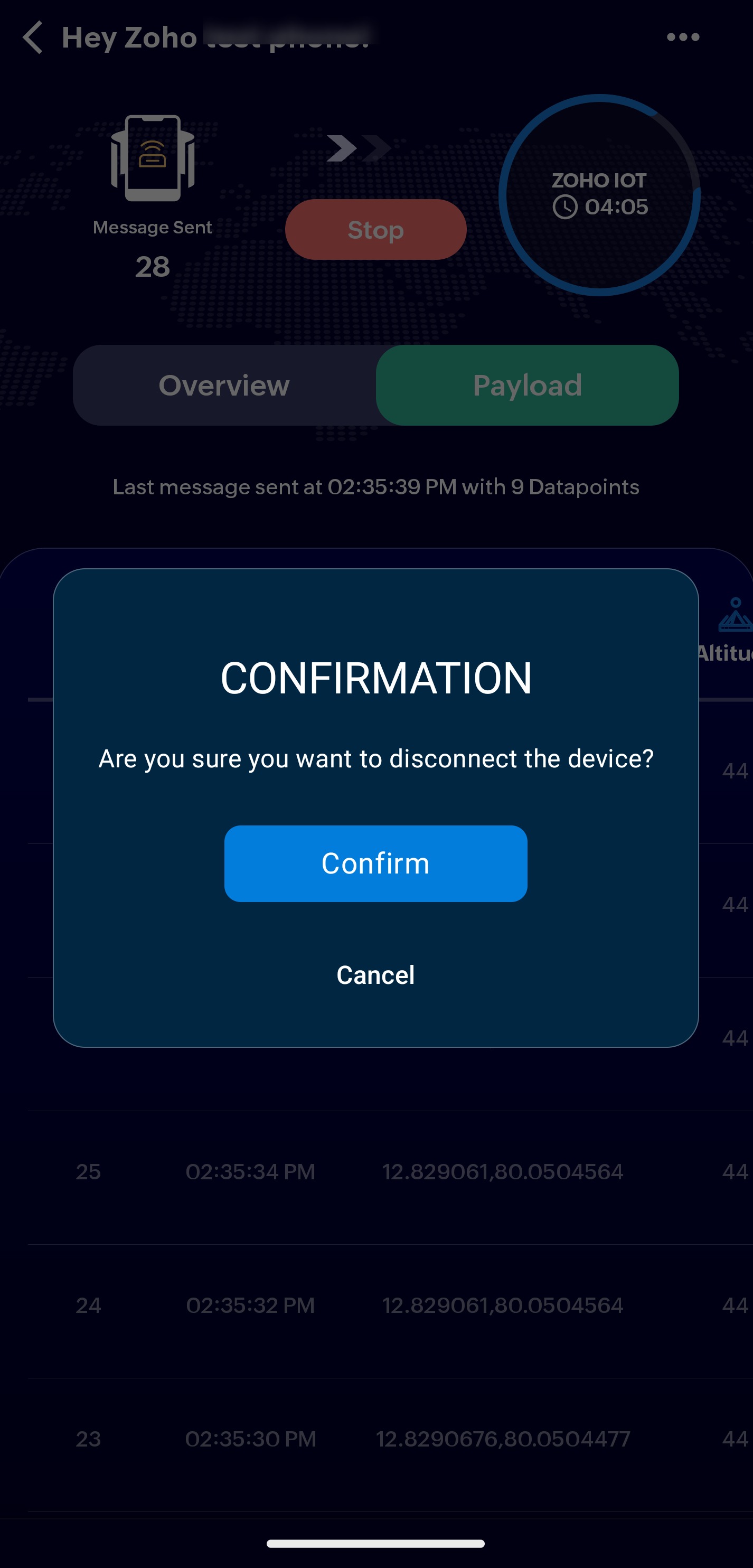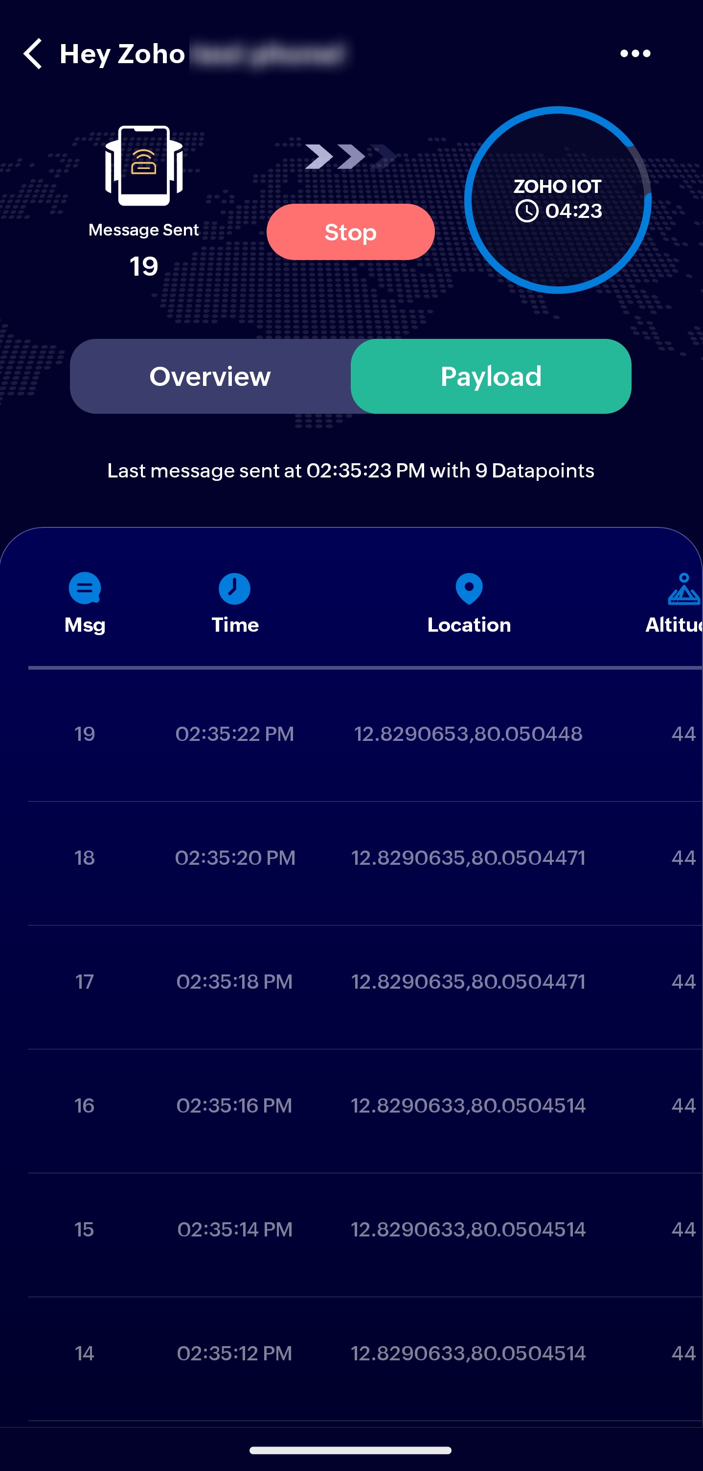 After completing the above procedures, you will be able to monitor your phone through Zoho IOT's web application interface.