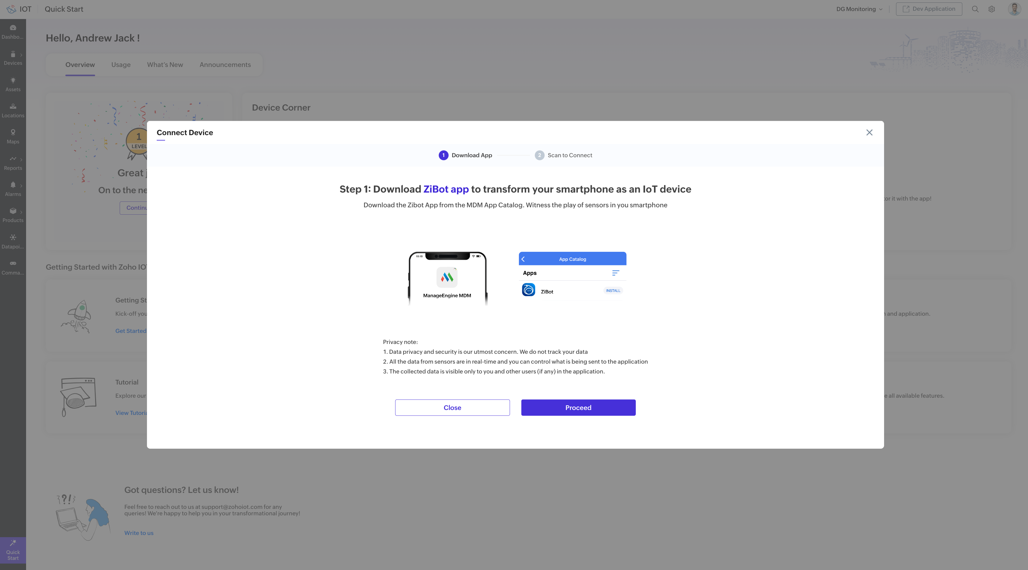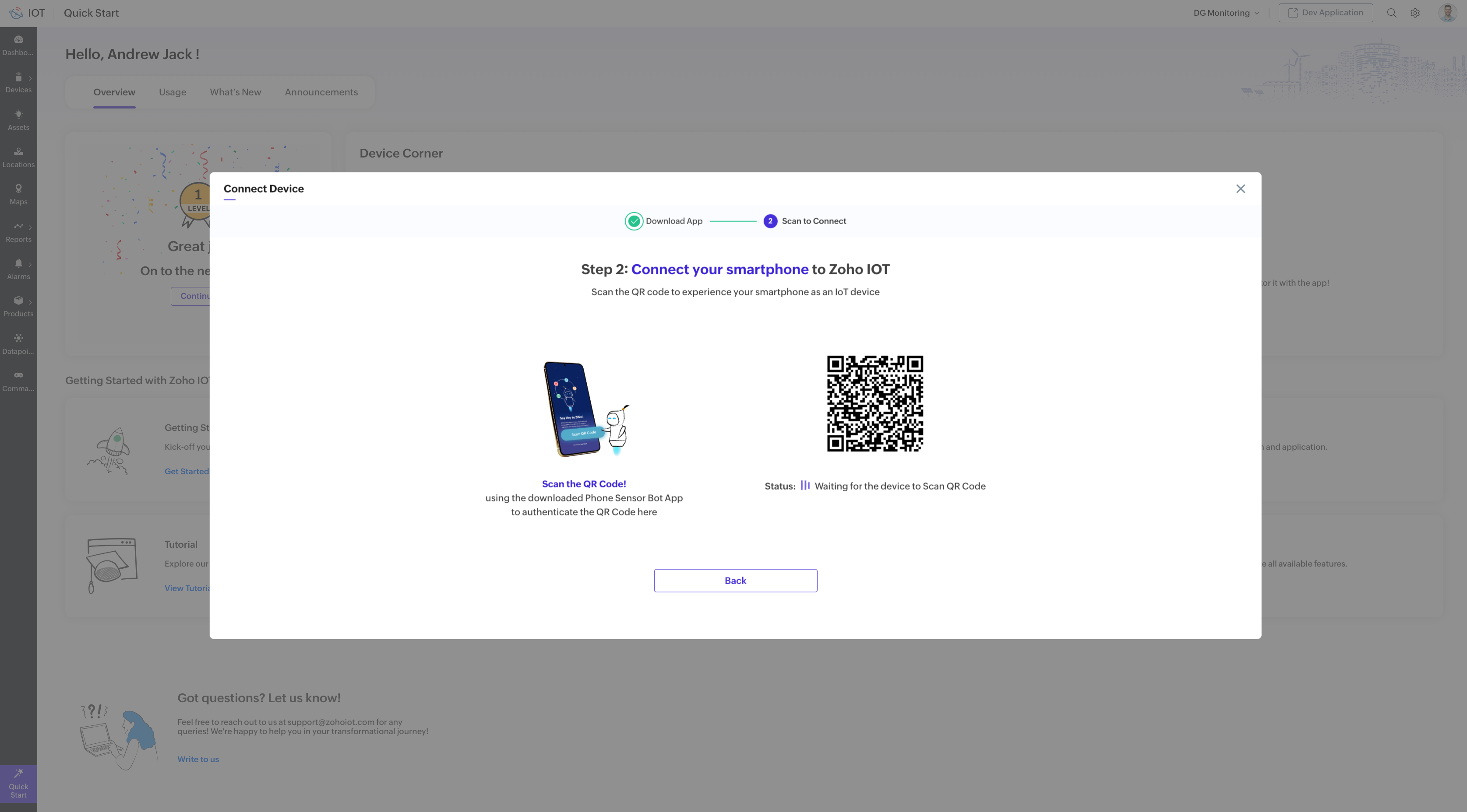 You can convert your smartphone into an IoT device and get a hands-on experience of Zoho IOT.