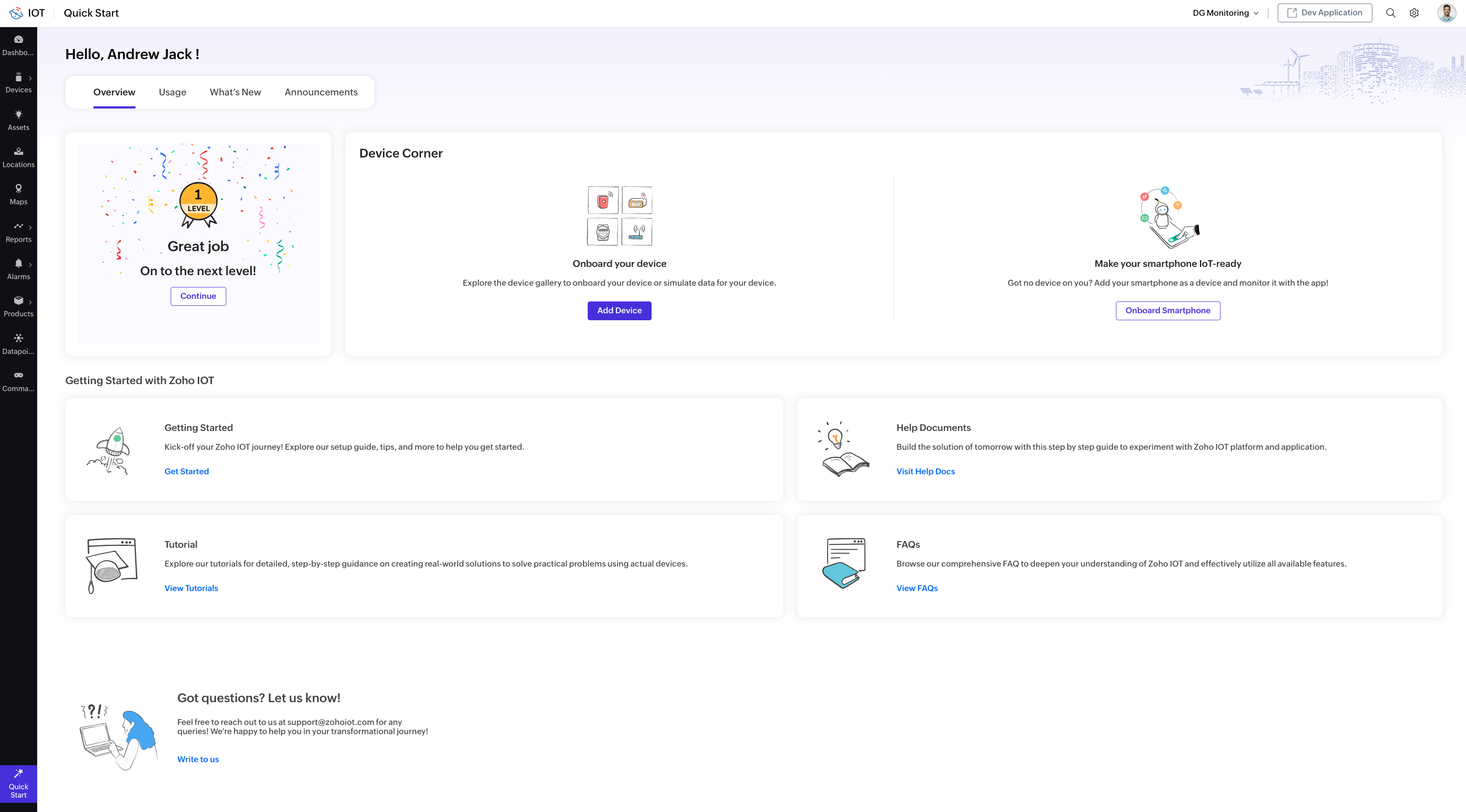 This document will lead you to get started, helping you to understand how data from devices and assets in an IoT network is received and processed for monitoring and management at the Zoho IOT application.