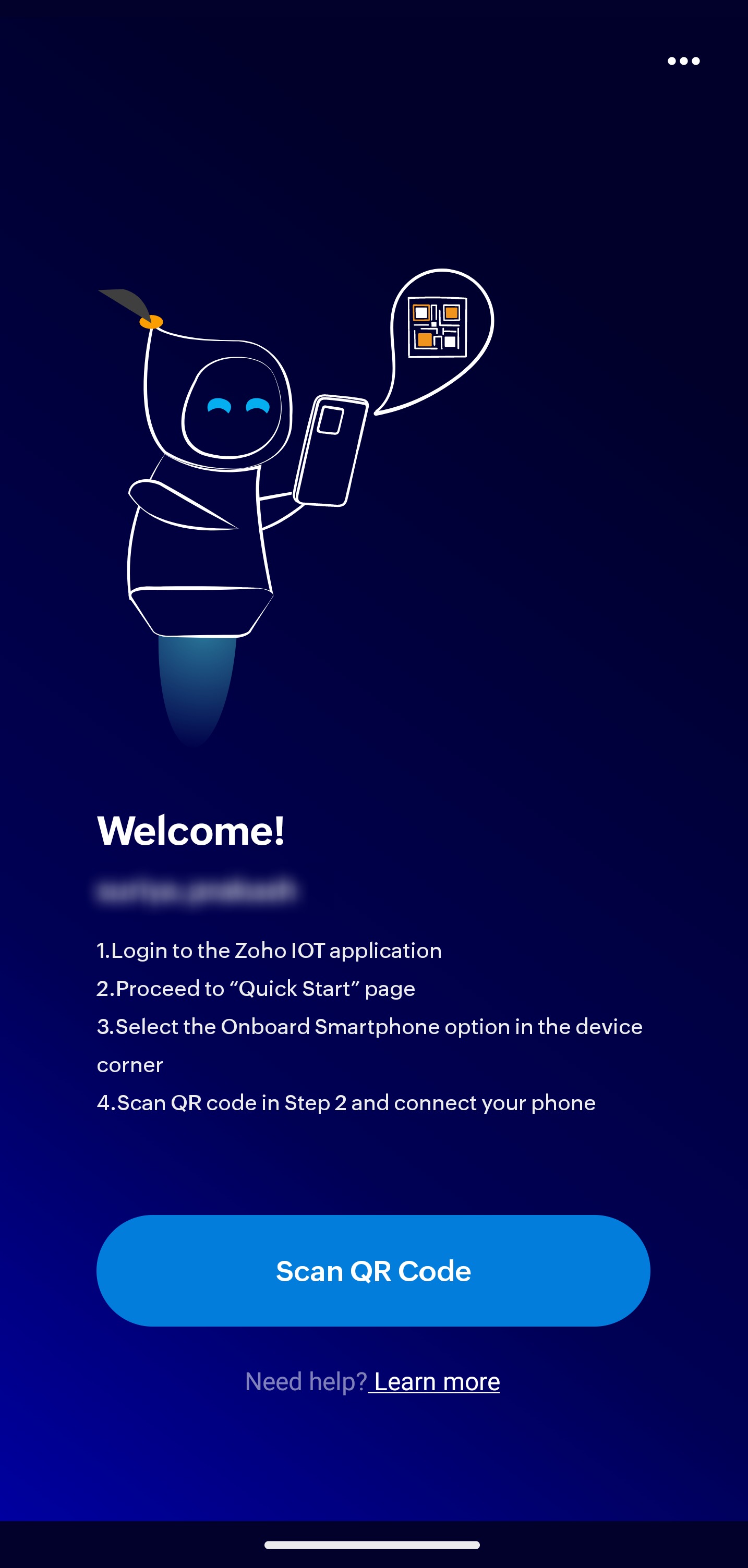 - Scan the QR code displayed in the web application using the ZiBot app to create your smartphone as a device.