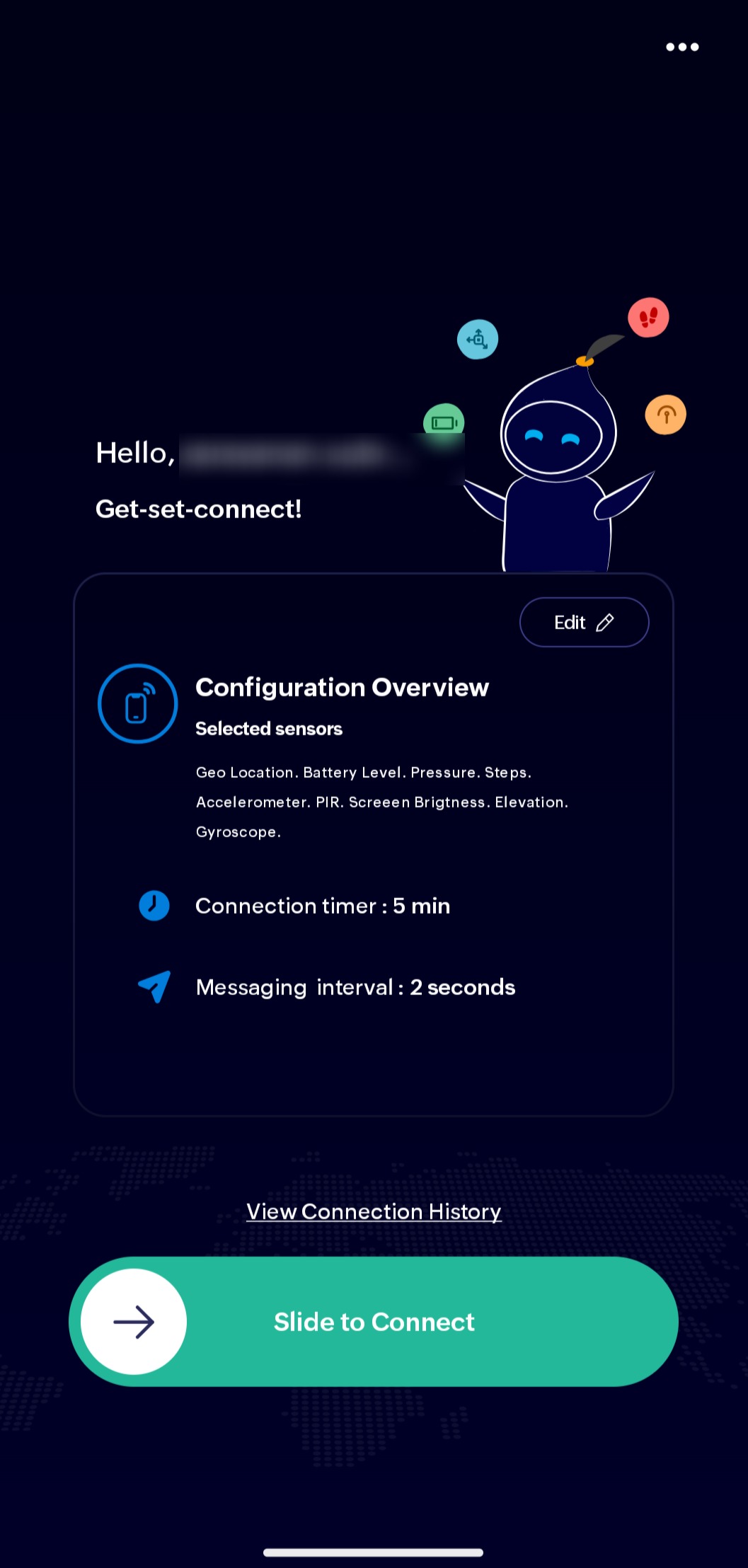 4. Slide on the text SLIDE TO CONNECT. The data will start simulating and data is received in the application.