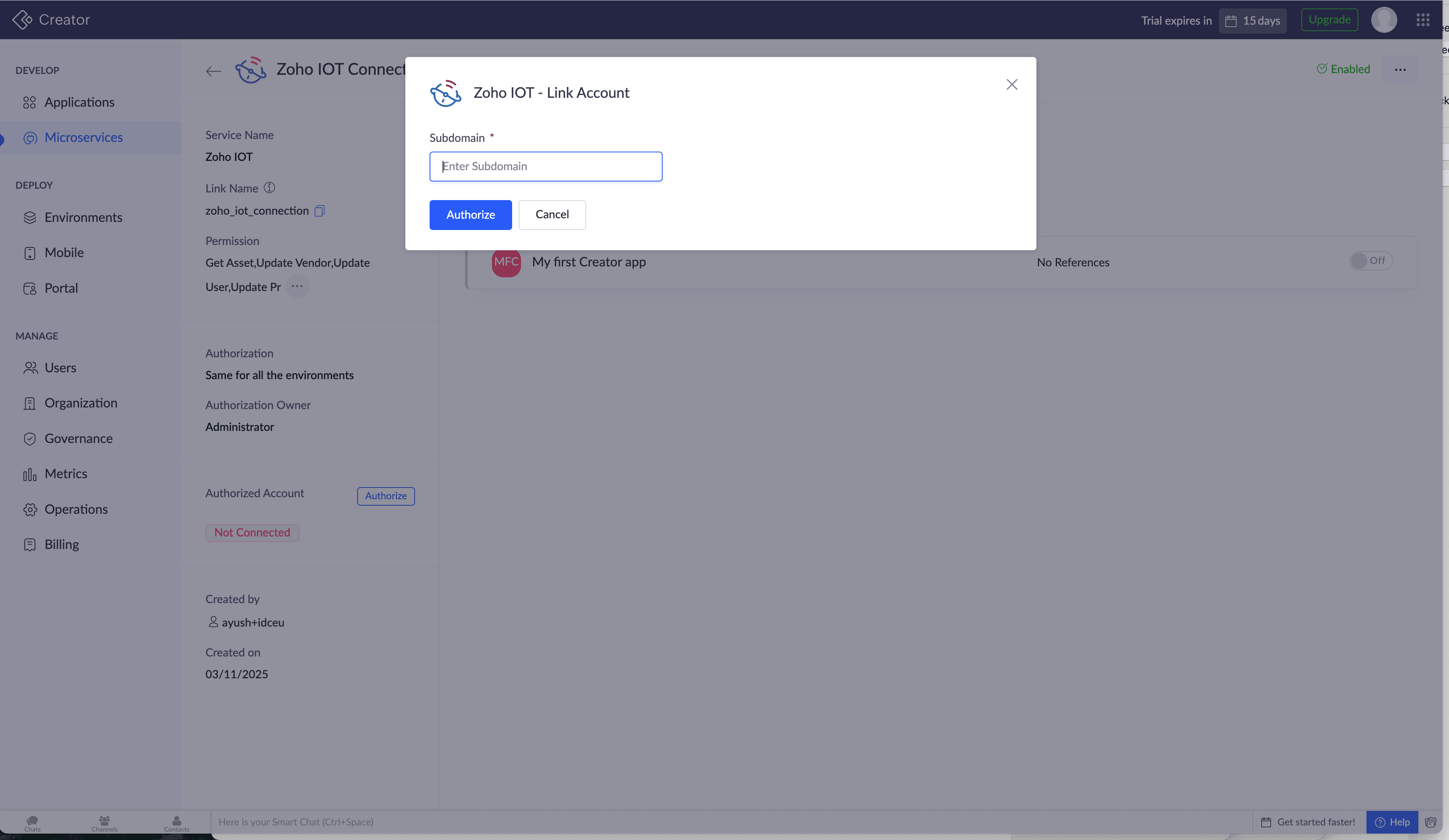 This implementation ensures seamless data flow between Zoho Creator and Zoho IoT, enabling real-time monitoring, automated alerts, and efficient post-sale support for customers.