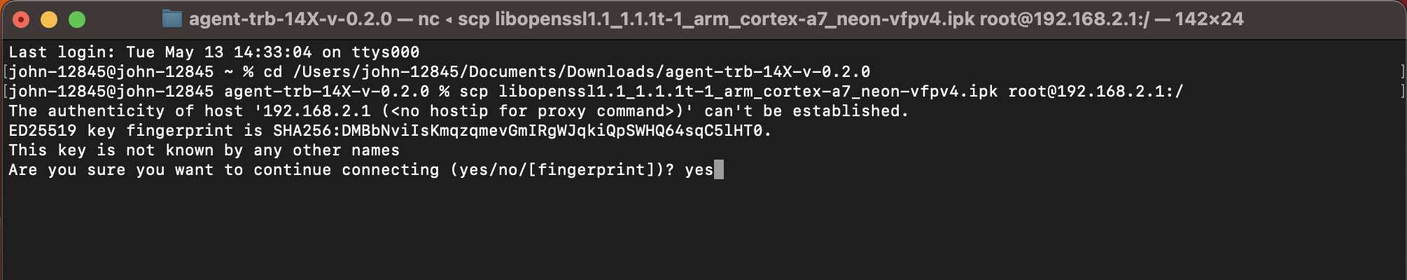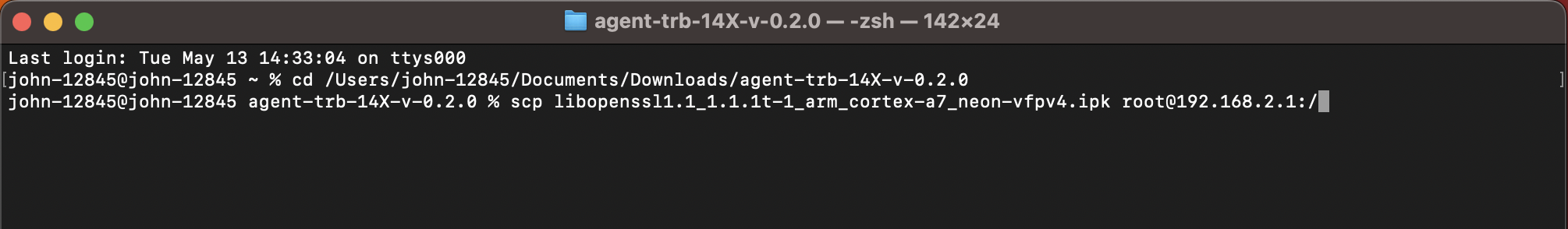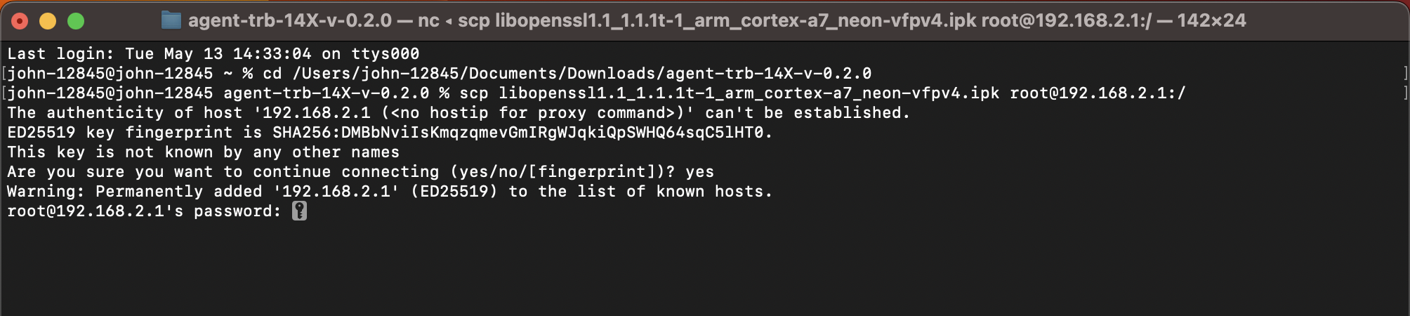 scp libopenssl1.1_1.1.1t-1_arm_cortex-a7_neon-vfpv4.ipk root@192.168.2.1:/tmp