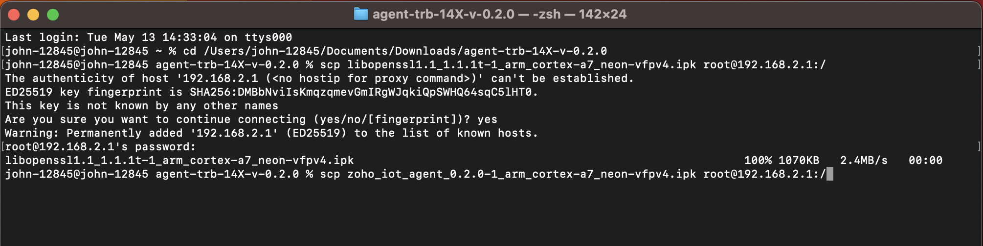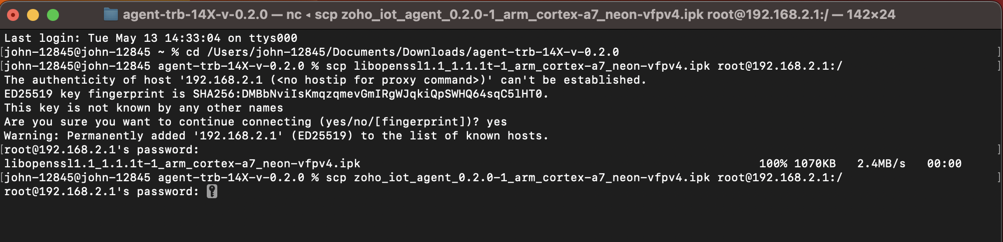 scp zoho_iot_agent_0.2.0-1_arm_cortex-a7_neon-vfpv4.ipk root@192.168.2.1:/tmp