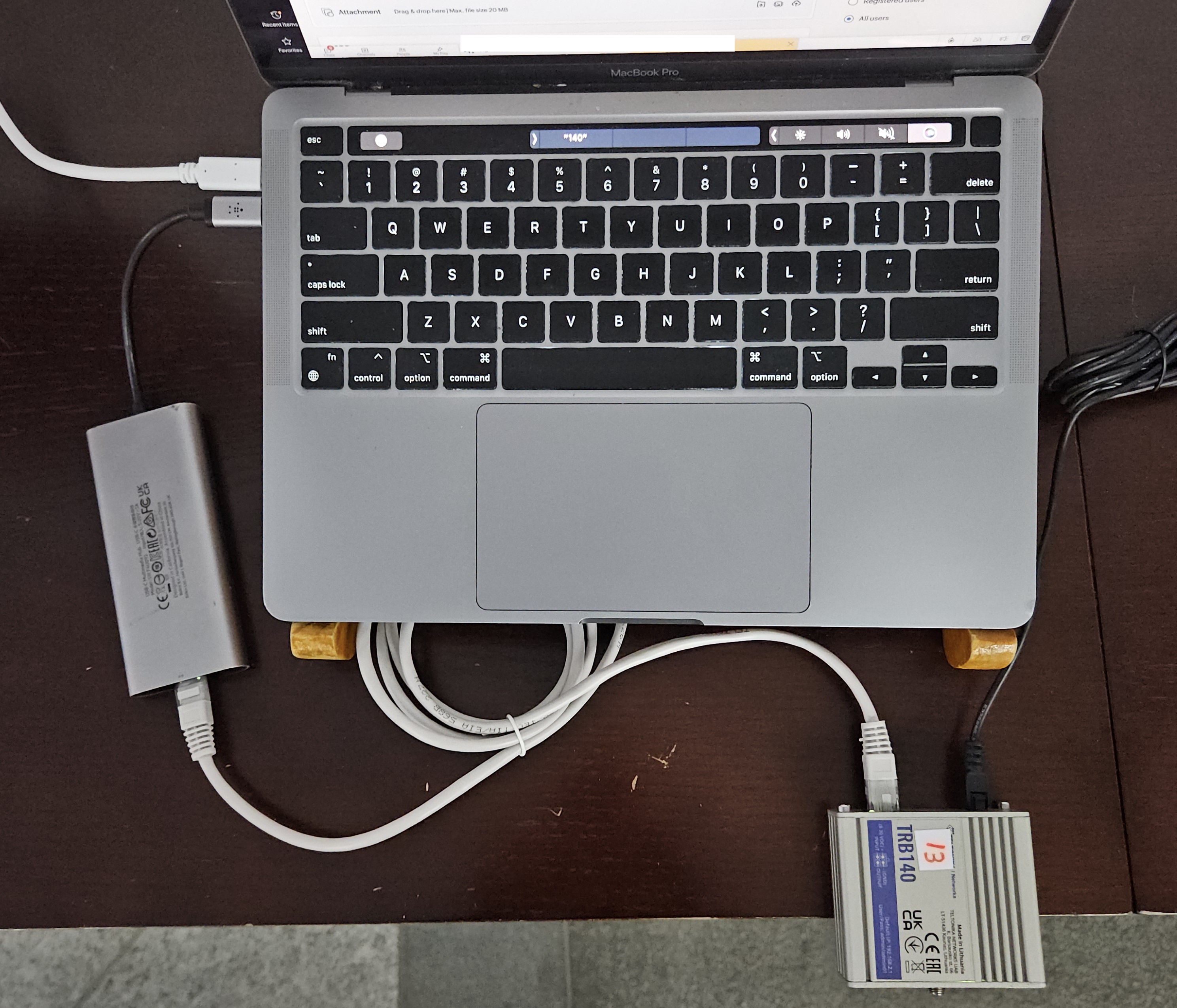 1. Connect your Mac/PC to the TRB140 using a LAN cable.
