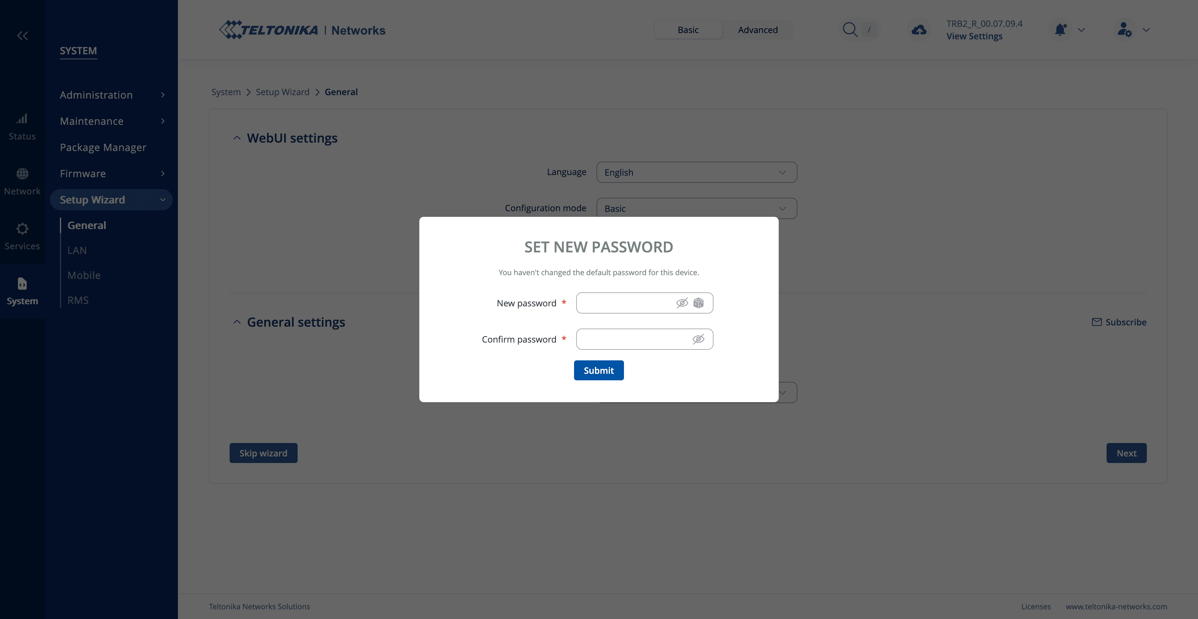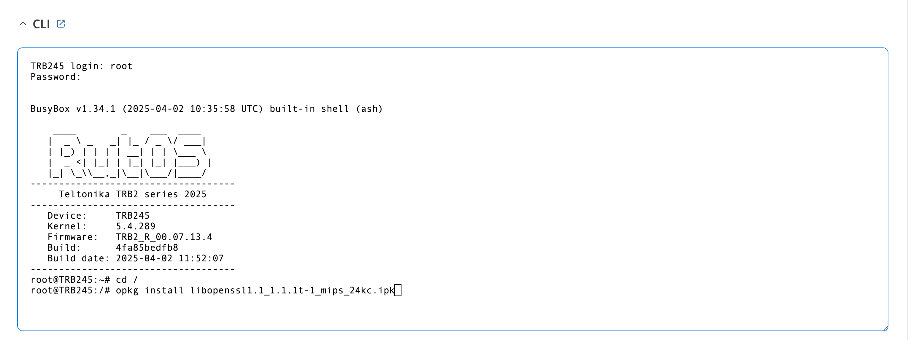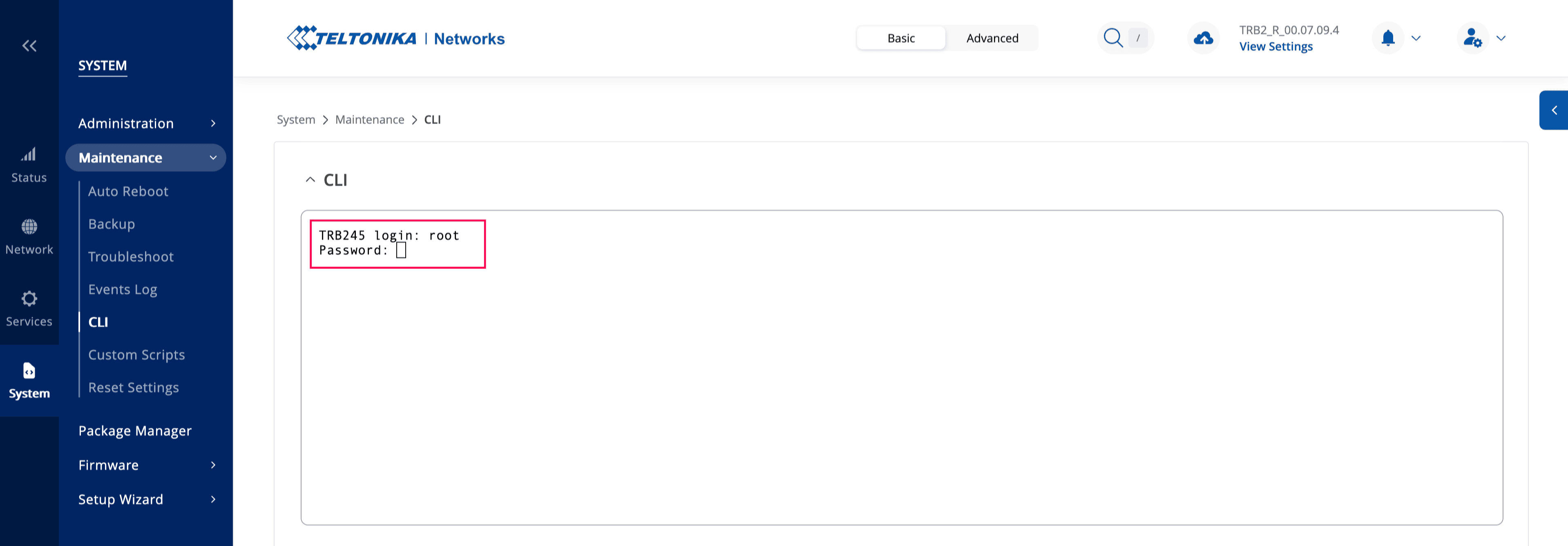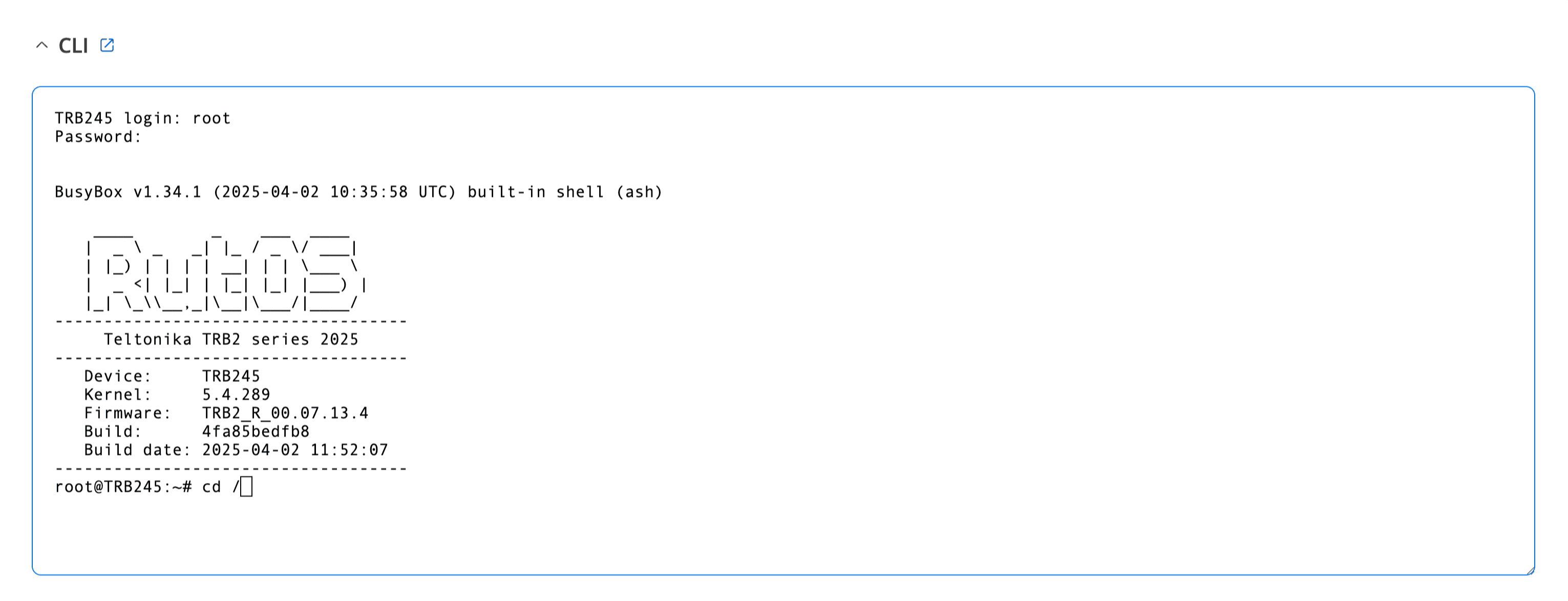 2. Enter the TRB245 device password when prompted and click return/Enter.