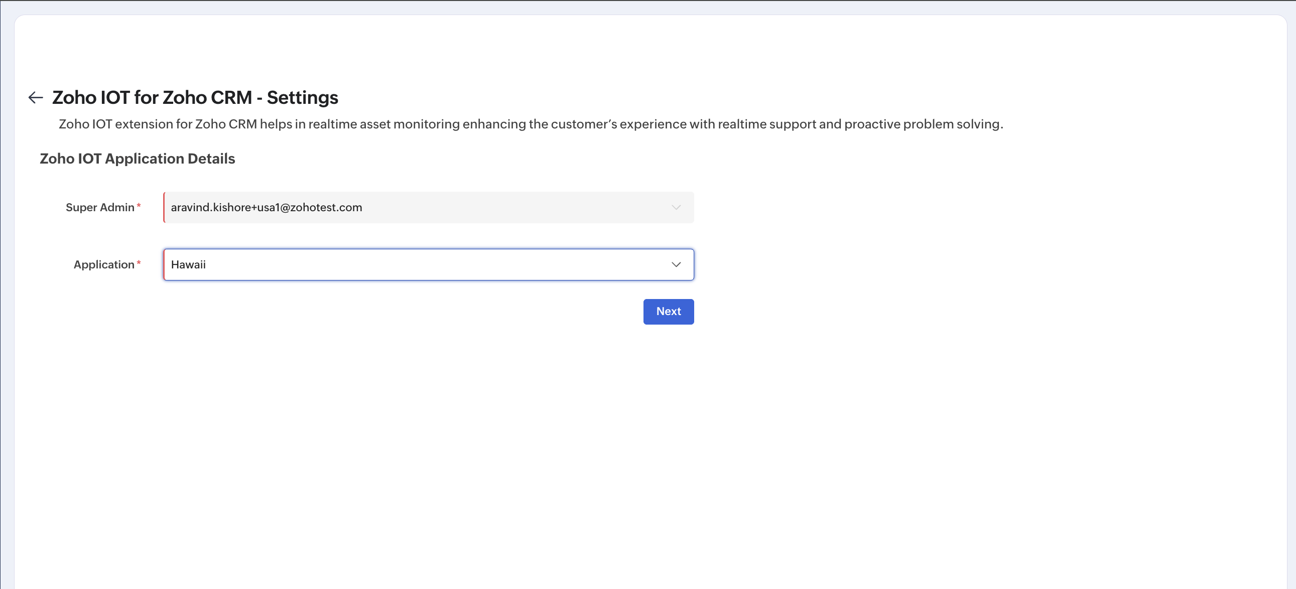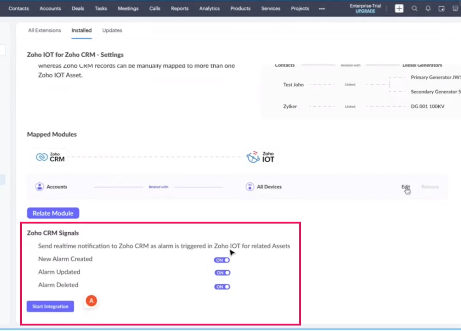 Note: One Zoho IoT application can be mapped to the CRM application in an integration.