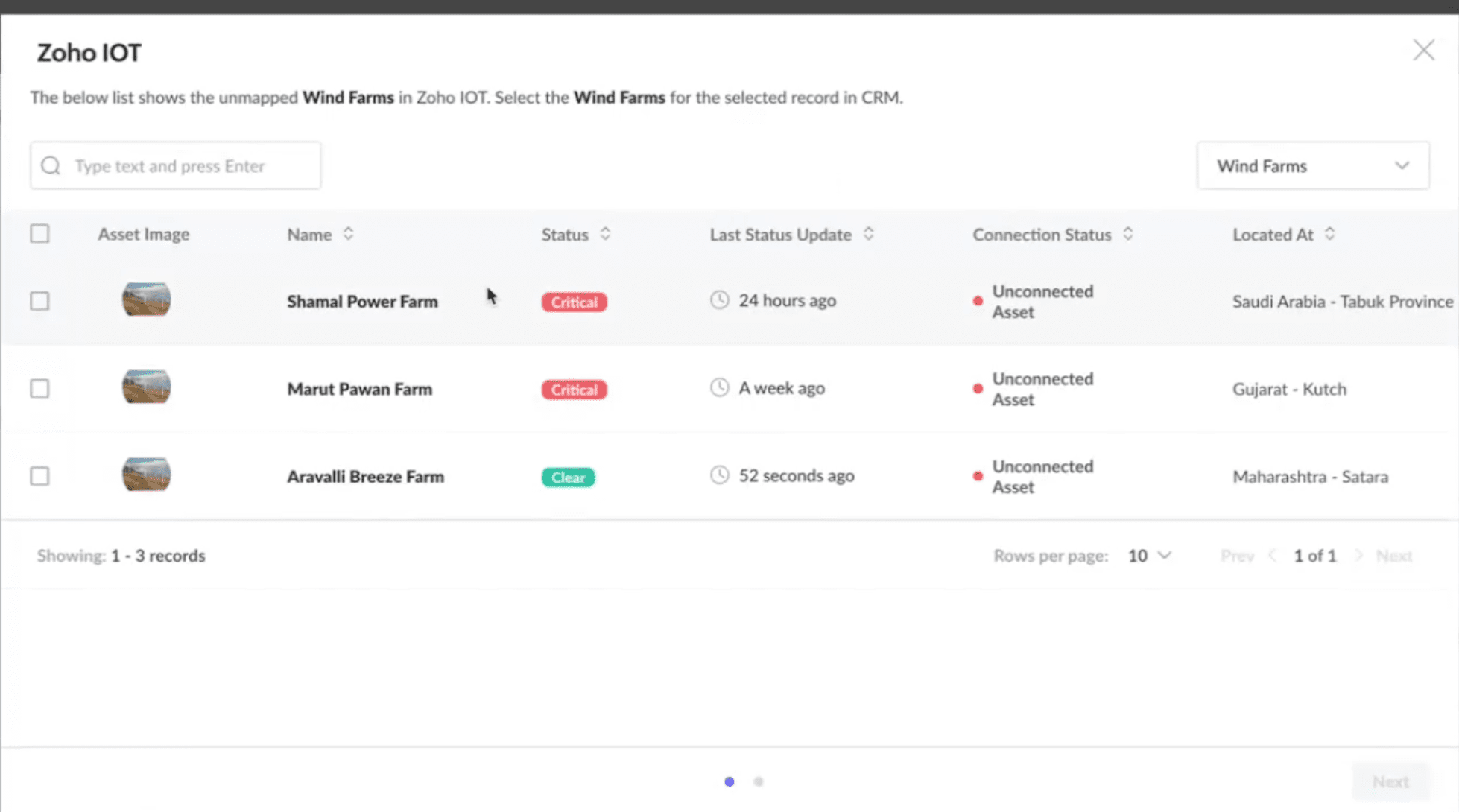 Using Zoho IoT application, you can create your own solution from scratch, including your customized modules. The Module mapping option here helps you to link the module created in IoT with the CRM module.