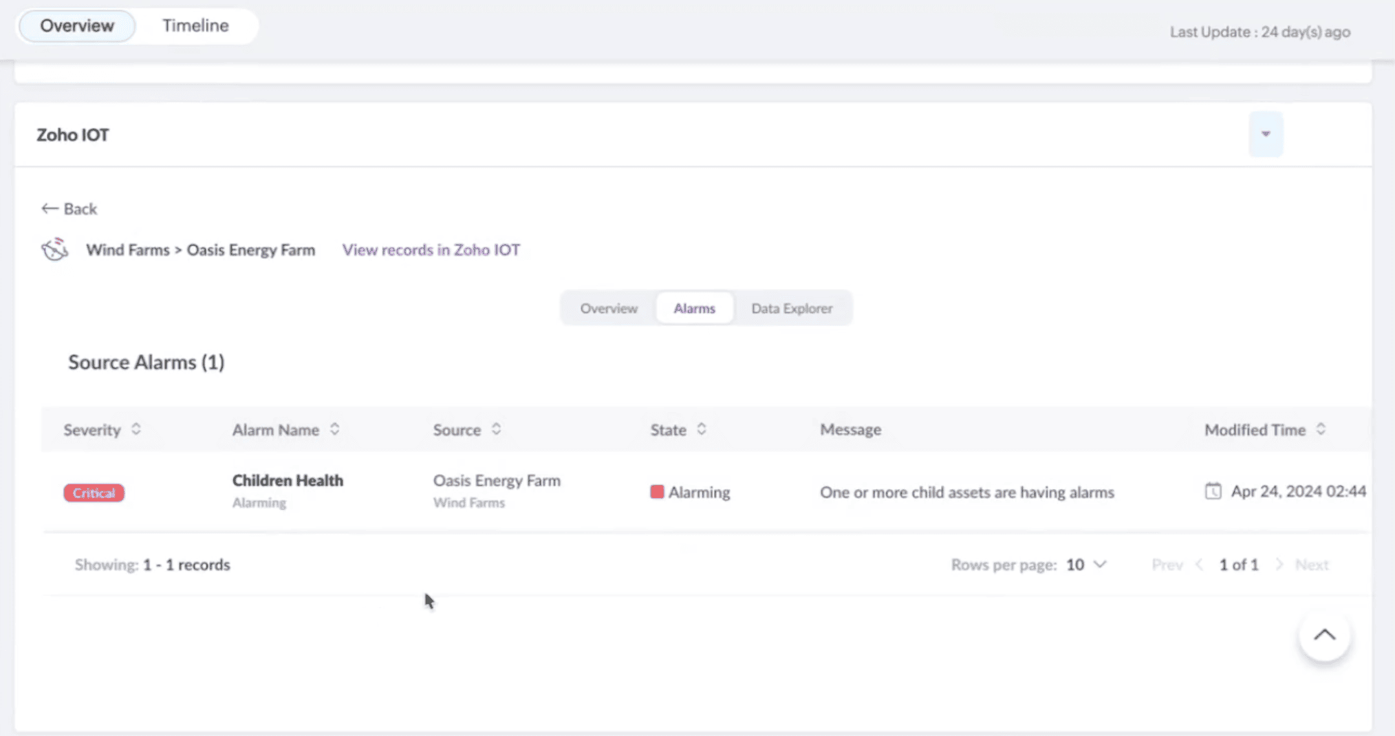 For the mapped module, you can further configure the Zoho CRM Signals. The signals will be received in Zoho CRM whenever an alarm is generated, deleted, or updated for the mapped asset in Zoho IoT.