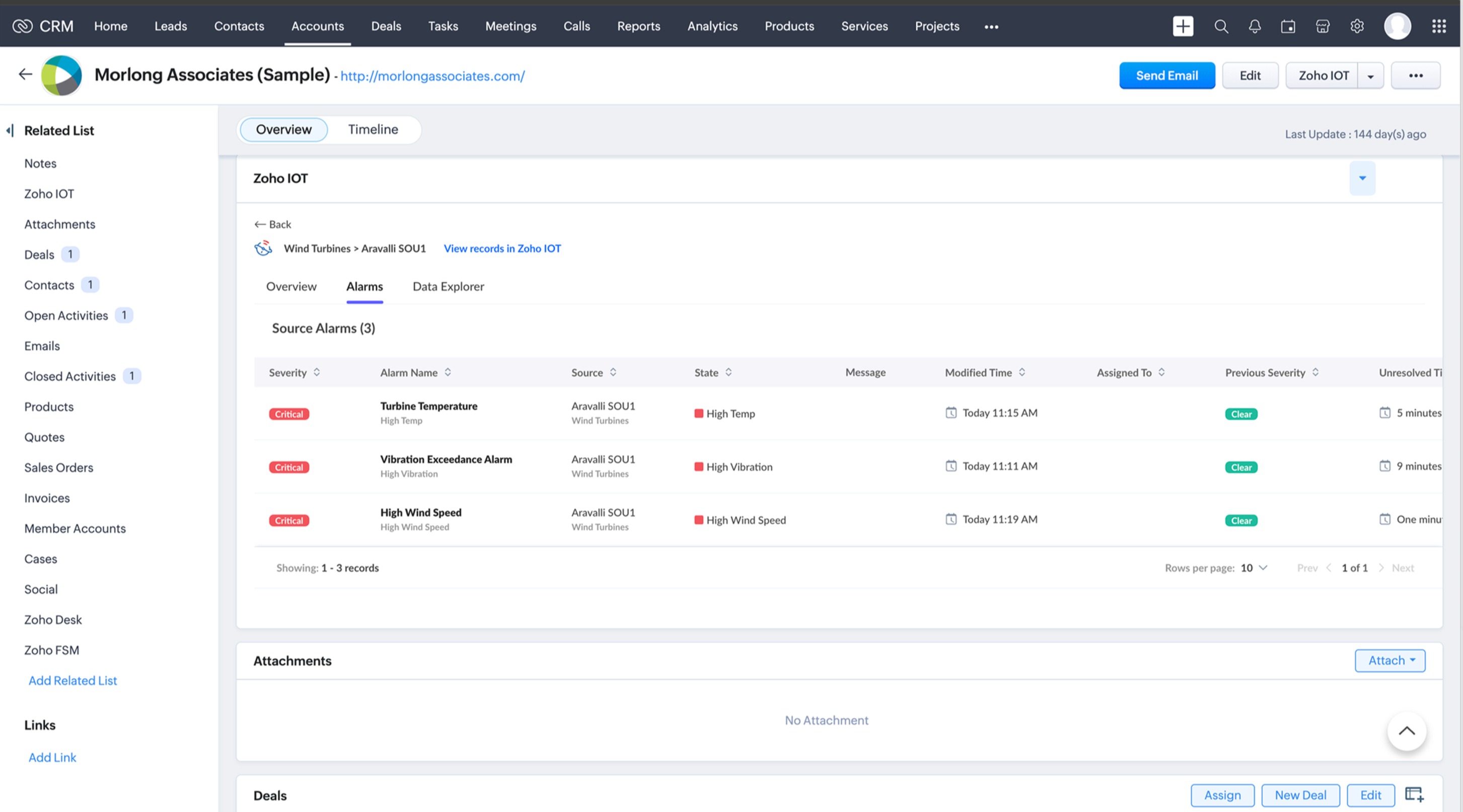 After integrating and configuring, the IoT application with the synced data can be viewed inside the CRM Application.