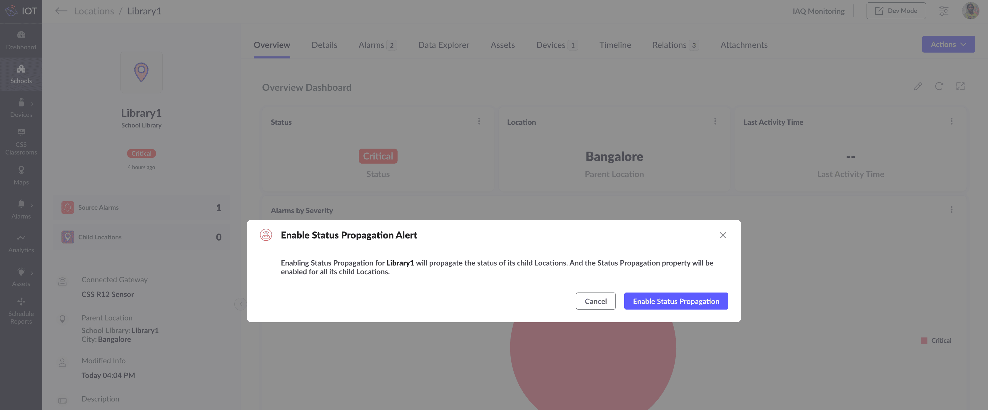In the Alert dialog, click Enable Status Propagation to confirm in the alert dialog.To disable status propagation in location,