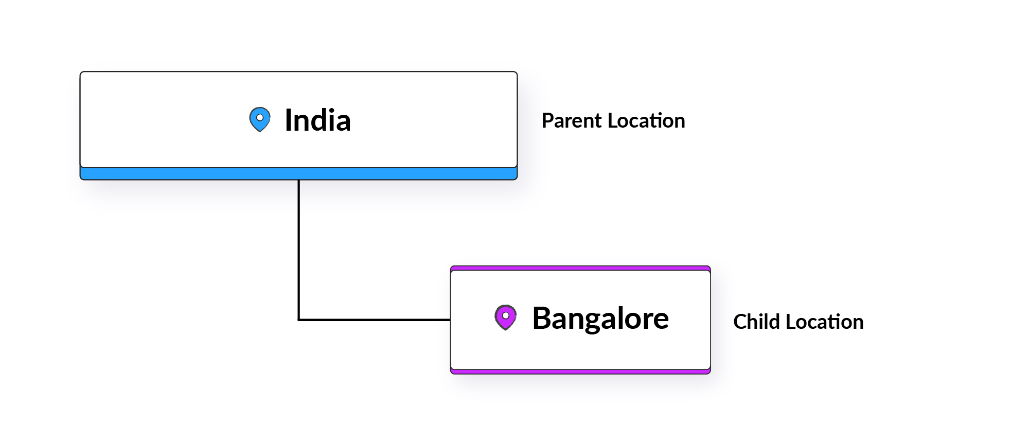 Image 1: In the single level hierarchy, India is the parent location as well as the base (root) location, with Bangalore as its child location.