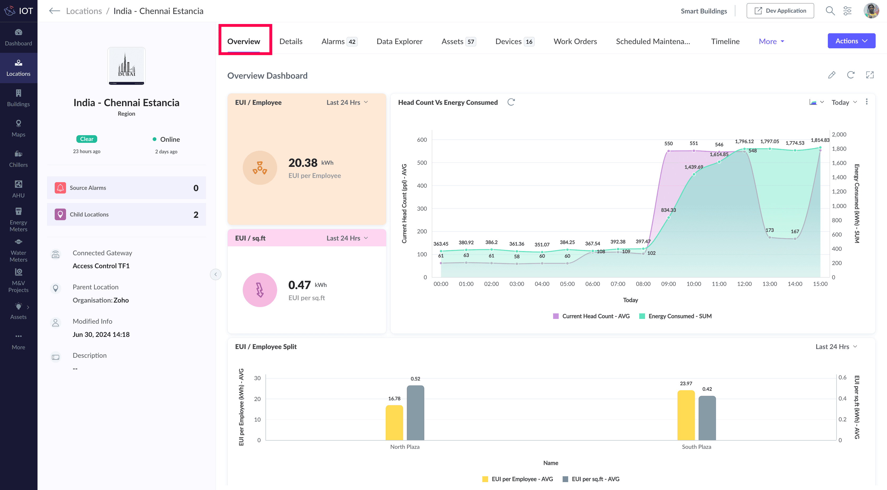 Overview dashboard. This gives a holistic view of the locations, devices, and assets associated with that location.