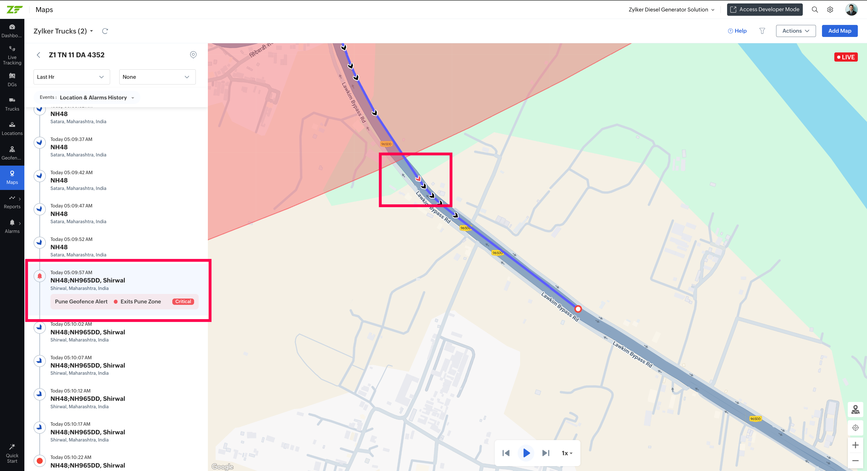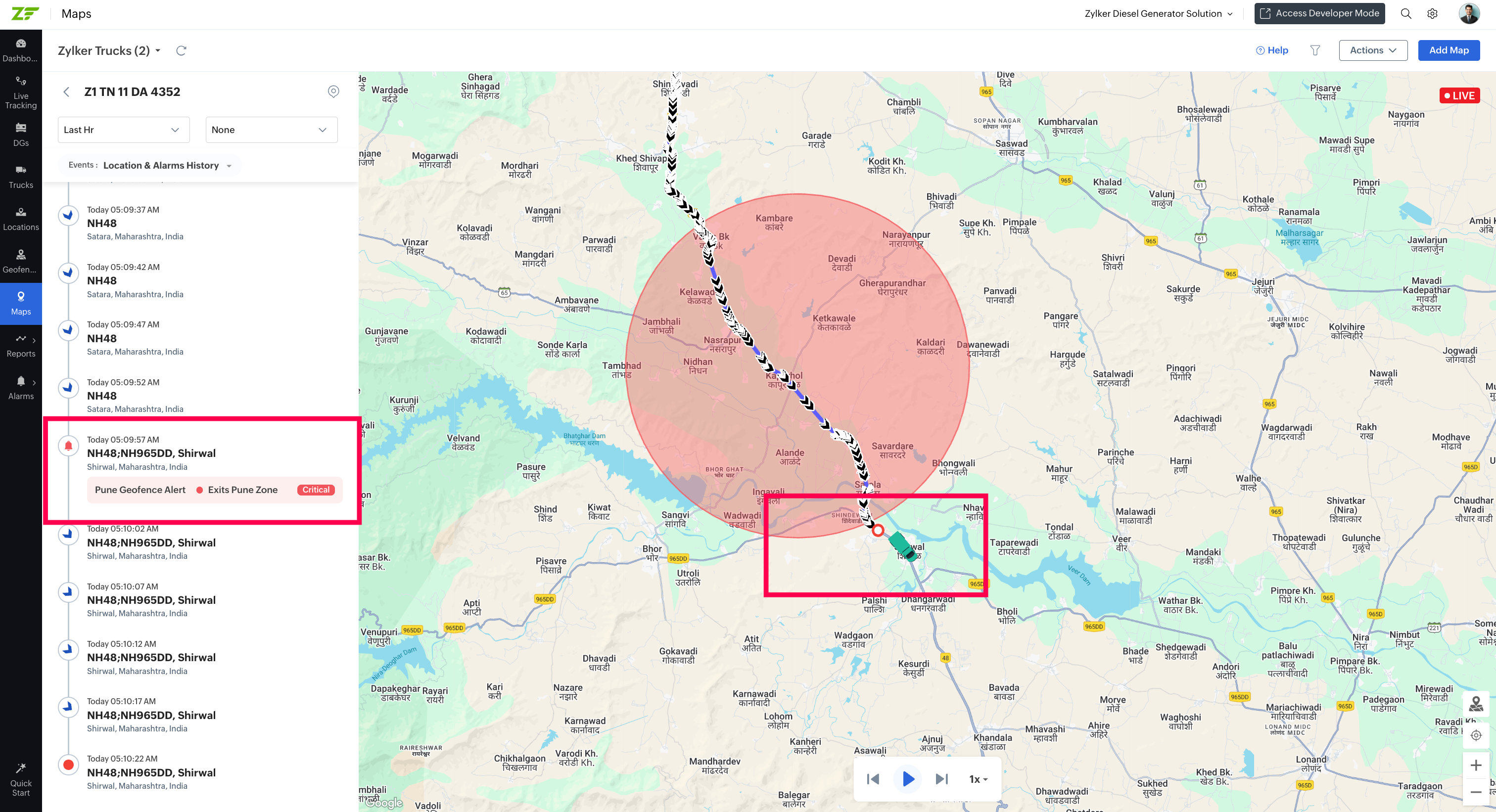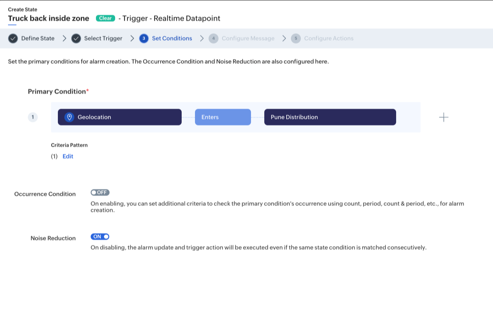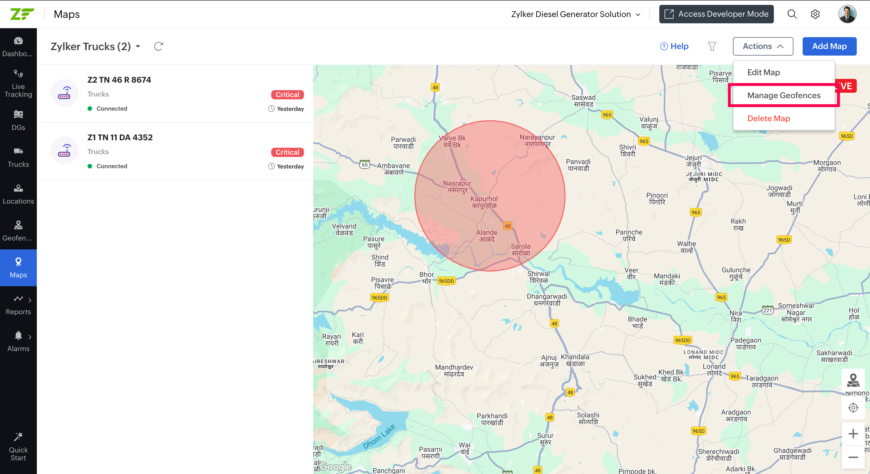 Note: If the geofence is out of focus, click on the Focusicon at the bottom right corner of the geofence to bring it to focus.
