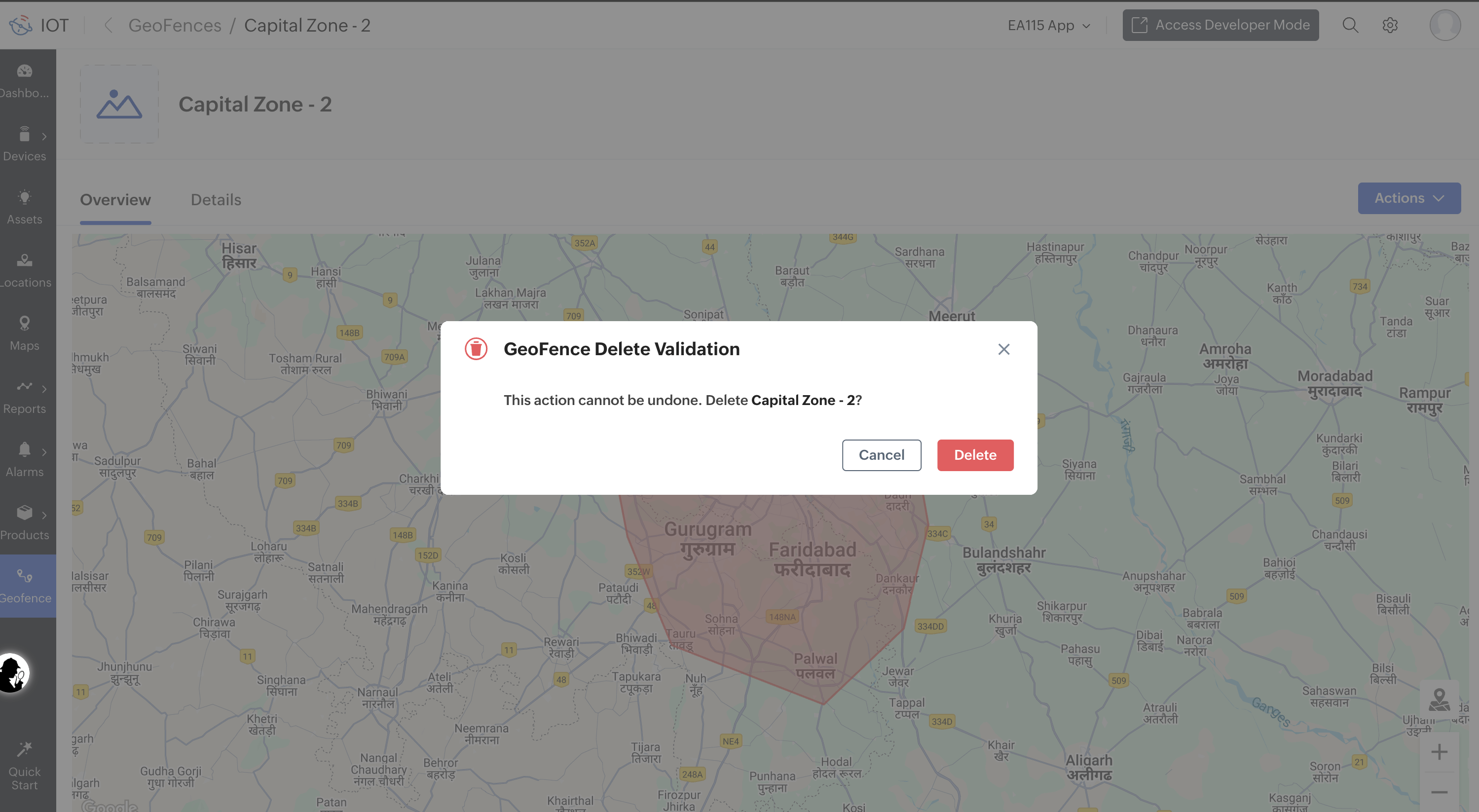 The geofence will be deleted and removed from the Geofences page.