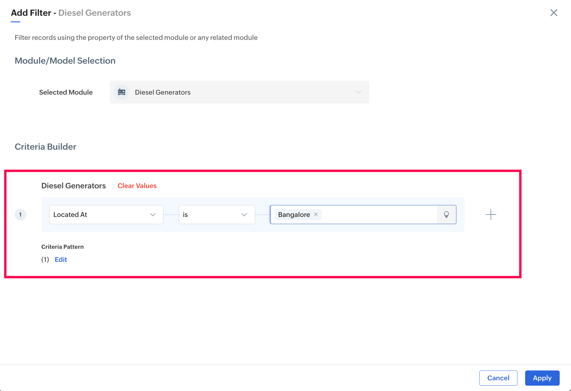 In Condition Builder, provide the condition based on which you want to filter and display device/asset/location on the map.