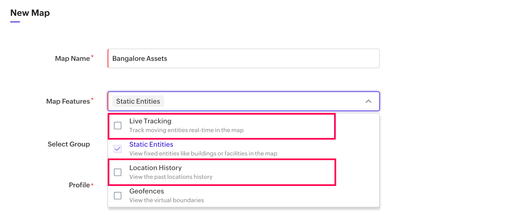 Note: Live tracking, when enabled, will be effective only if a particular managed entity (Device/Asset/Location) is selected as a module. And also the selected managed entity must have the GPS Location datapoint configured. In addition, t