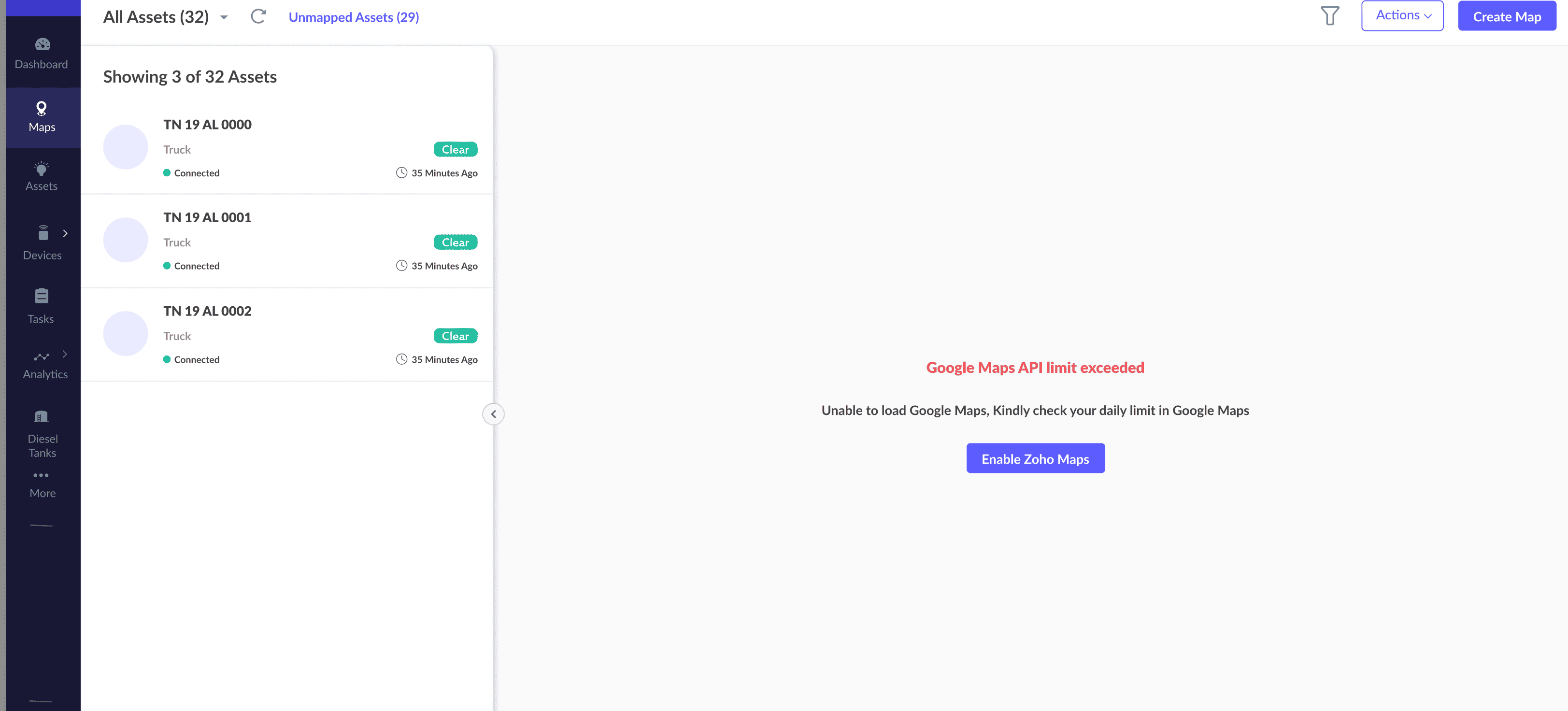 - Integrating Google Maps API with Zoho IOT - Required for using Google Maps API on maps. By default, Zoho Maps is used.