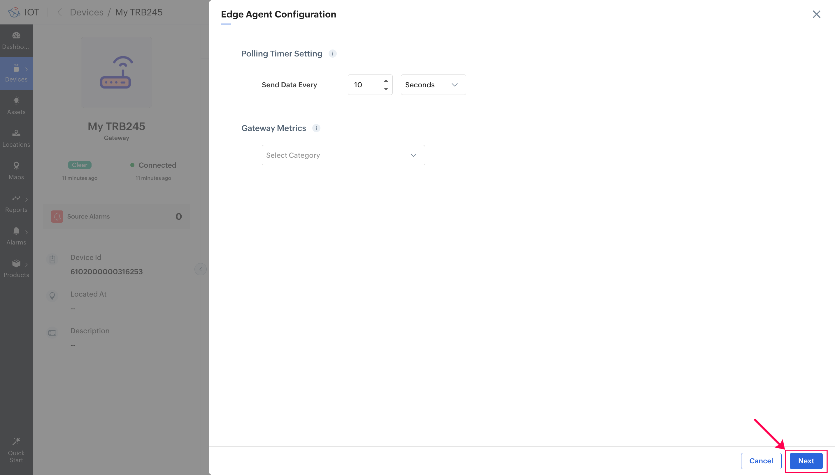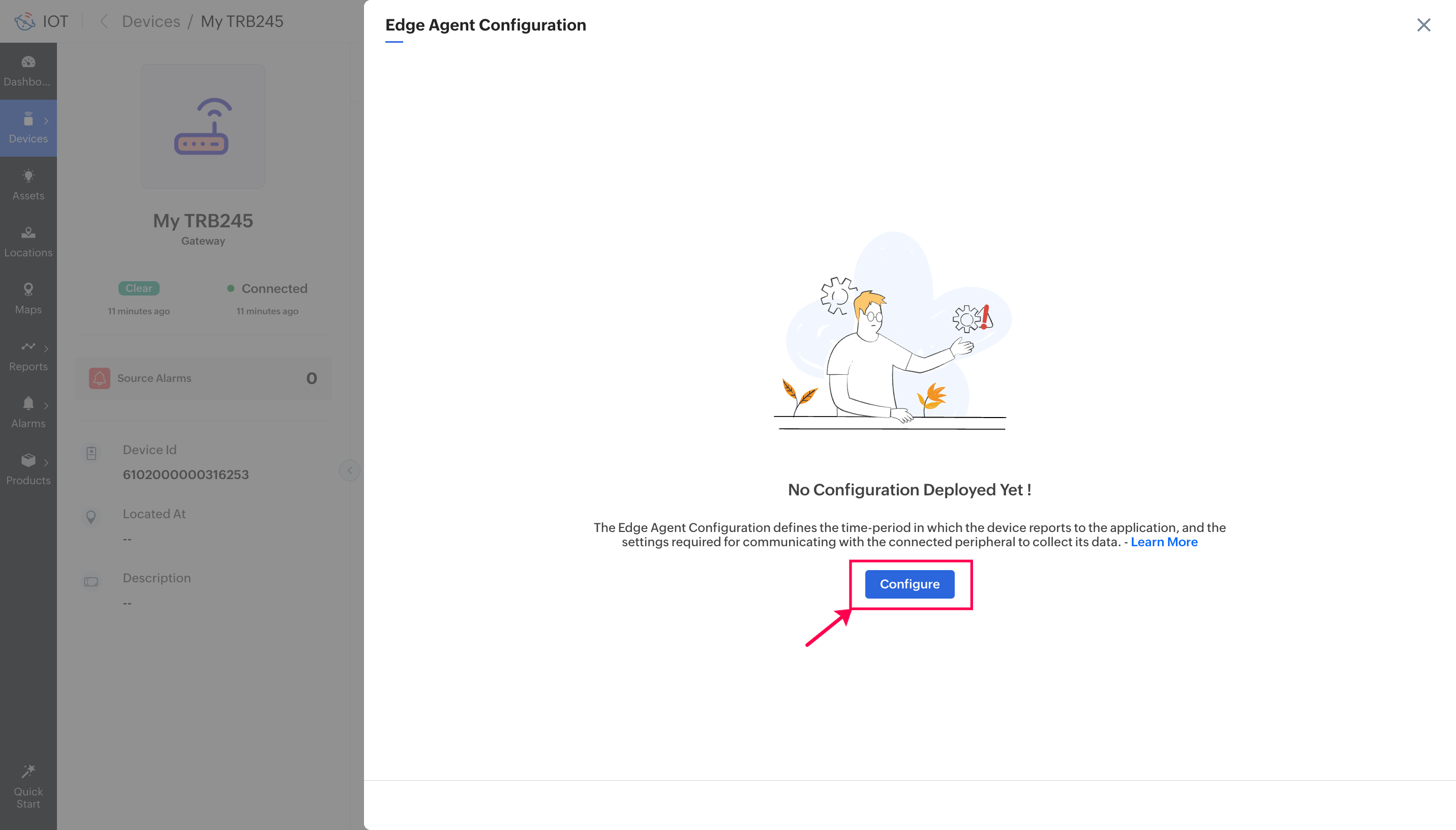 NotesNote: The Edge Agent Configuration option will be available only if you selected Edge Agent as the device application when adding the device.