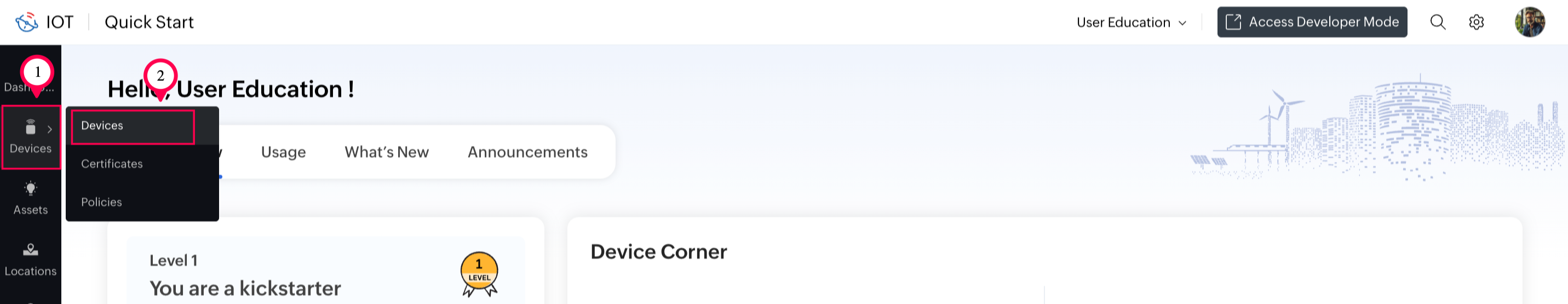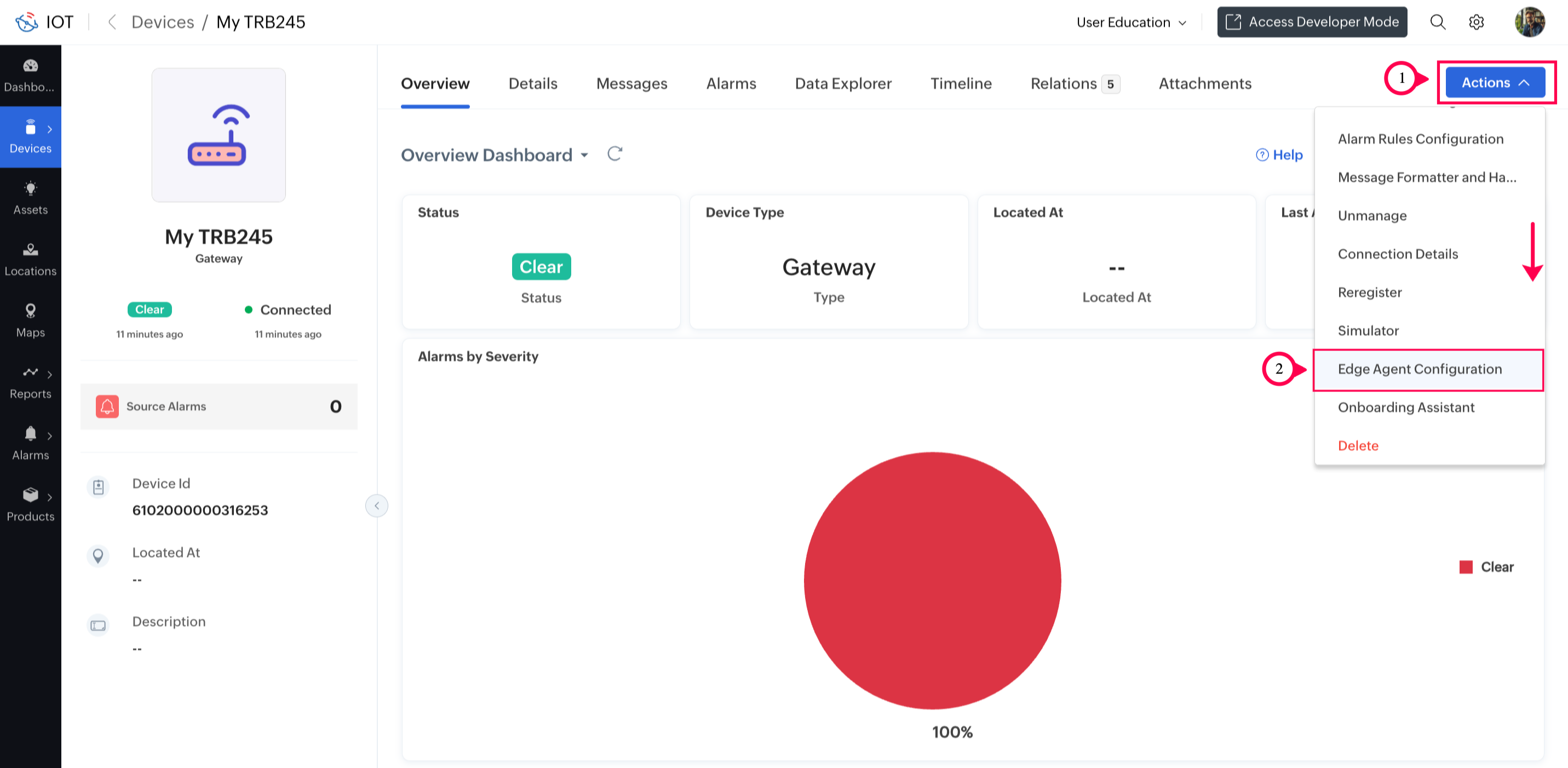 4. In the selected device's information page, go to Actions > Scroll Down > Edge Agent Configuration.