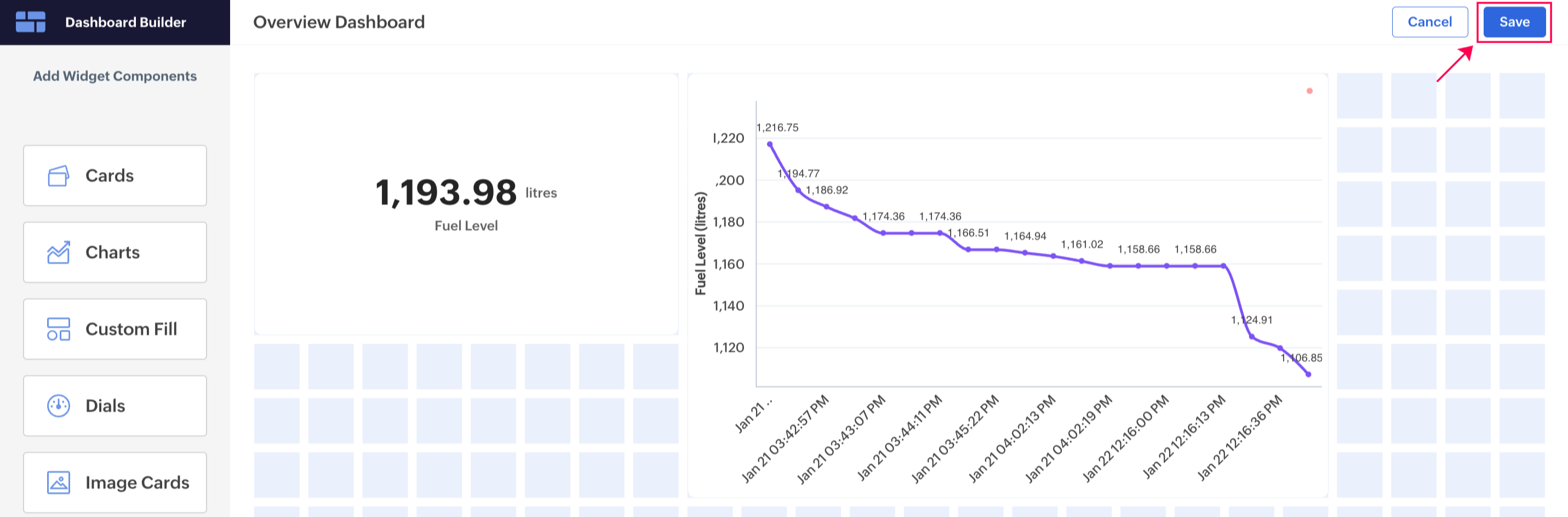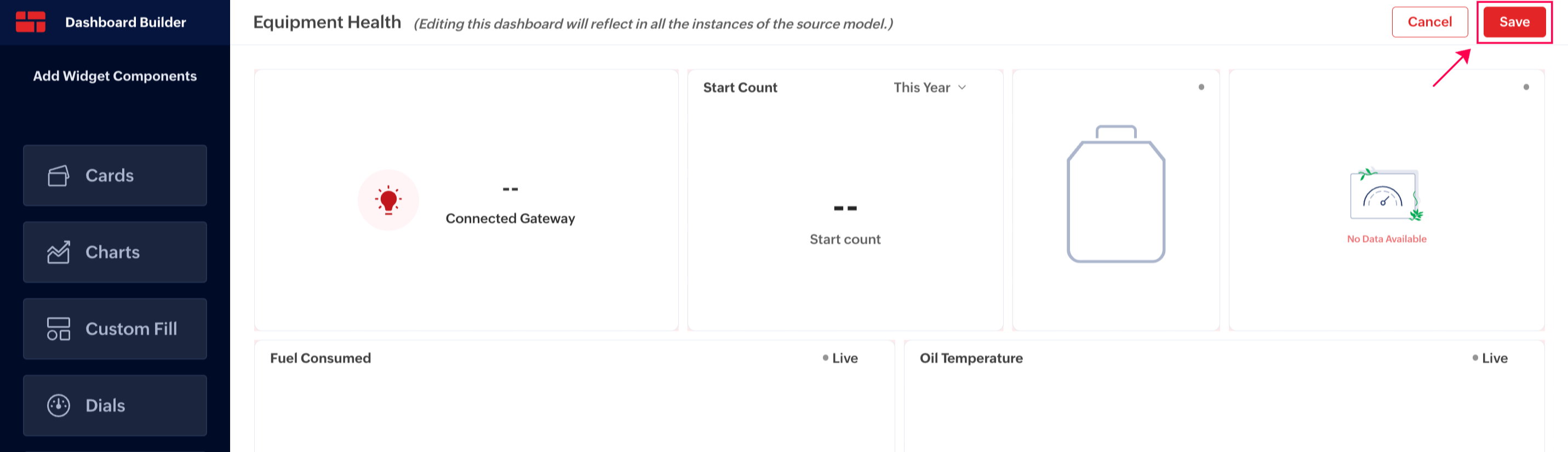 Click Save to save the changes made to the layout and exit the dashboard builder.