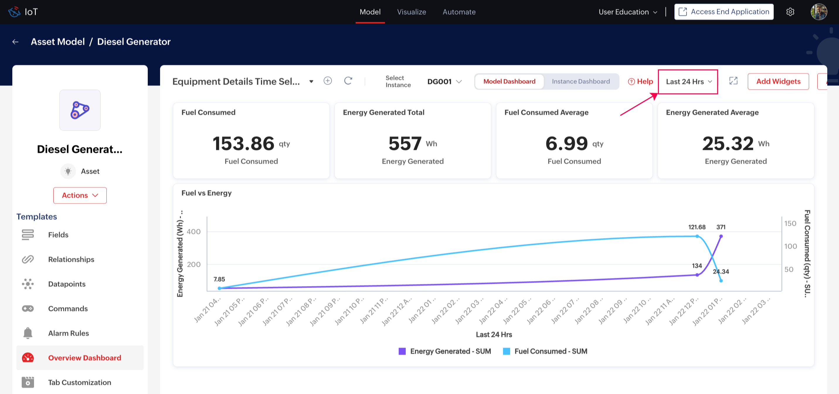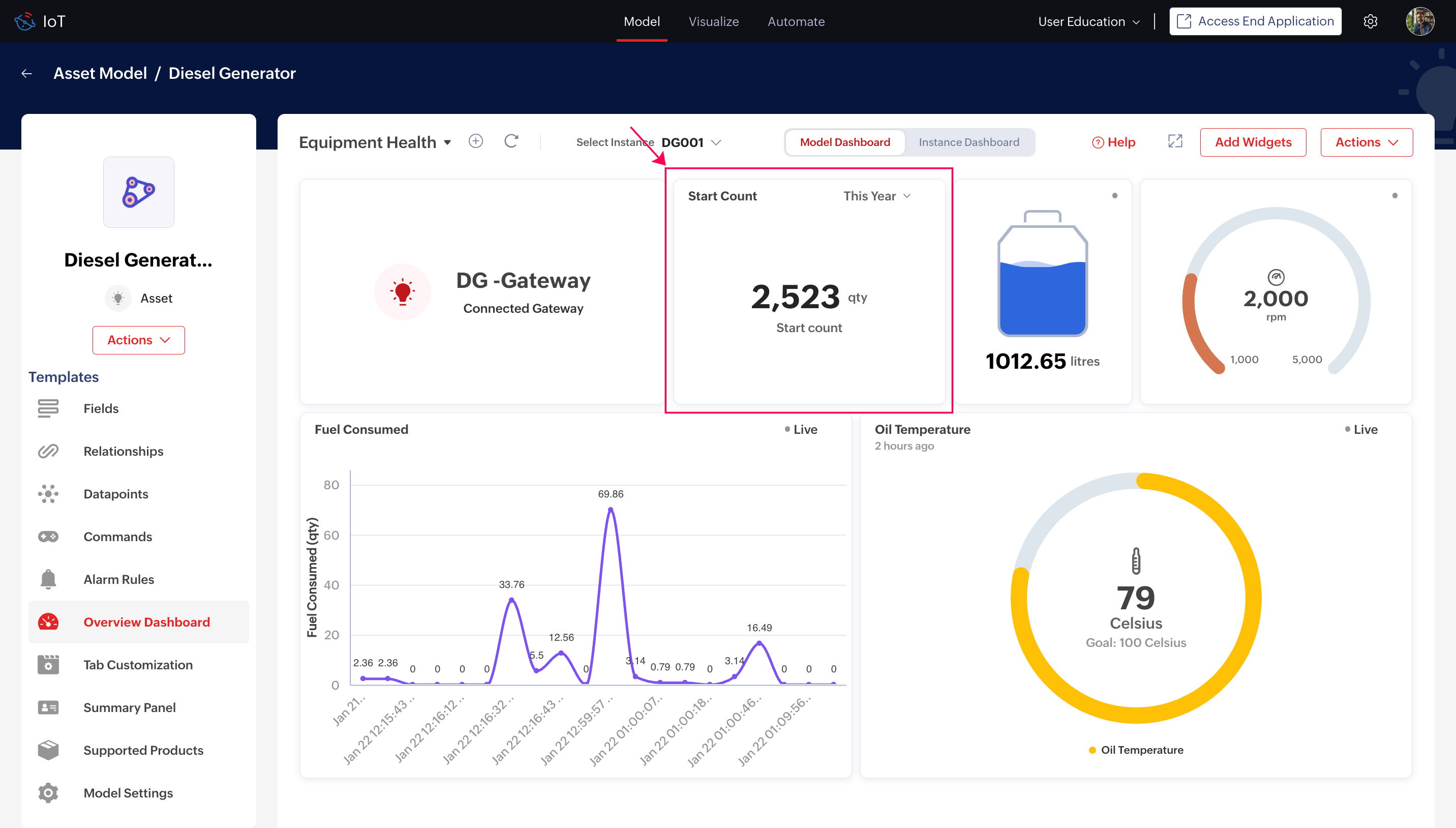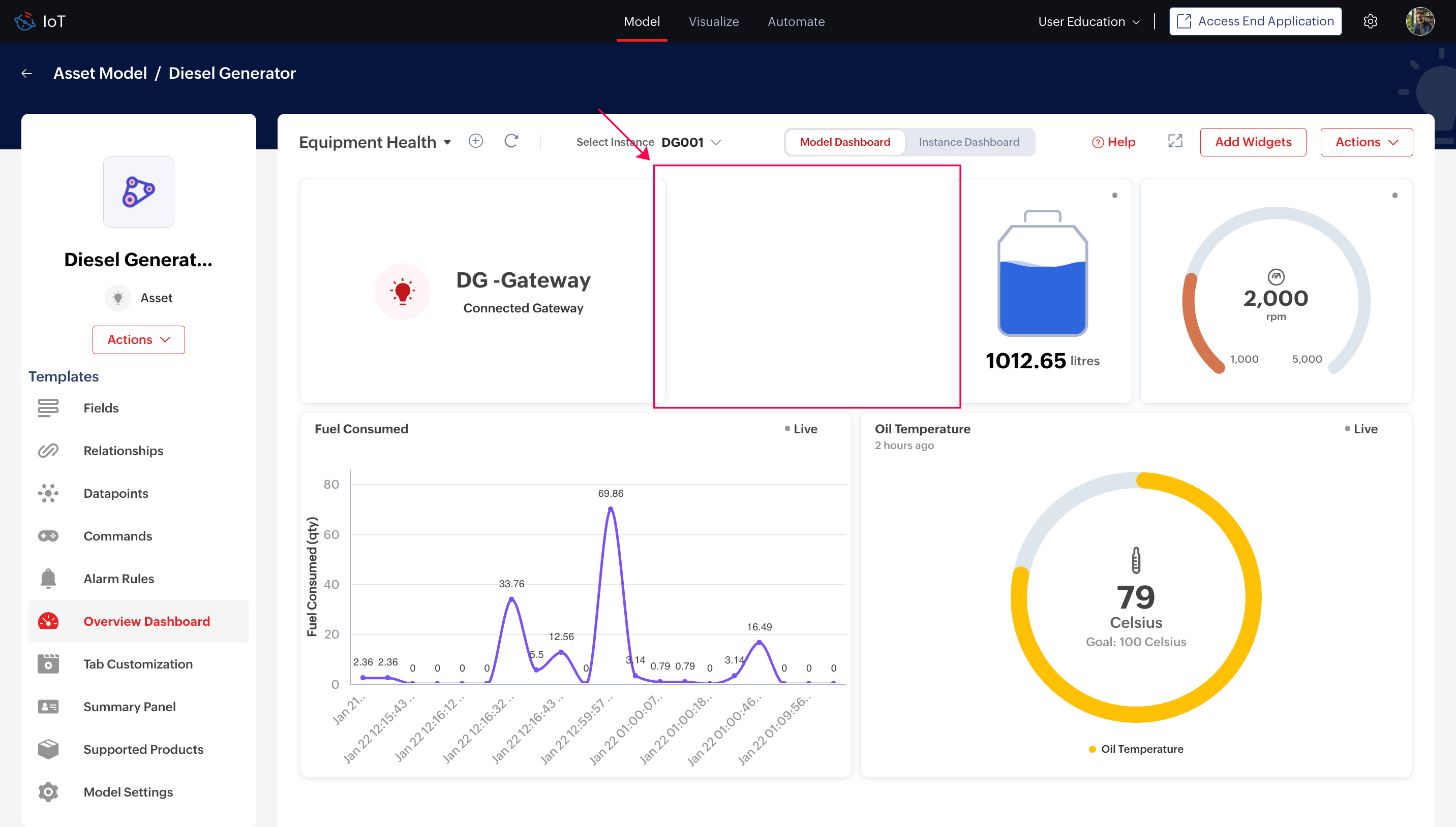 Click the model for which you want to access the overview dashboard template. For this example, Diesel Generator model is selected.
