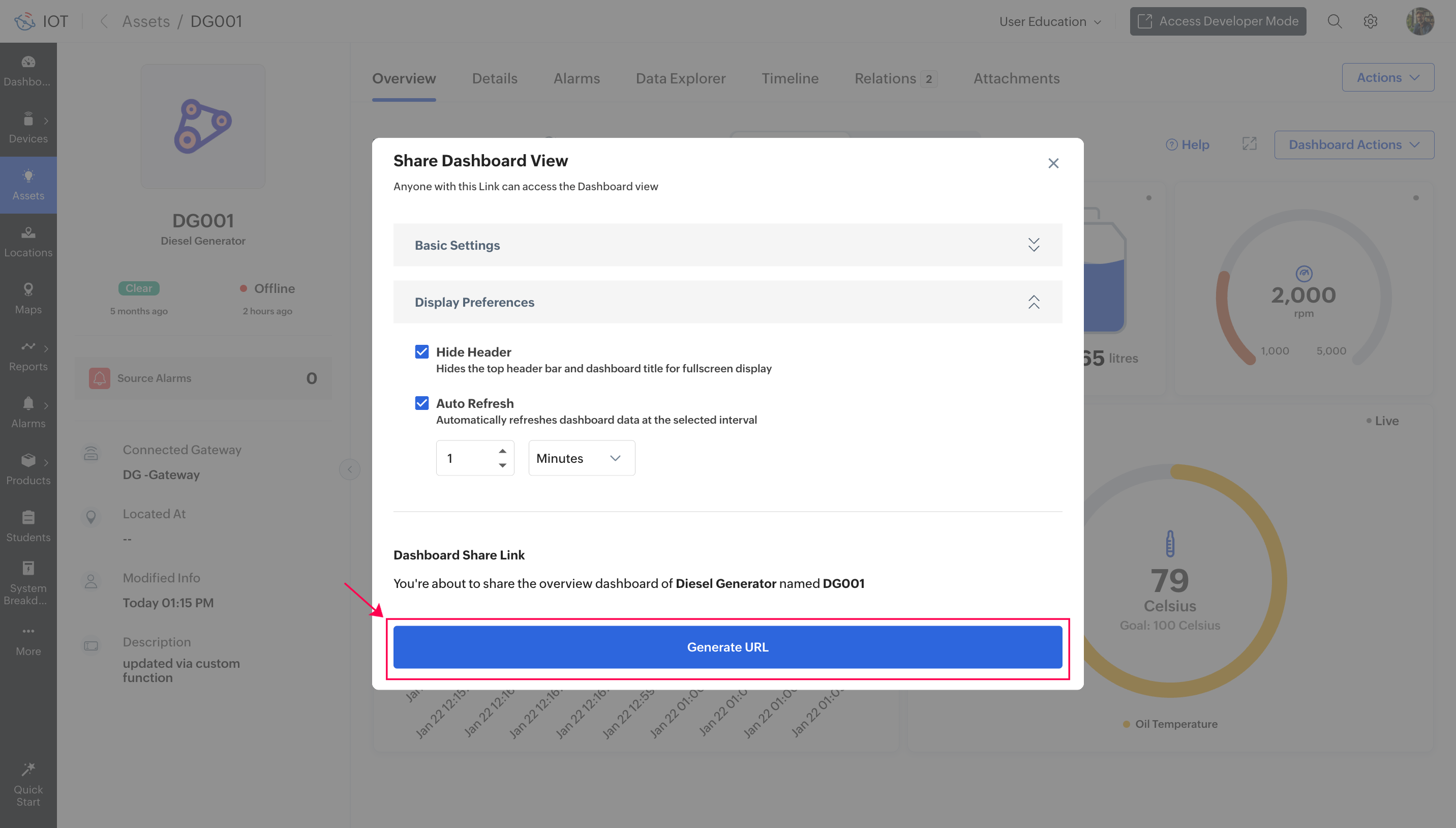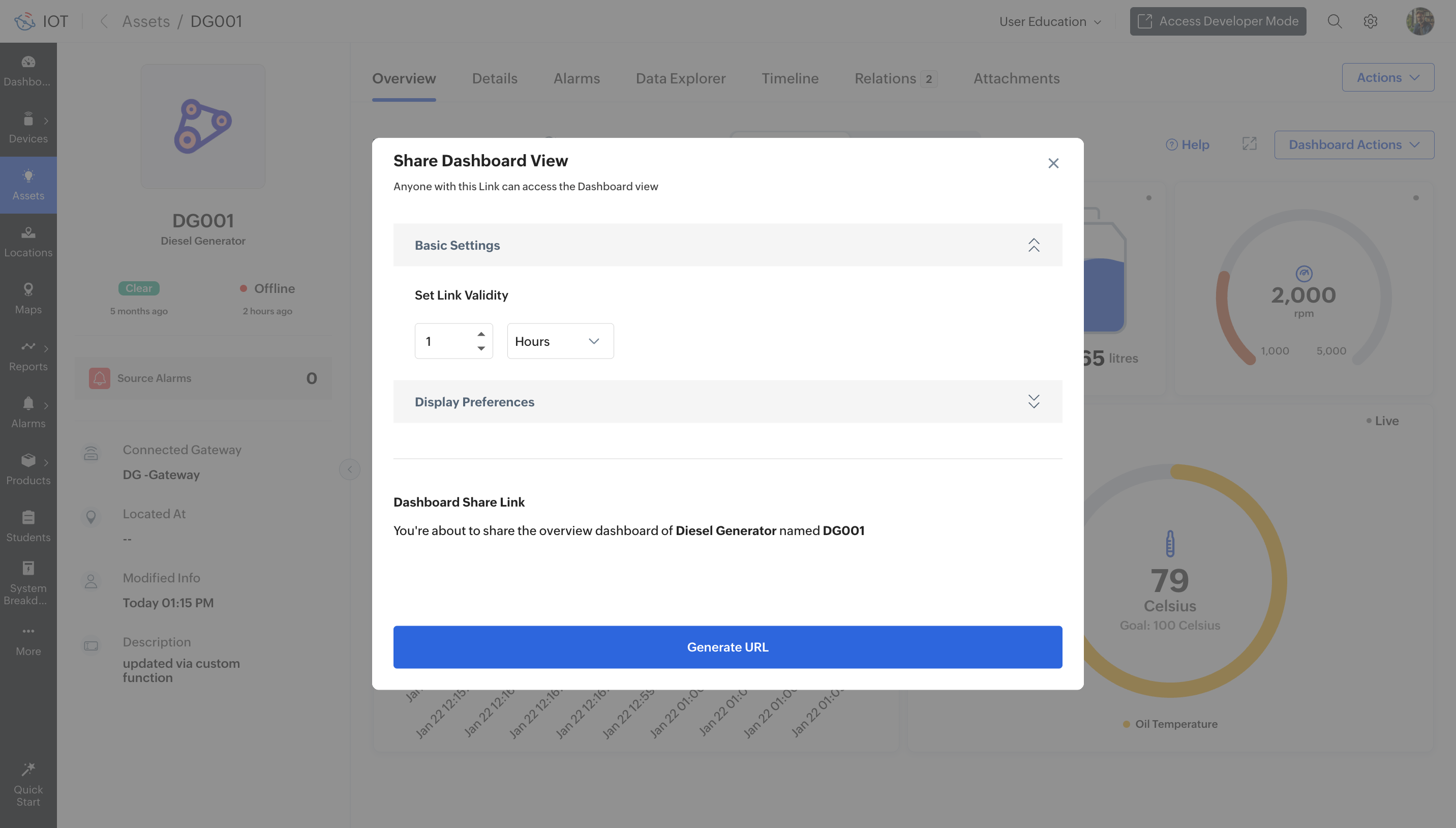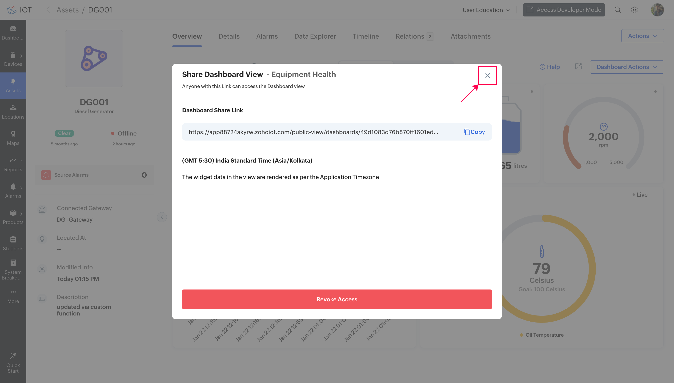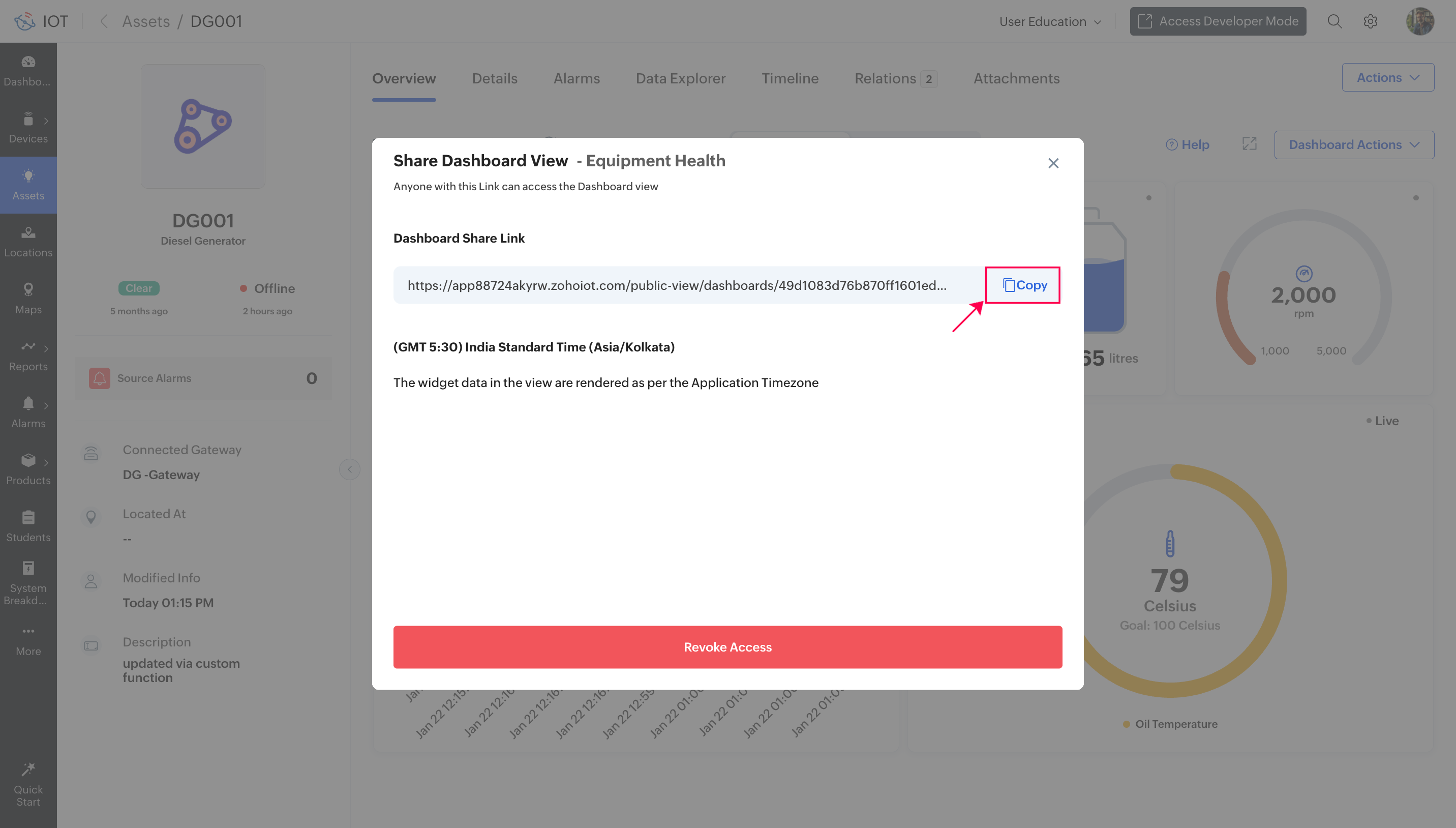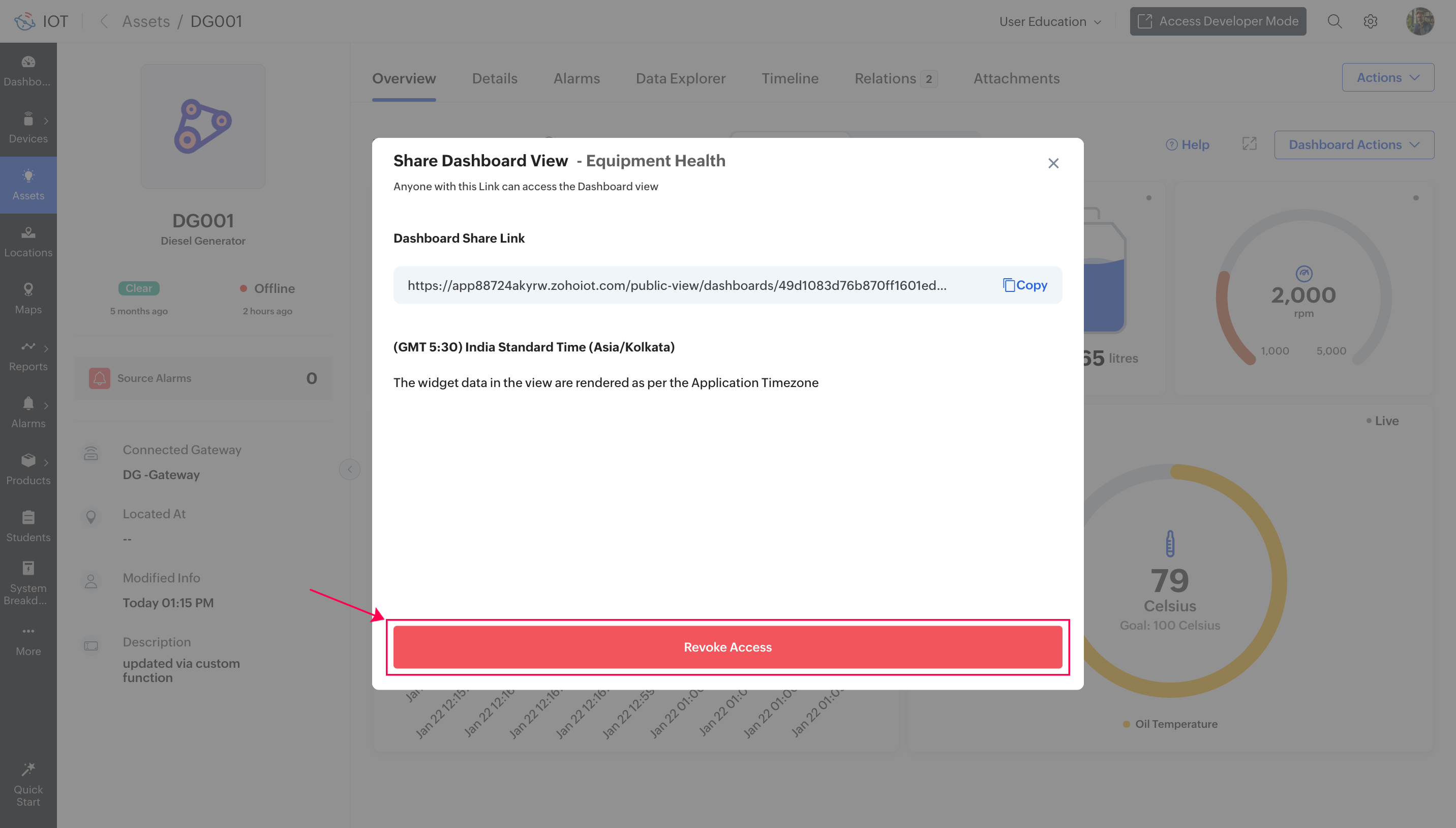 Access to the overview dashboard, through the url, remains active until the validity period expires or access is manually revoked. You can revoke access at any time by following the same steps and selecting Revoke Access.