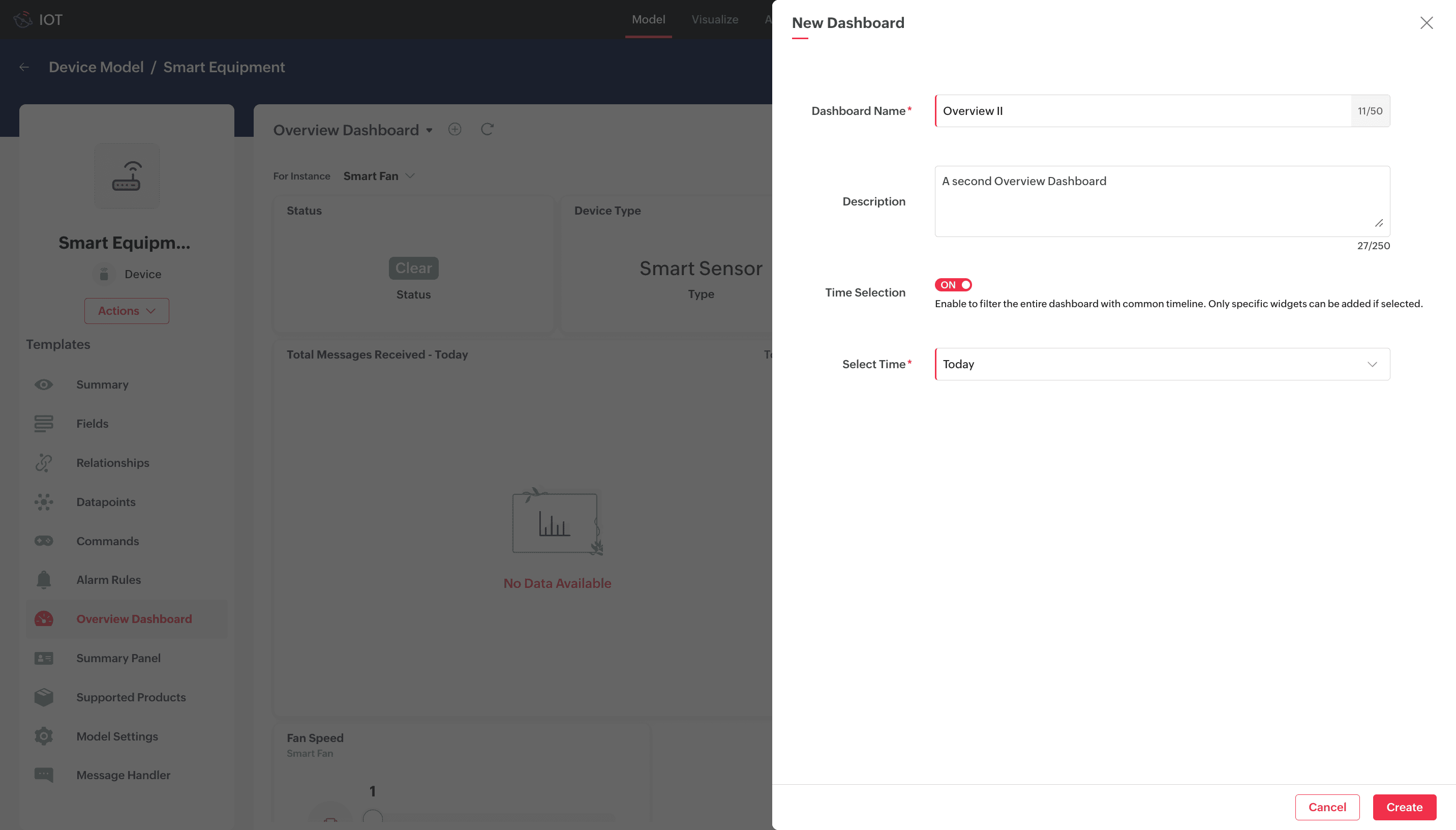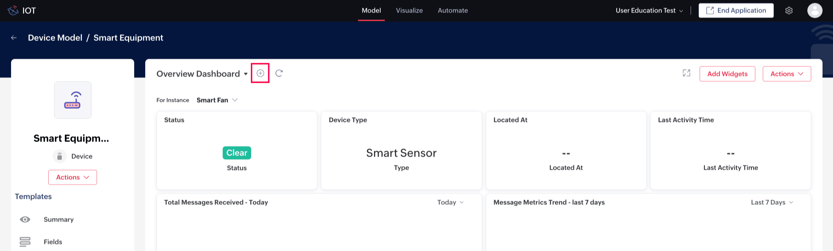 3. Click the name of the model you want to add the overview dashboard Template to. For this illustration, the device model Smart Equipment is considered.