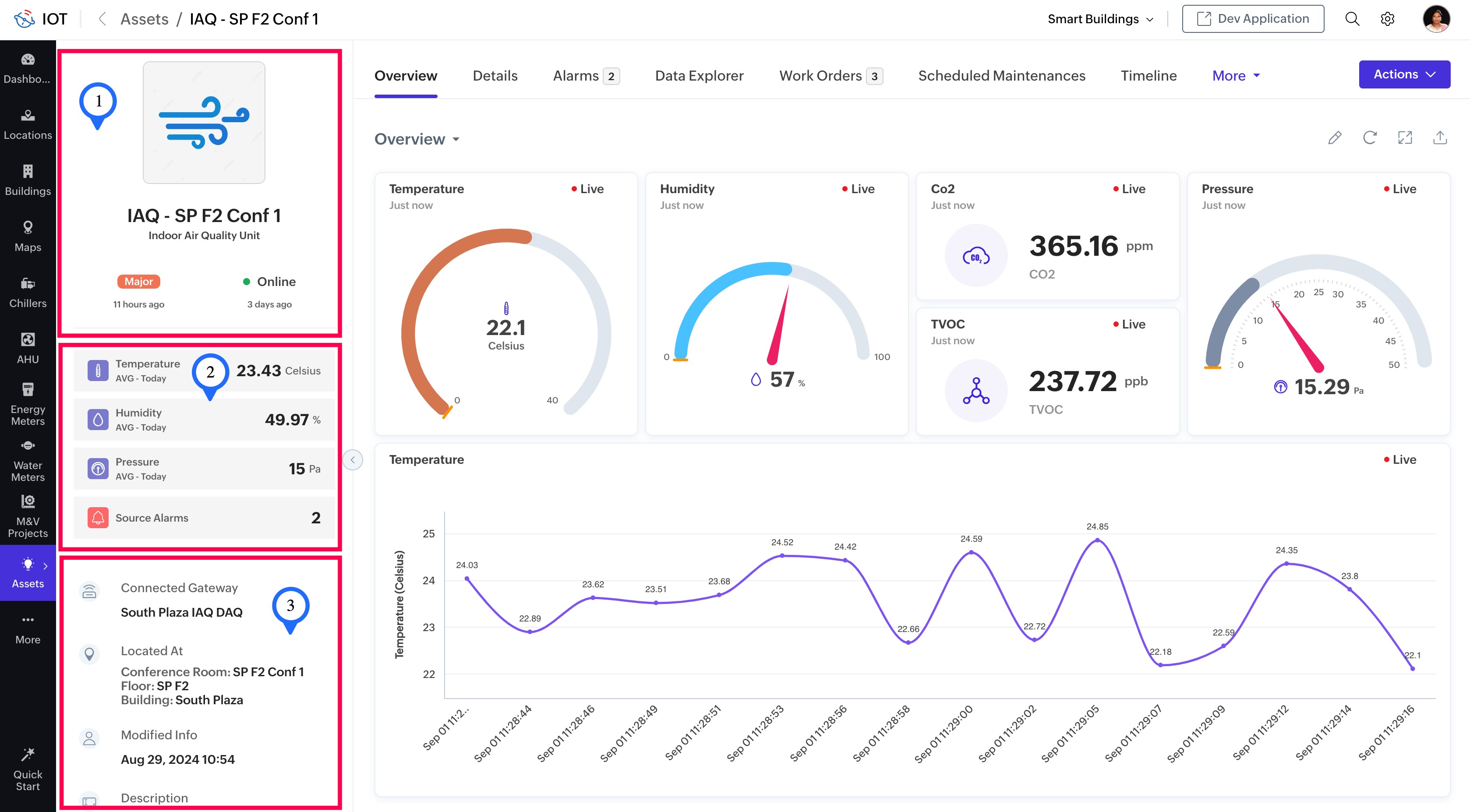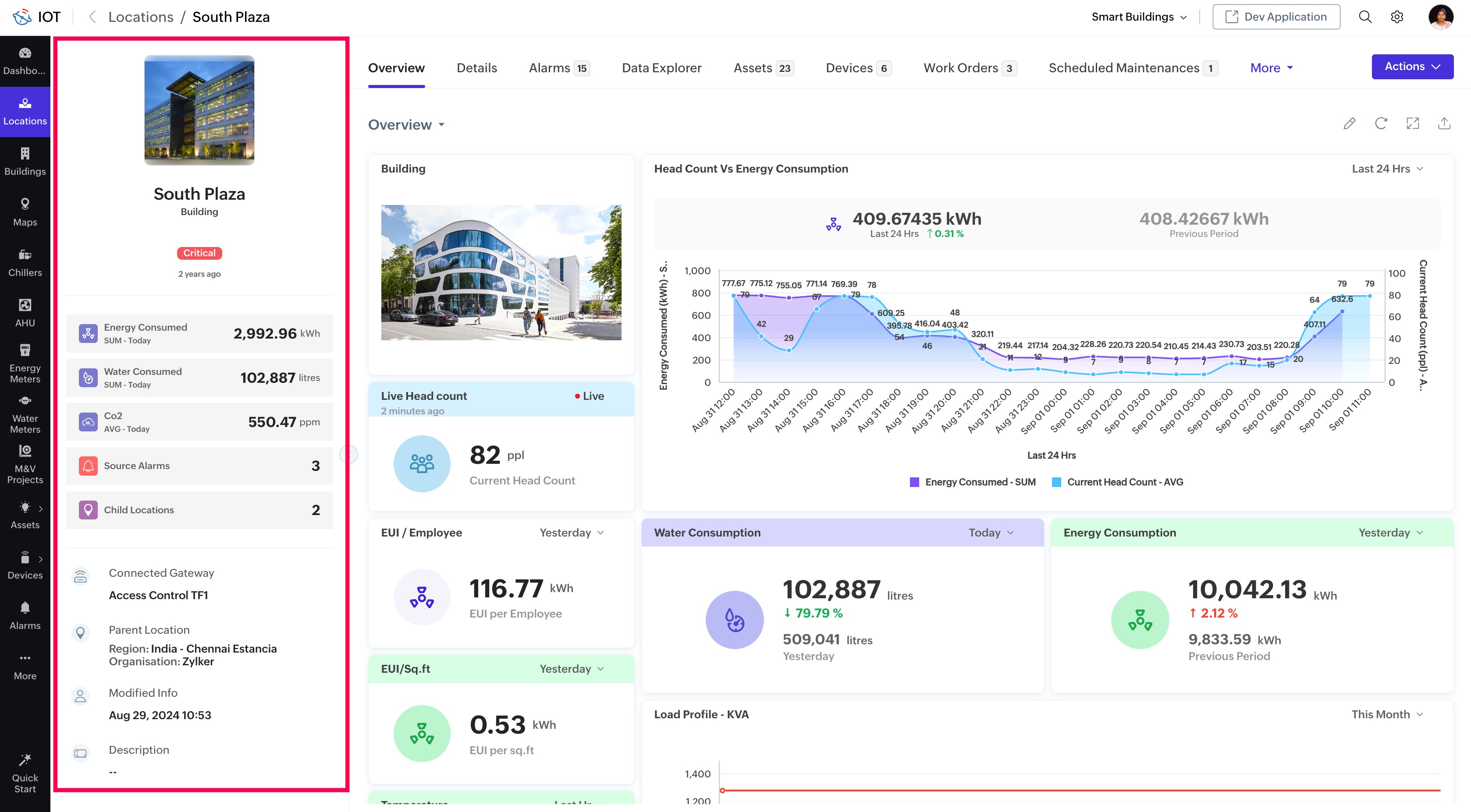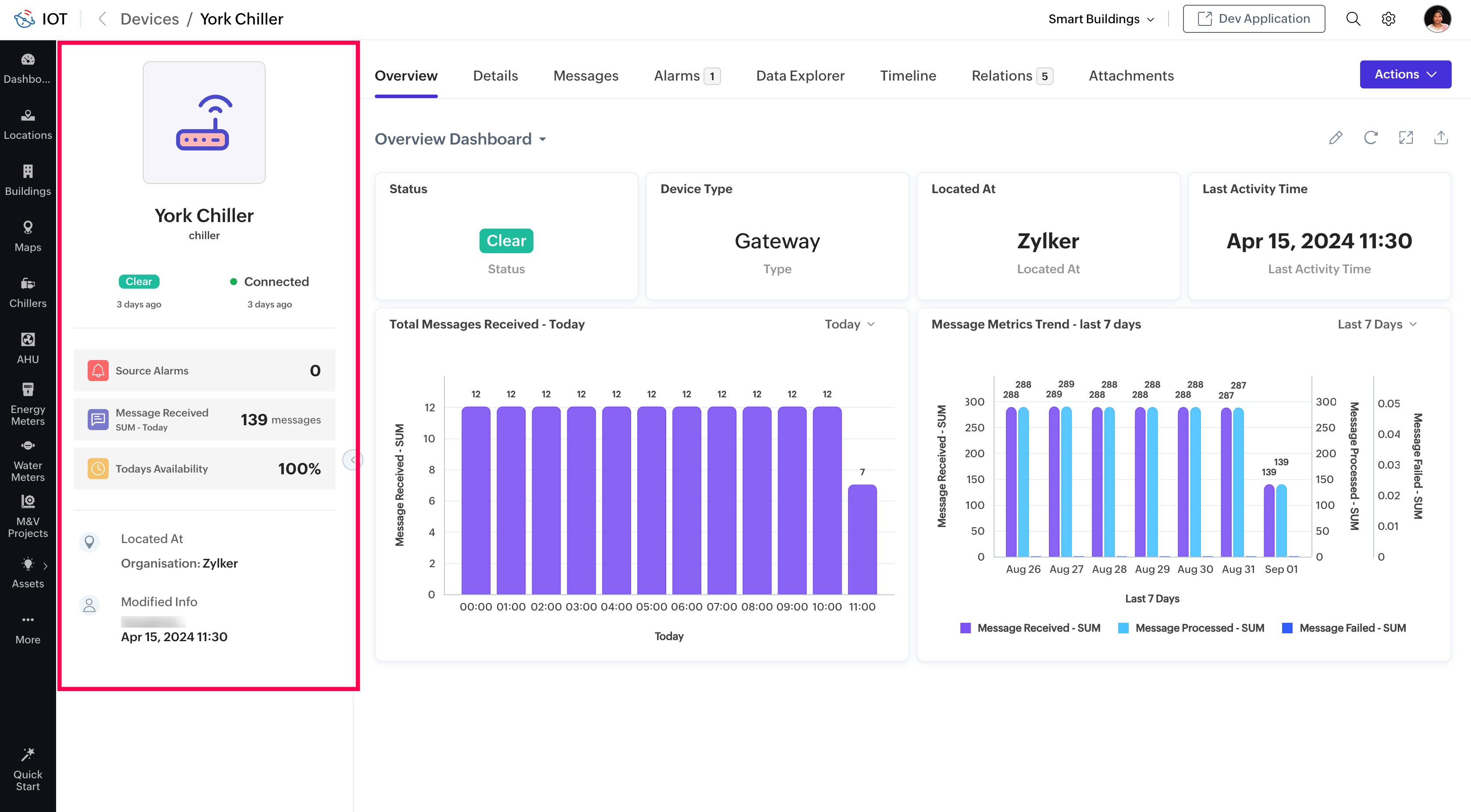 The summary panel of any managed entity (device/asset/location) can be viewed in the left pane of any managed entity in the End Application.