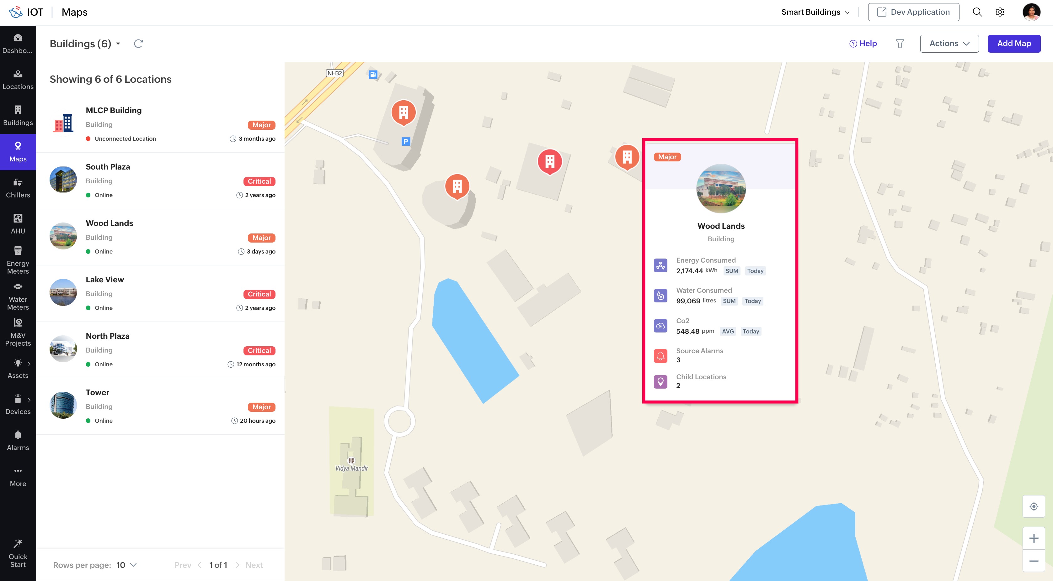 2. Click on any managed entity (device/asset/location) menu item in the left pane to invoke the respective list view.