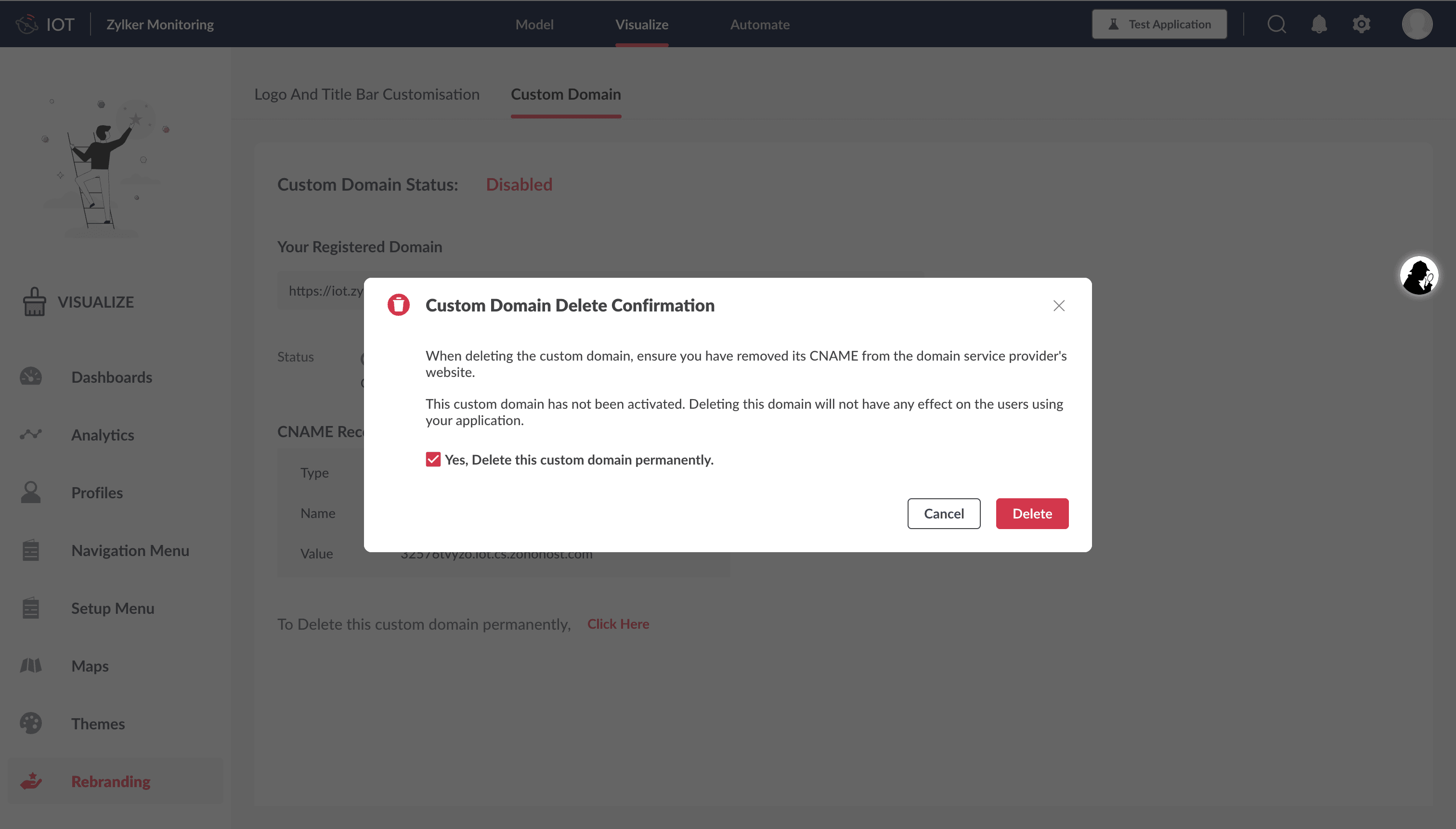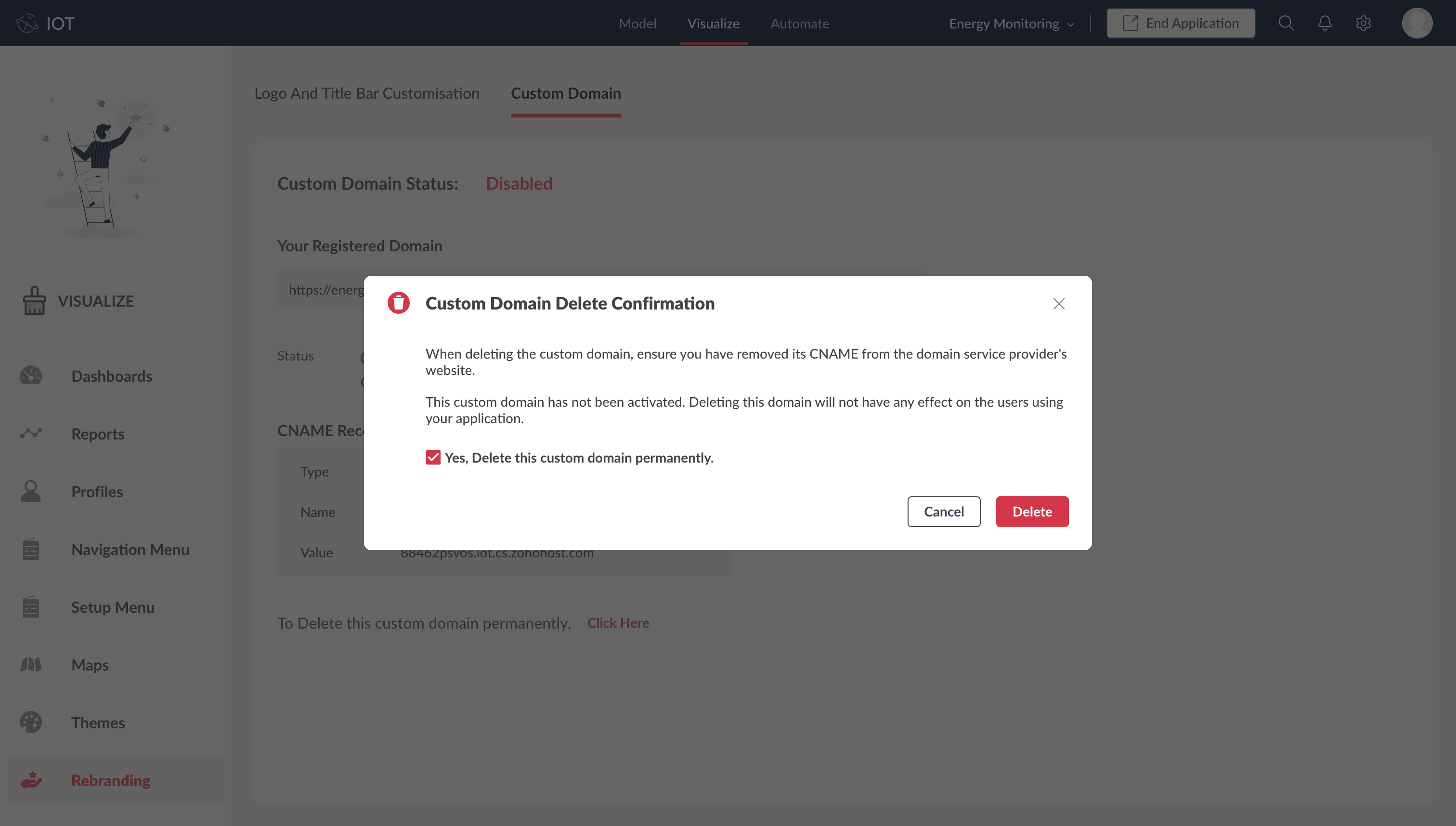 6. Click Delete in the confirmation screen.