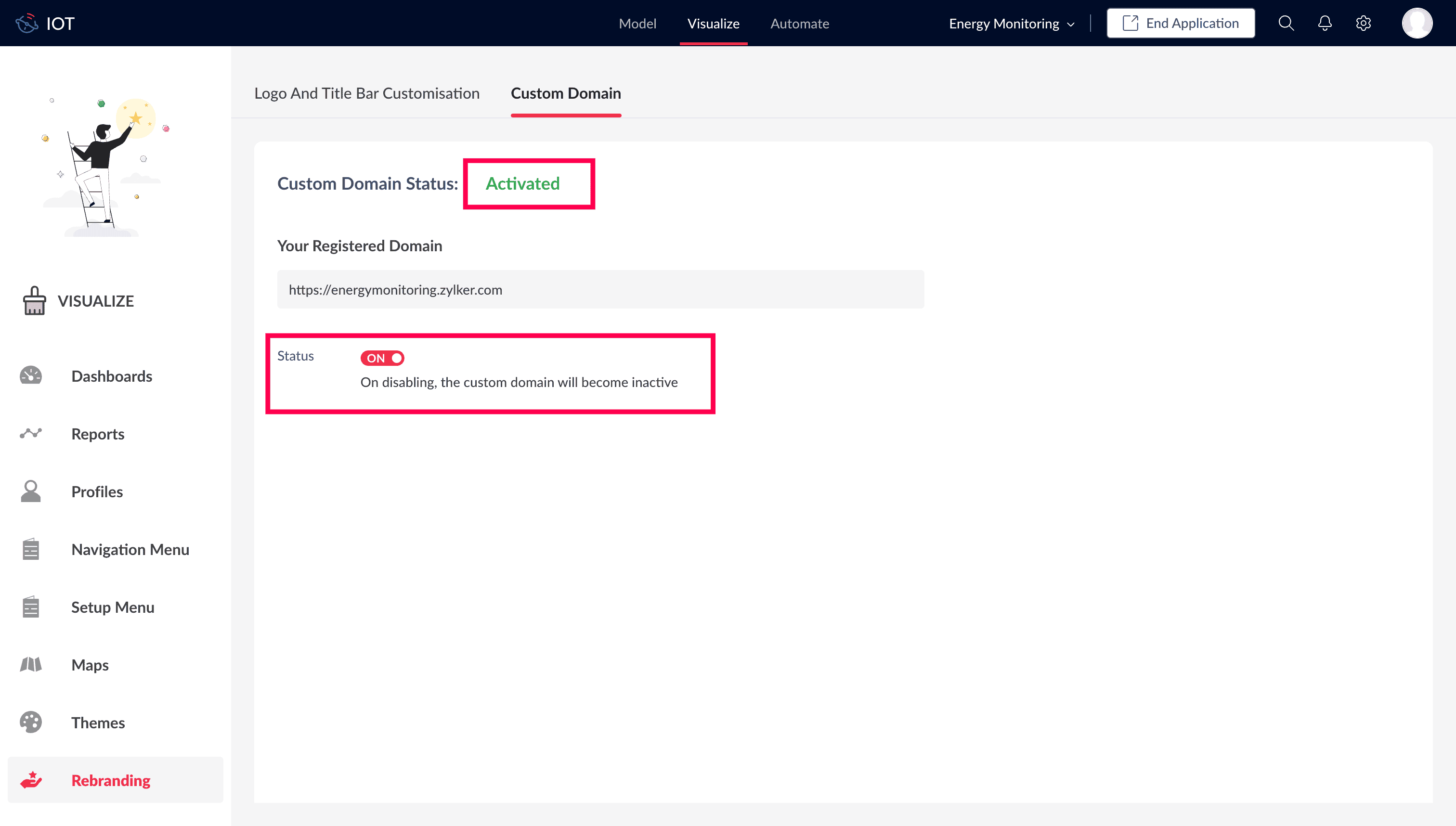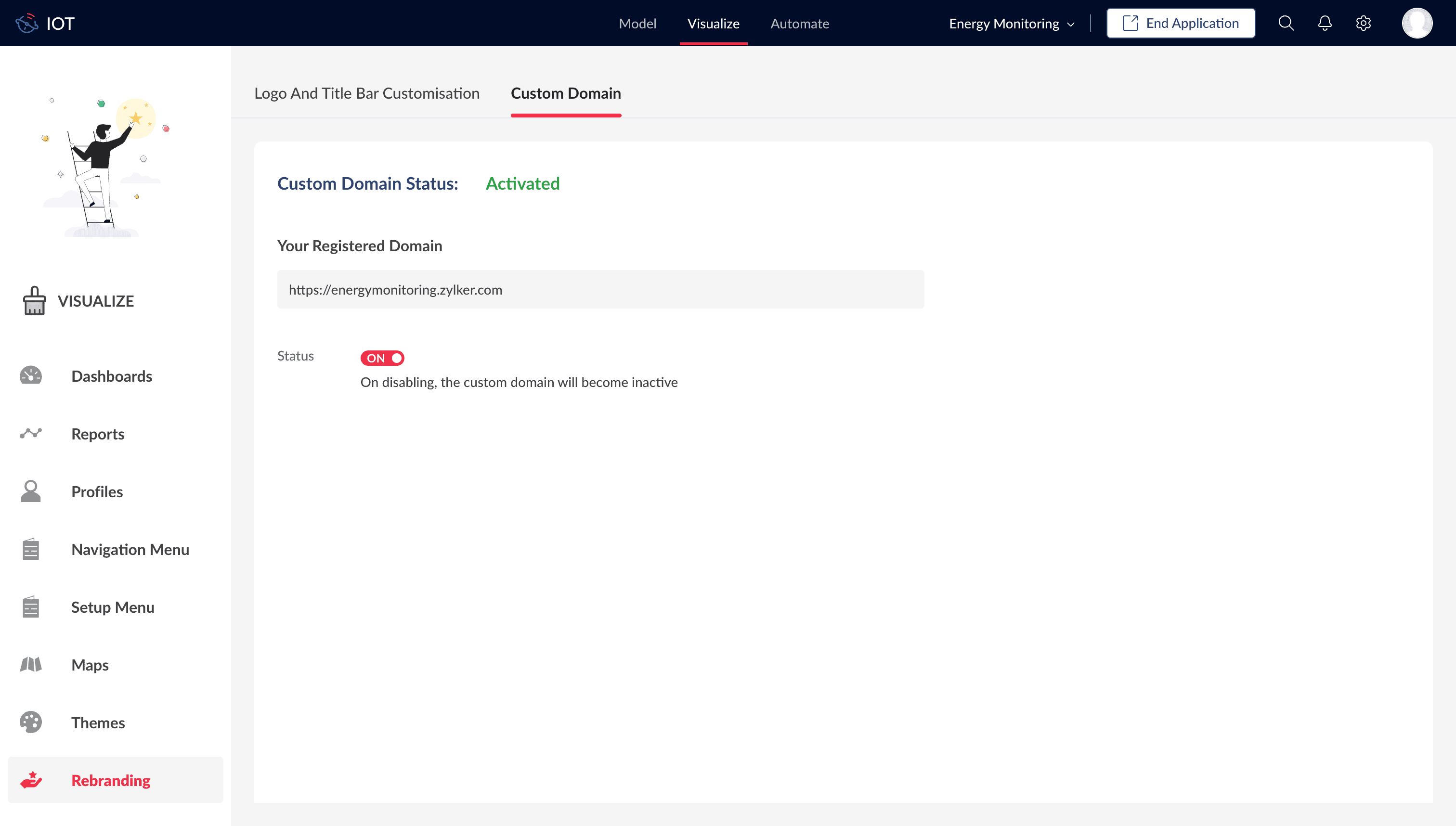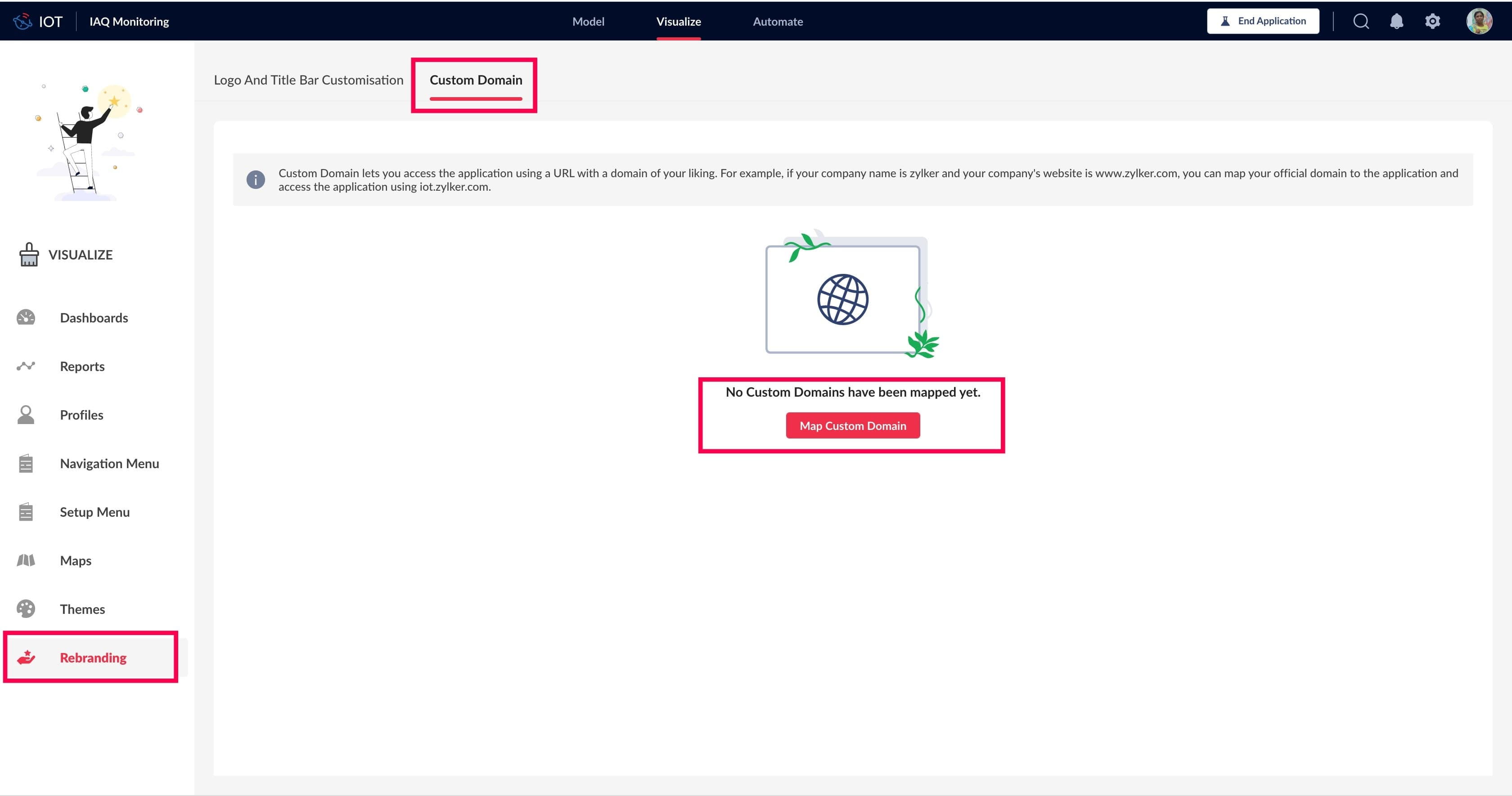 - In the Visualize tab, click Rebranding.