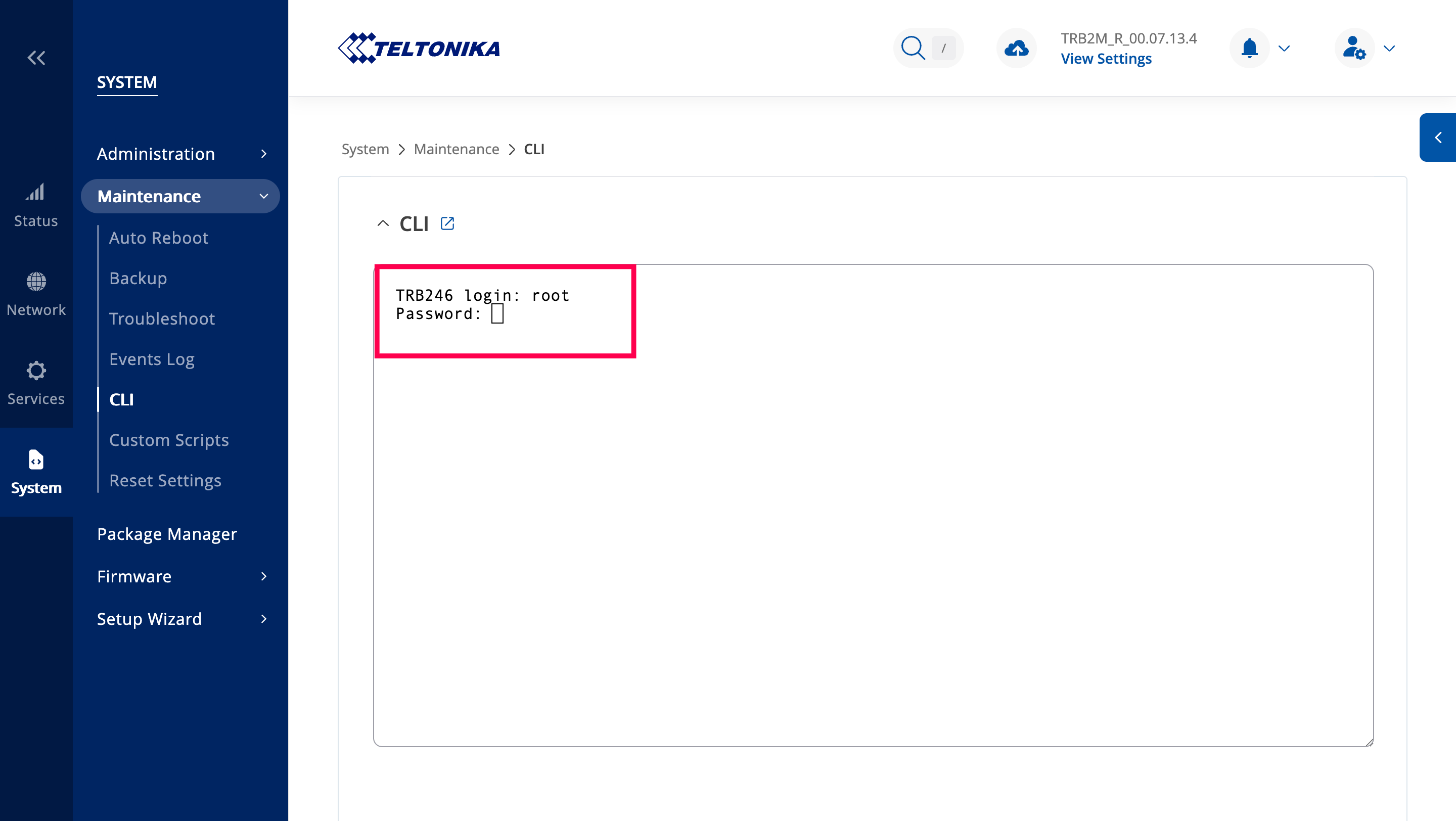 2. Enter the TRB246 device password when prompted and click return/Enter.