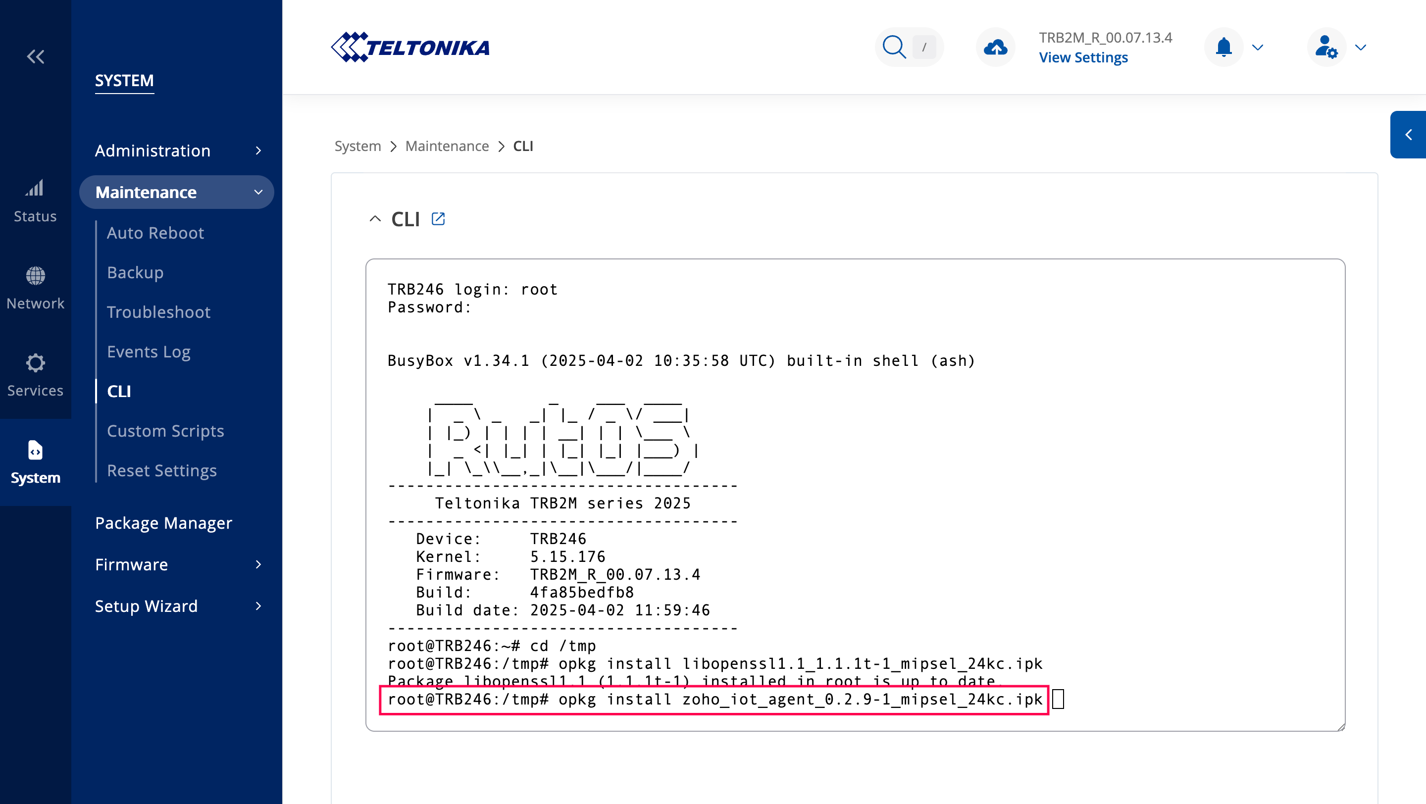 opkg install zoho_iot_agent_0.2.9-1_mipsel_24kc.ipk