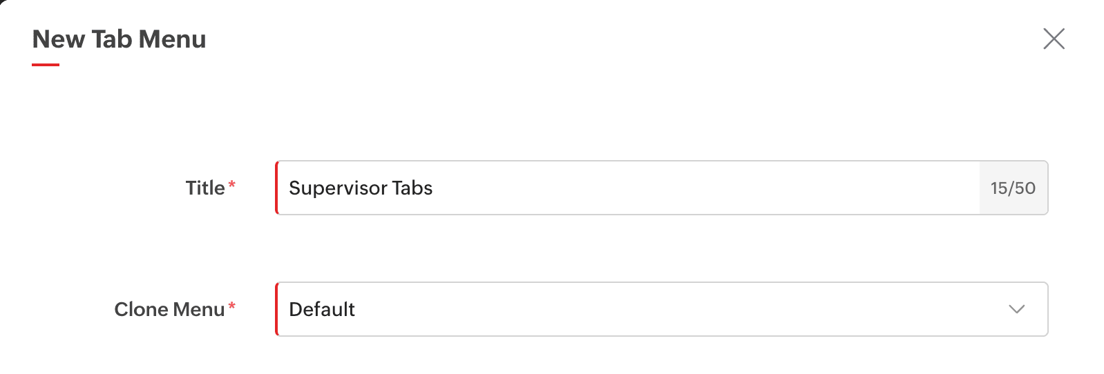 - Select the Clone menu for the available menus list. The new menu will be created with the tabs present in the Clone menu.