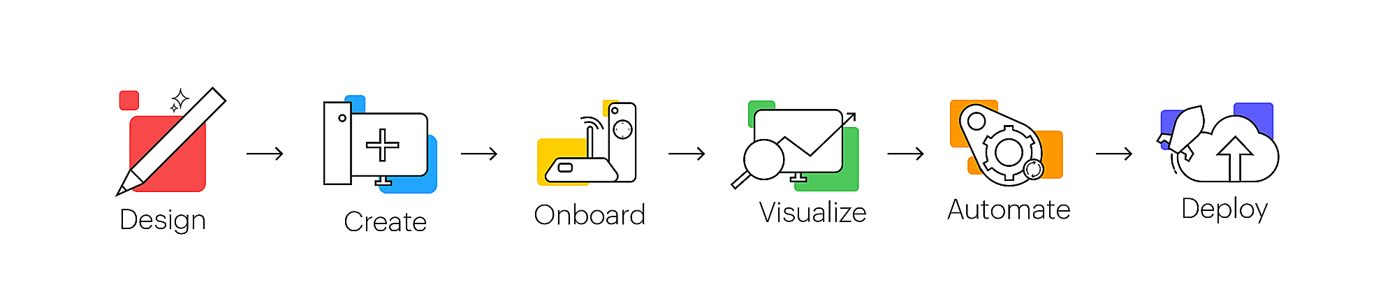 Any solution built using the Zoho IOT platform generally follows six phases to achieve the result, with one or more steps in each phase. The phases range from Designing to Deployment as given below.