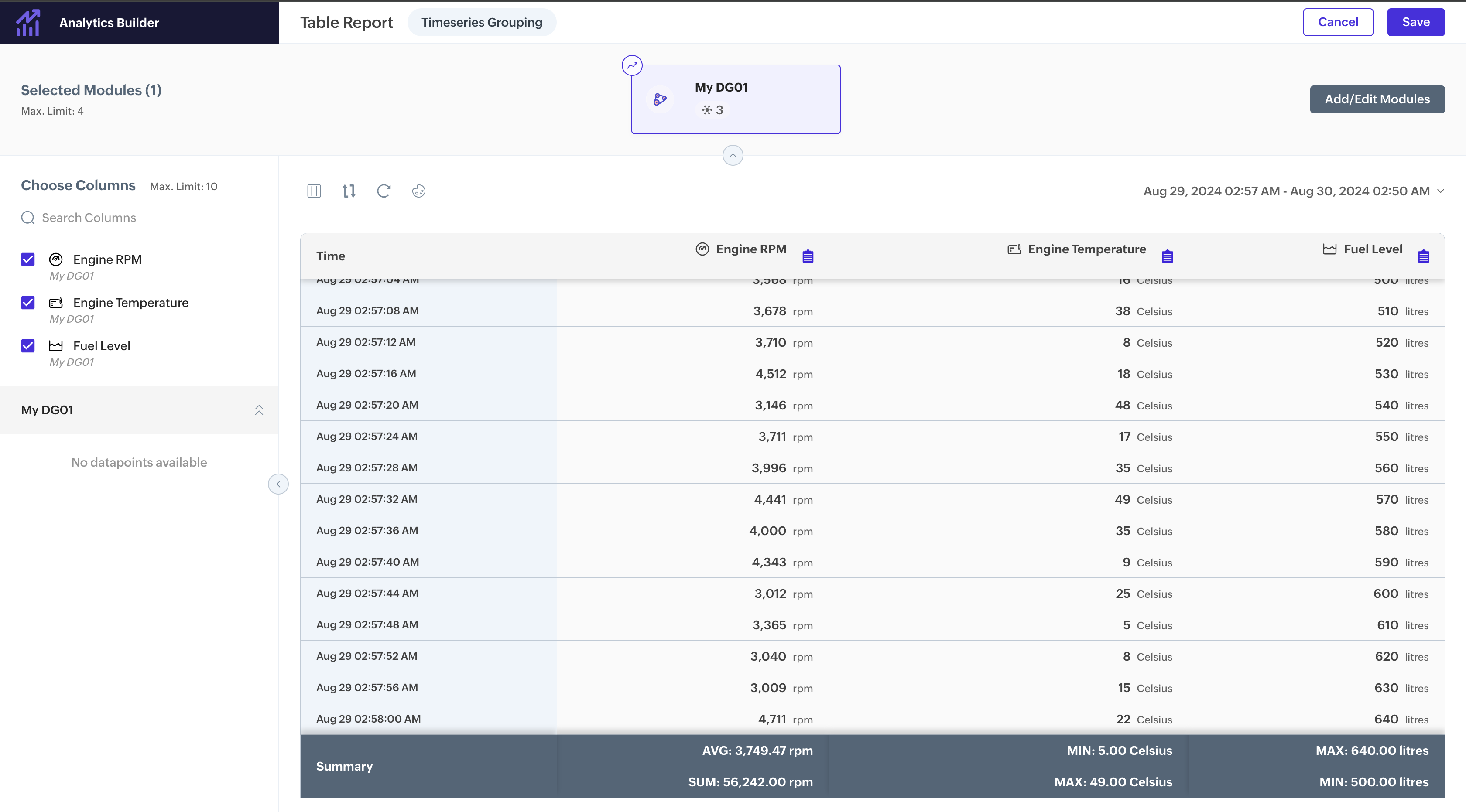 datapoint values, you can monitor engine temperature, power generated, and fuel level directly from a