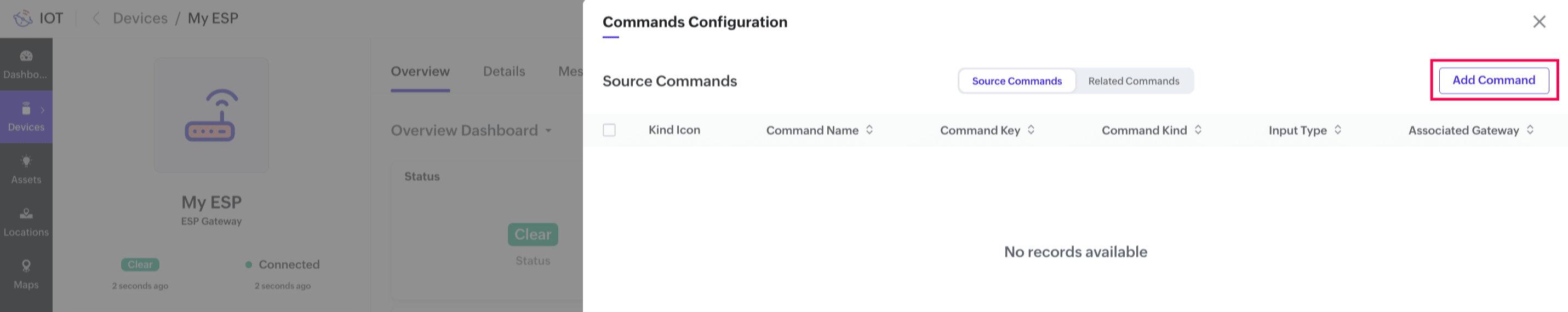 You can always access the command configuration to execute the command by clicking Actions > Command Configuration in the device's information page.