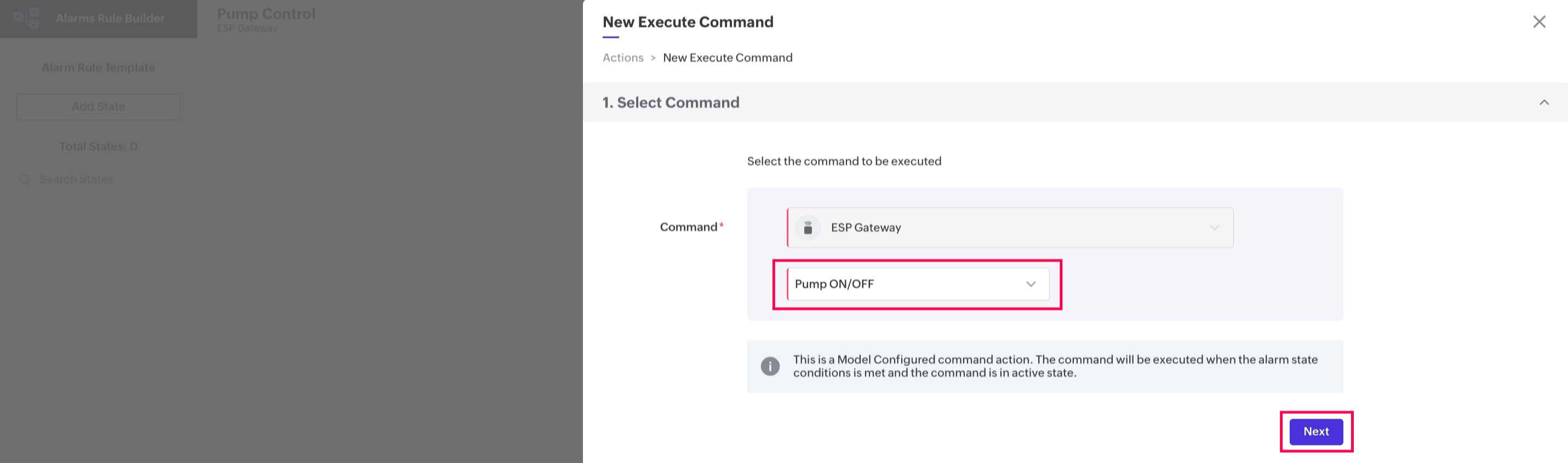 1. Select the box near the Pump ON/OFF command and click the Execute Command that appears.