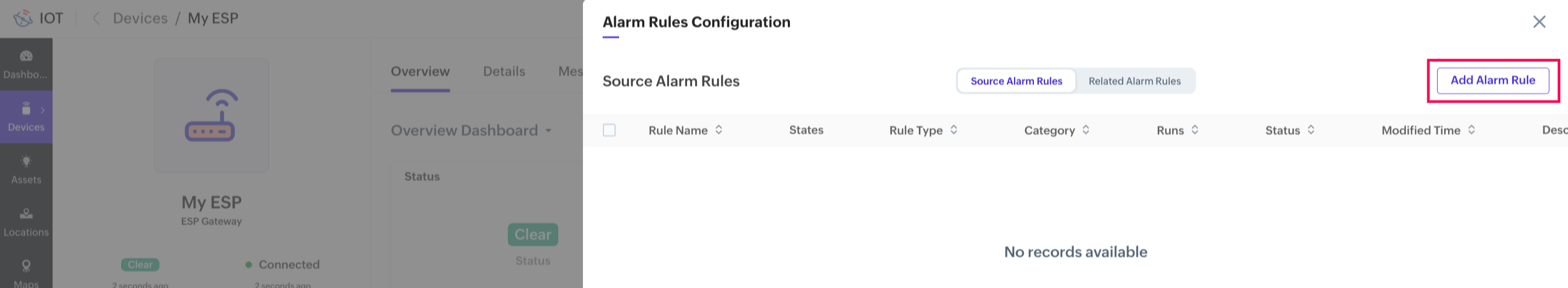 1. Click Actions > Alarm Rule Configurations in the device's information page.